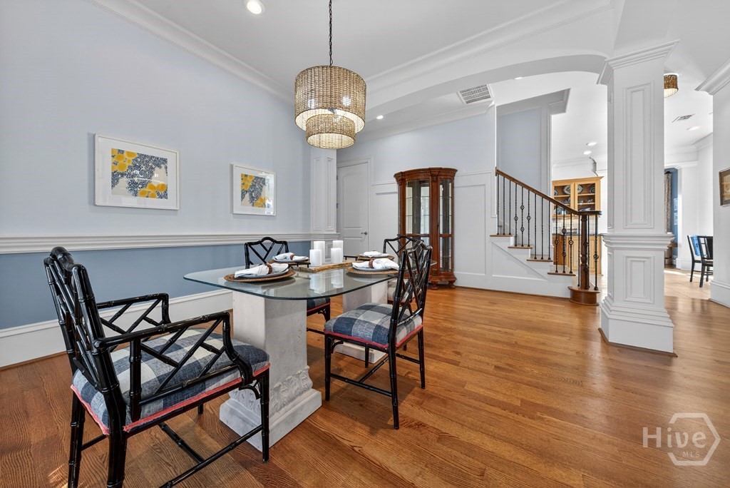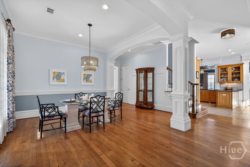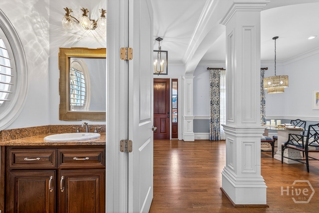 LUXURY LIVING AT LAKE SINCLAIR! MILLION DOLLAR VIEWS, LOCATION, TURNKEY, AMENITIES! The Legacy at Lake Sinclair is a gated community offering one of the very few Lock-and-Leave lifestyles at Lake Sinclair. This luxury condo is a top unit with an advantage of being situated in the middle on the point looking at long panoramic views of Lake Sinclair. There’s a wrap around veranda featuring french doors to enjoy the views! Enjoy a personal elevator or stairs for convenience! There’s two bedrooms on the main floor including the primary EnSuite which features an impressive walk-in closet. Throughout you will notice detailed craftsmanship & custom millwork- hardwood floors, coffered ceilings & built-ins. The gourmet kitchen offers Stainless Steel appliances, double ovens & granite countertops. Do not worry about space here – Upstairs features 2 add’l bedrooms and a HUGE flex space. The Legacy is STEPS away from The Club at Lake Sinclair featuring an 18 Hole Golf Course & Aubri Lane’s Restaurant. Unit 504 offers an ASSIGNED SLIP FOR YOUR BOAT & it’s own garage! WIN!