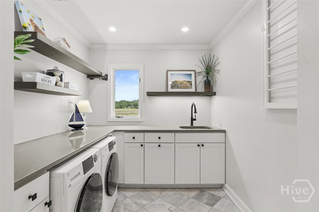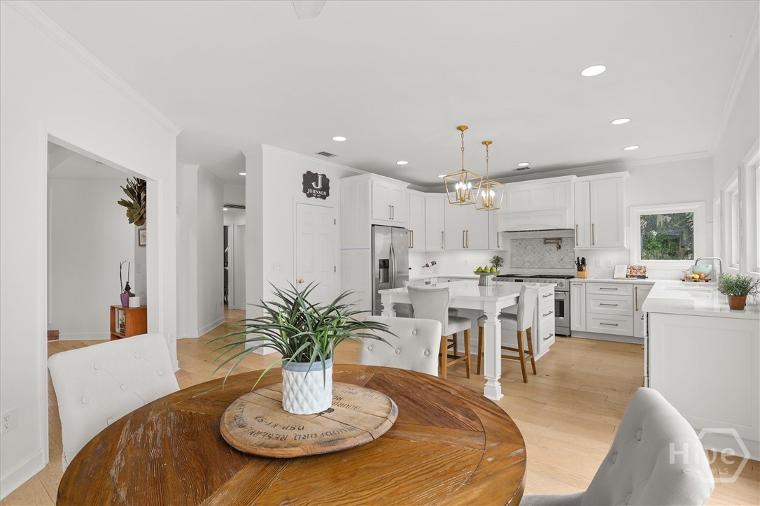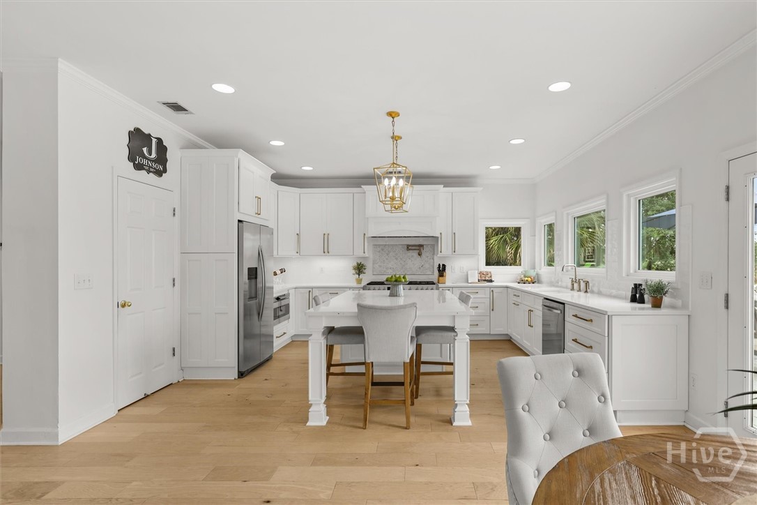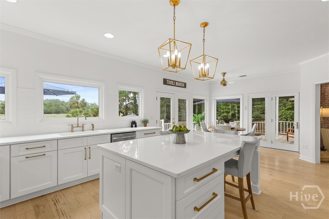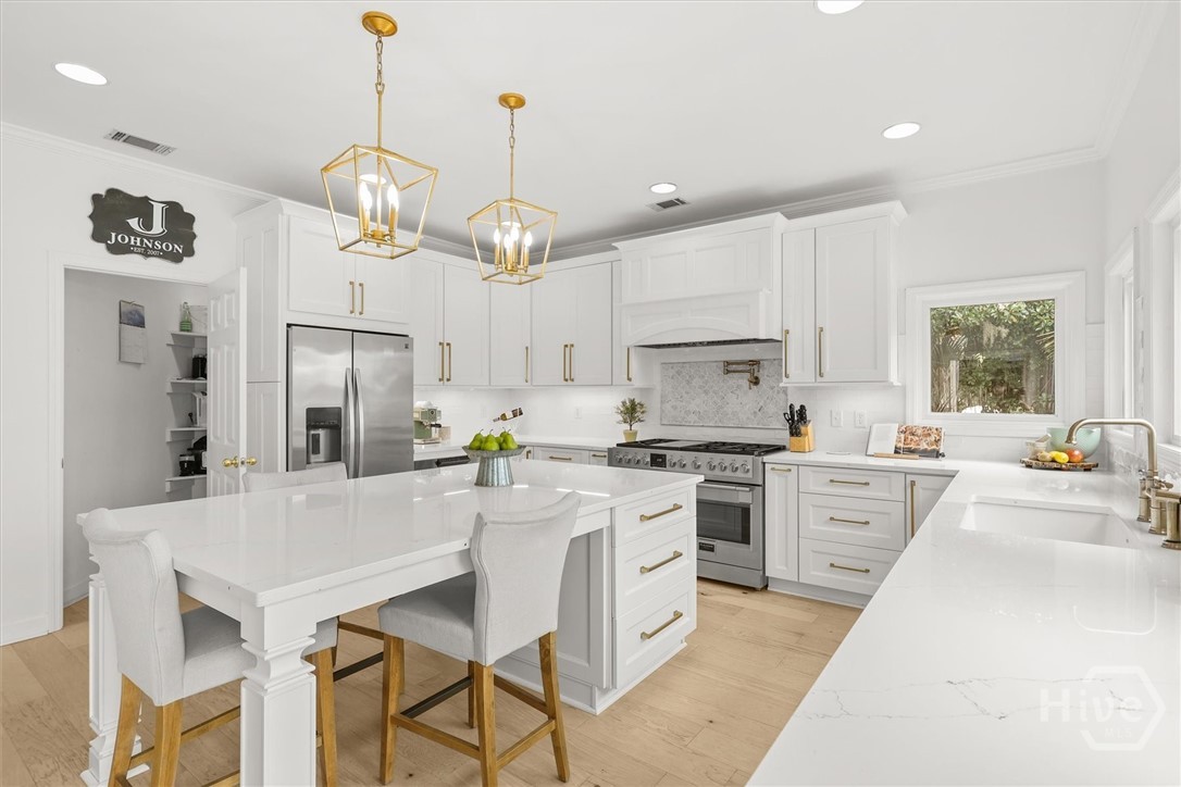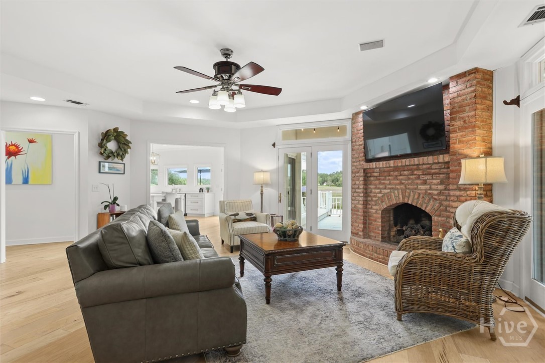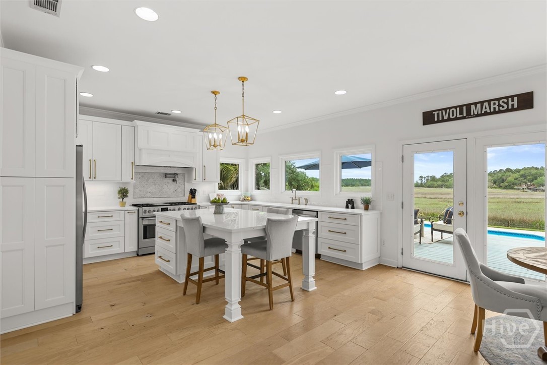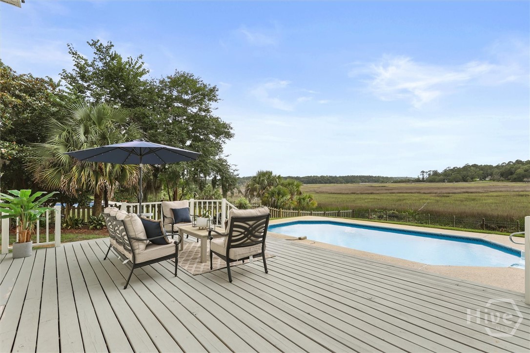 Beautifully updated Marshfront home on the Tivoli River! A grand two-story foyer leads the way into this stunning home where custom designer details are showcased throughout. Entertain effortlessly in the formal dining room, highlighted by arched windows and a striking chandelier or relax in the richly designed office/library. The gourmet kitchen features white cabinetry, a 48-inch Fulgor Milano dual-fuel gas double oven range, island seating and a cozy breakfast nook. The windows over the sink capture stunning marsh views, creating a natural masterpiece. The great room features a classic brick fireplace and access to the outdoor oasis complete with private saltwater pool, expansive deck and covered courtyard. The owner’s suite with fireplace and private balcony boasts double vanity, soaking tub, and glass shower. Additional highlights include 2 guest bedrooms, a vaulted bonus room easily convertible to a fourth bedroom, stylishly updated baths, custom laundry and a 2-car garage. Beautiful design, versatile living spaces, and an inviting outdoor retreat define this waterfront home in Sayles Landing!