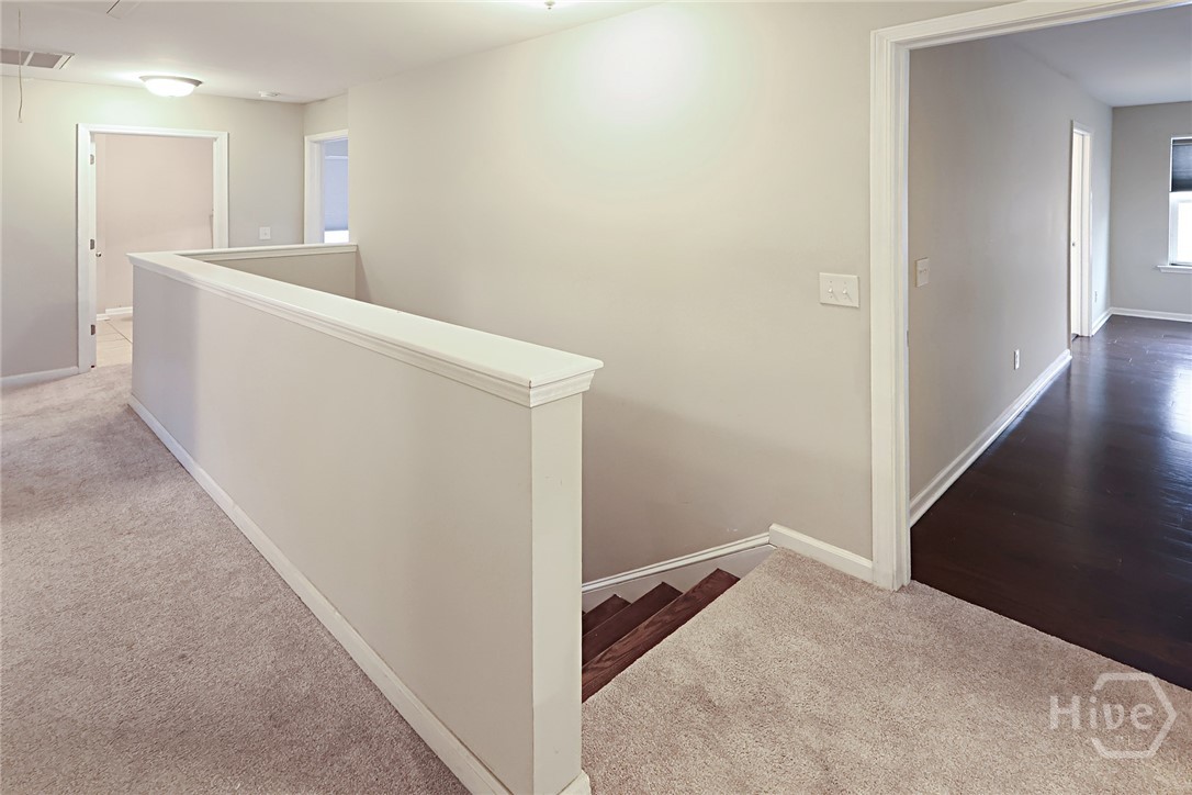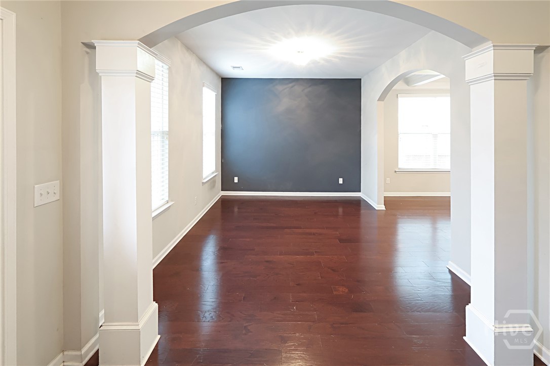 Spacious 4-bed, 3.5-bath home in the desirable Highland Falls community. The gourmet kitchen offers designer cabinetry, granite countertops, stainless steel appliances, recessed lighting, a large island with built-in storage and seating, walk-in pantry, and a built-in charging station—ideal for entertaining. Hardwood floors throughout the main level are enhanced by coffered ceilings, an open dining/living area, and a light-filled sunroom. The expansive primary suite features a sitting area, two walk-in closets, dual vanities, granite counters, a garden tub, separate shower, and ceramic tile flooring. Additional features include a bonus room perfect for an office or recreation and walk-in closets in every bedroom with abundant storage. Residents enjoy Highland Falls amenities including a community pool, fitness center, and tennis courts.