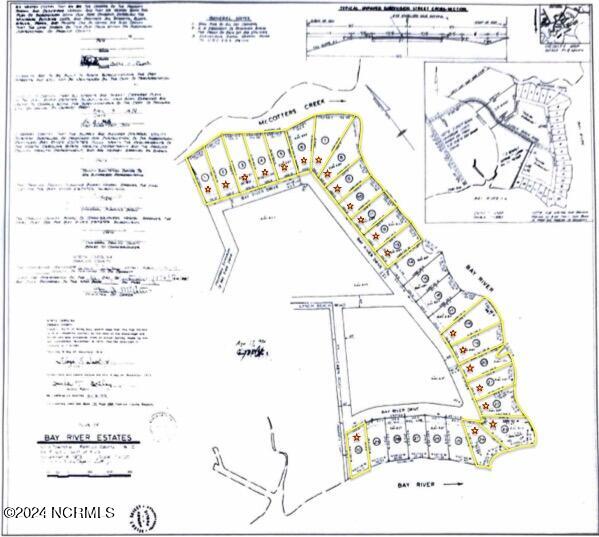 In addition to the plated lots there are 2 excess tracts. One tract totaling approximately 12.20 acres with frontage along the Bay River and a second tract containing 27.50 acres with frontage along McCotter’s Creek for a total of 39.70 acres. The high and best use for these tracts is for residential development.