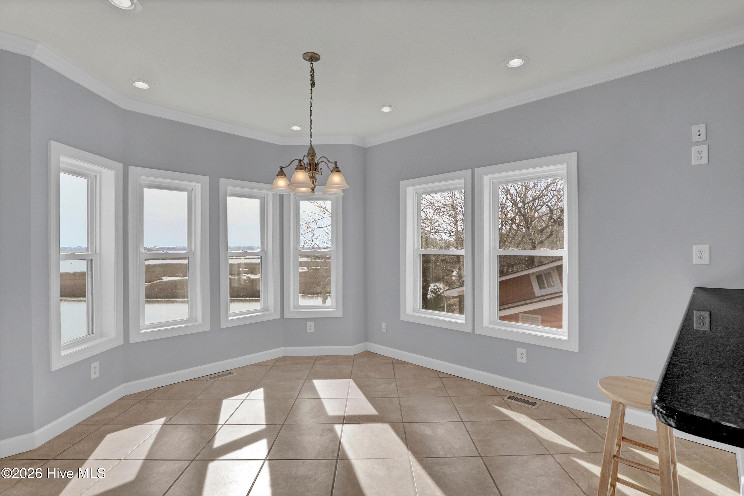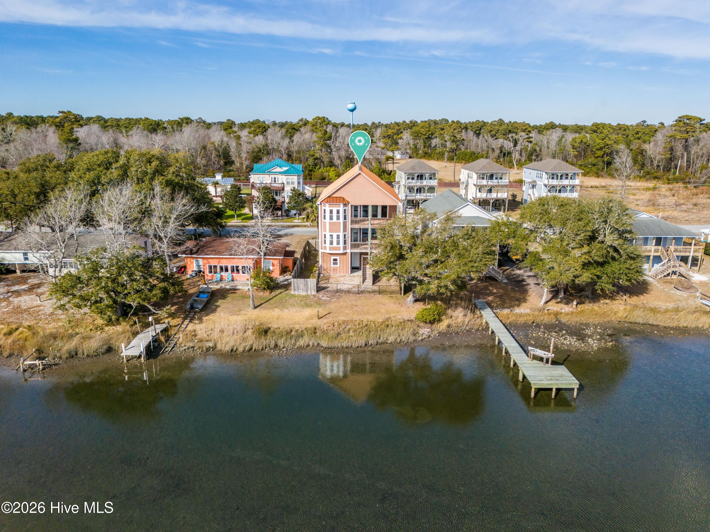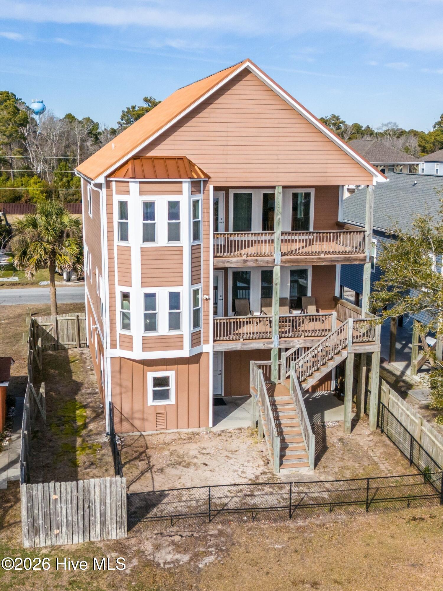 Custom built waterfront home with breathtaking views over the sound to the ICW, within minutes to Topsail Island beaches. Decks on both floors with Trex deck flooring, Top quality construction built to 150 Wind Rated, 2 x 6 studs and walls, impacted rated windows, doors, and garage doors, hard plank siding painted in 2023 and metal roof. Interior features granite counters, reinforced game room floor with wet bar, 9ft ceilings, 80 gallon water heater and security cameras. For easy access, this home has a 3-stop elevator, Accessible doors, primary bath, and hallways. For furry friends a fully fenced in backyard. Move in ready please consider this home for primary or secondary.