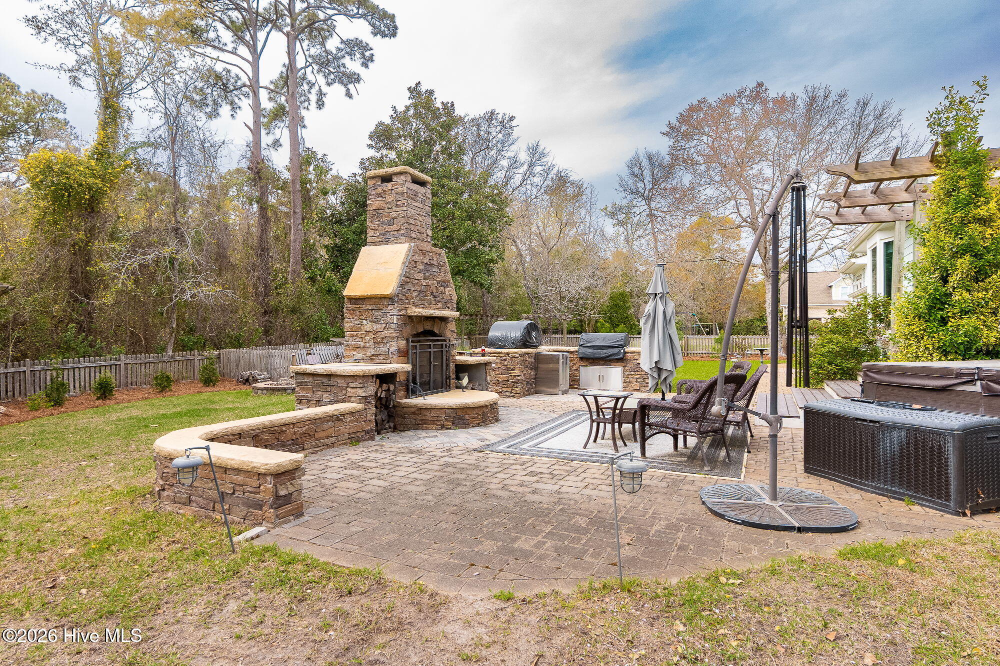 Designed for entertaining, the home features multiple spacious living areas and beautiful hardwood floors throughout the main living spaces. Step outside to a private brick patio complete with a hot tub, firepit, and outdoor cooking area–perfect for hosting gatherings year-round. A welcoming covered front porch adds to the home’s charm.