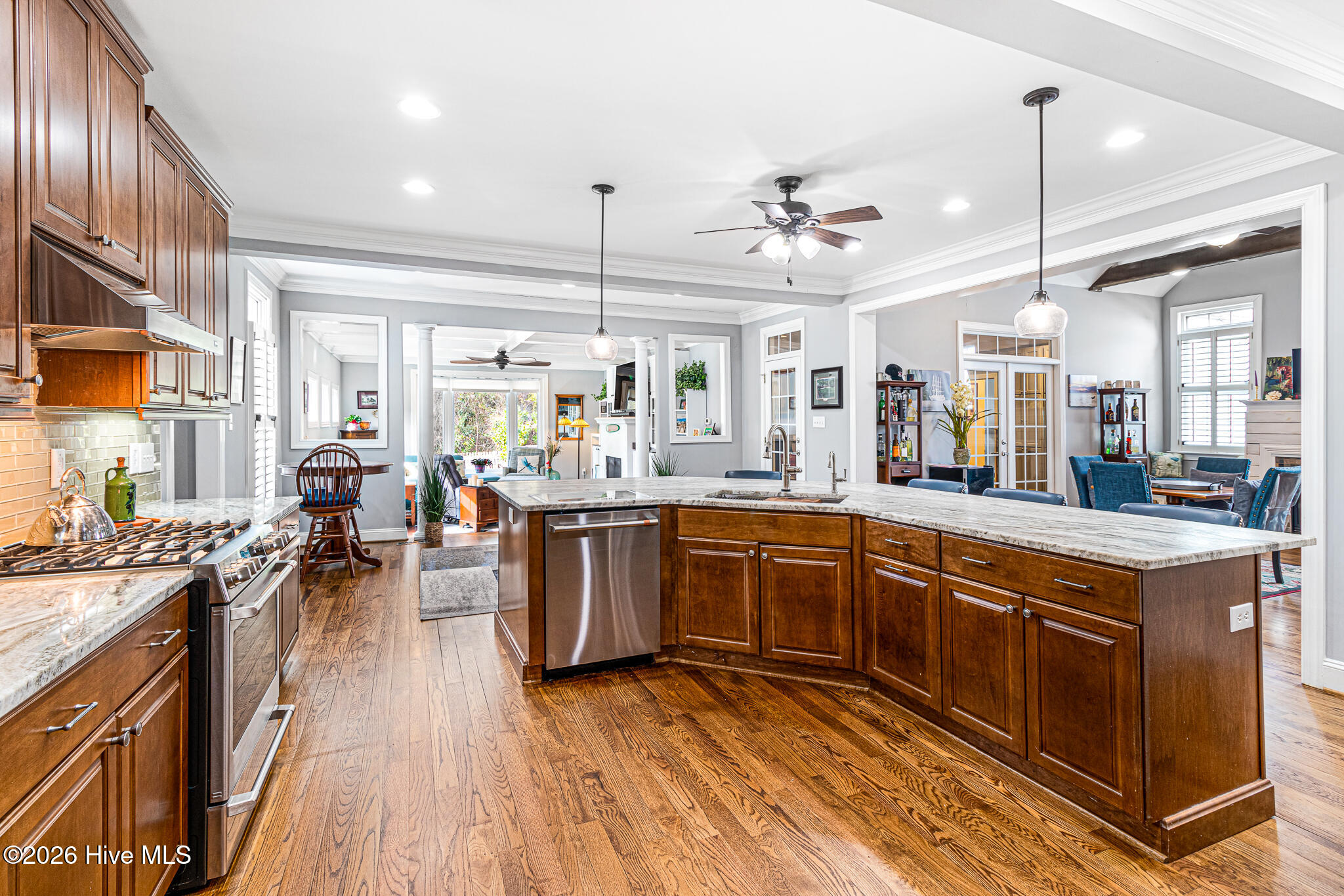 This impressive 5-bedroom, 4½-bath home offers more than 5,000 square feet of thoughtfully designed living space in the desirable Bay Colony community just off Highway 24.