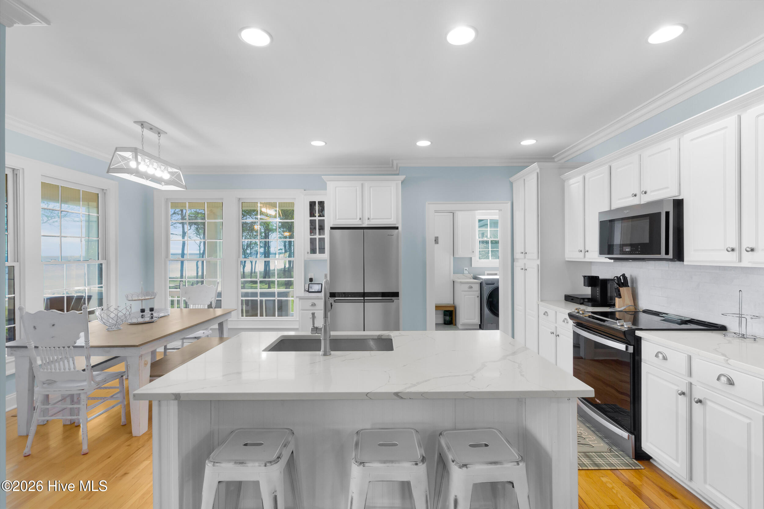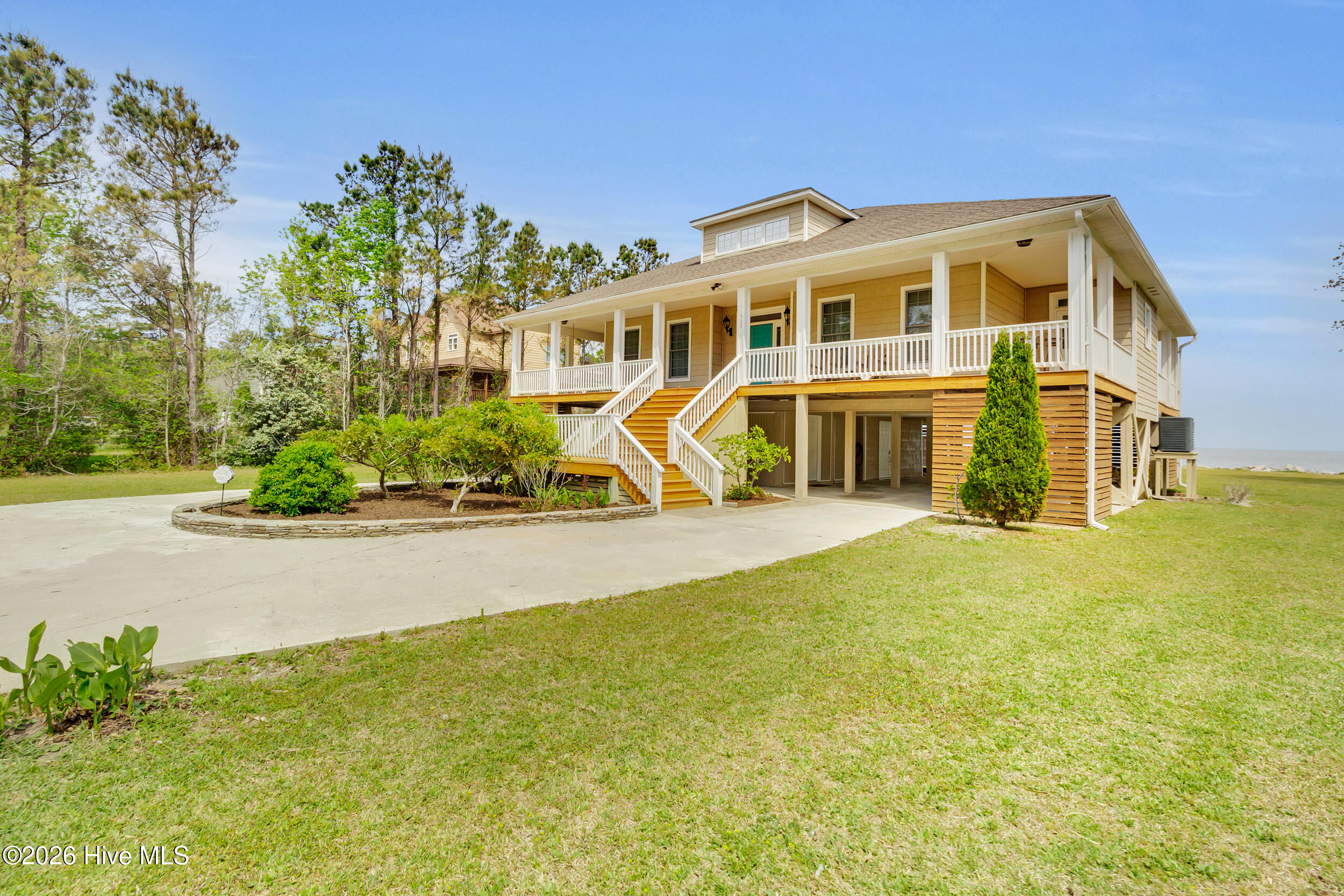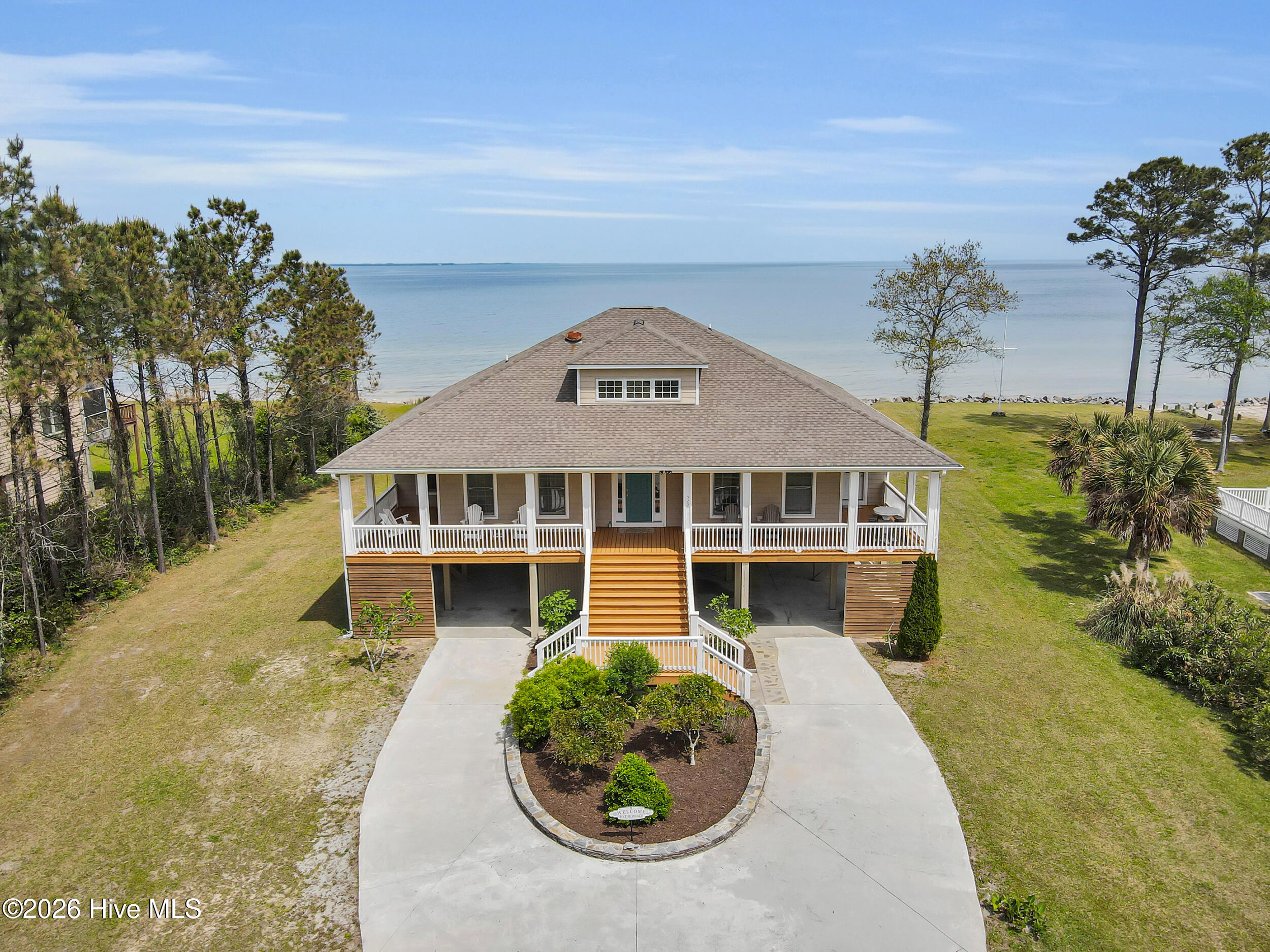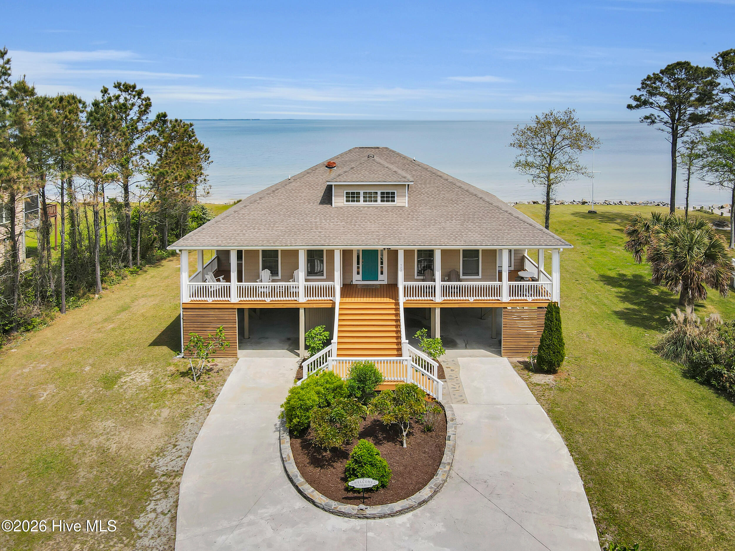 Spectacular beach house located on a 1.4 acre private piece of paradise! Enjoy the tranquil and peaceful setting as you drive through the wooded lot up to this beautiful coastal home! Feast your eyes on panoramic views and stunning sunsets, where the Pamlico Sound meets the Neuse River! This luxurious home has been completely updated with a new kitchen island, quartz countertops, all new appliances, all new light fixtures, smart wired for your convenience, electric car charger and level 4 window tinting added to all the windows. The interior and exterior of the home have been recently painted and gutters have been added. Upstairs you will find a game room and a bonus/flex room with another full new bathroom! All three bedrooms on the main floor have their own private baths! The kitchen flows into the family room making it perfect for entertaining with it’s open concept living! The sunroom, over 300 additional square feet of space (not included in the heated square footage of the home), is located right off of the family room. Step outside to the 125′ pristine sandy beachfront, the ideal setting for plenty of outdoor activities, no stumps or roots to worry about as you splash about! You can launch your boat or kayak right in your backyard or sit back and relax on your new CAMA permitted deck dock where you can watch the dolphins swim and the ospreys and eagles soar! The South River Boat Ramp is just minutes away and you can be in downtown Beaufort in less than 20 minutes! This meticulously cared for home just had a new well pump installed with a water softener and a reverse osmosis water system. There is a workshop and finished room underneath the home which would make a great ”man cave or she shed”. There is also tons of storage and an outdoor shower! This house is gorgeous, the views are breathtaking and it is move in ready! Call and schedule your private showing today!