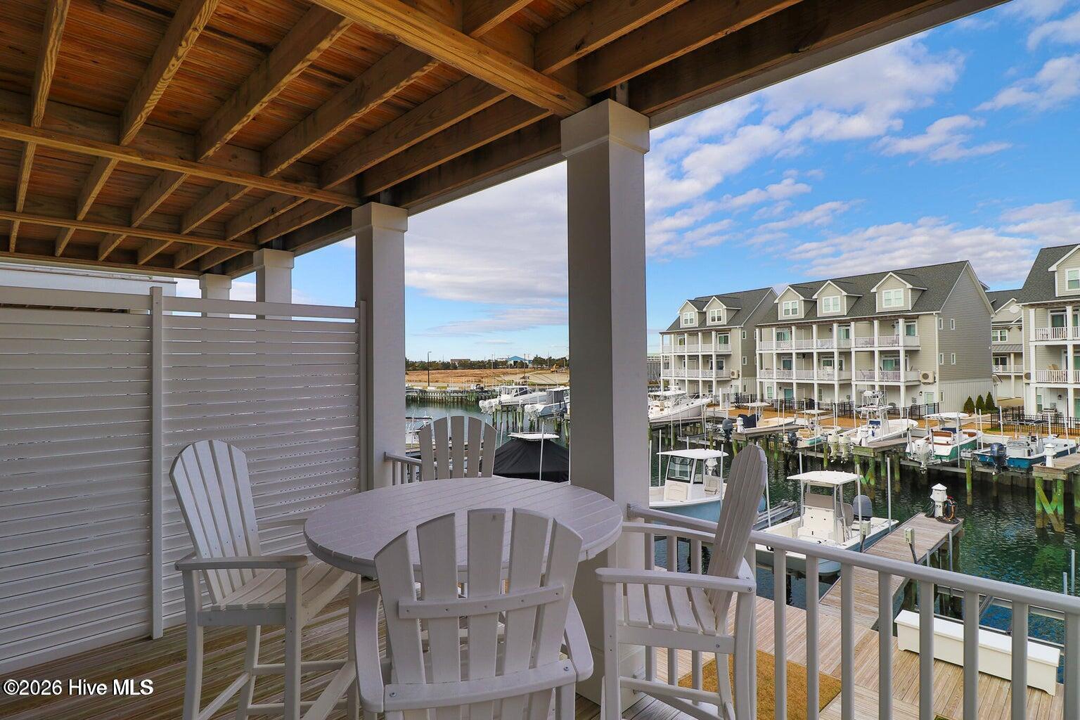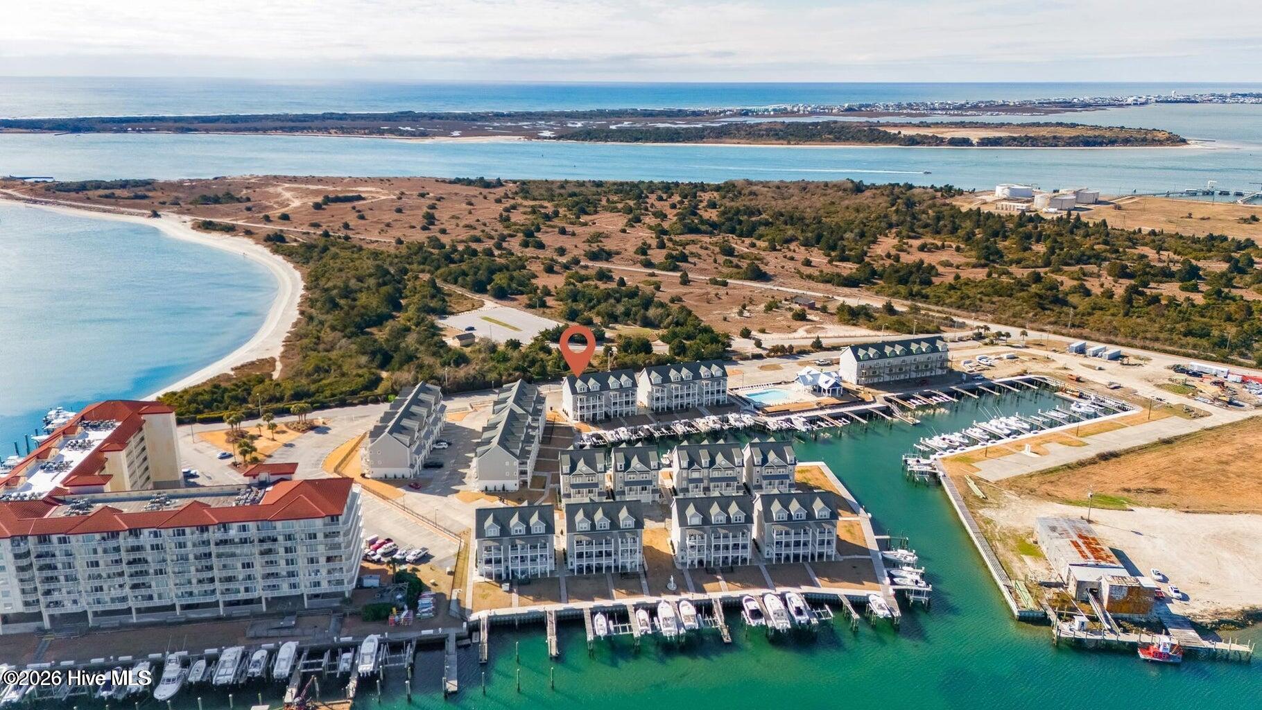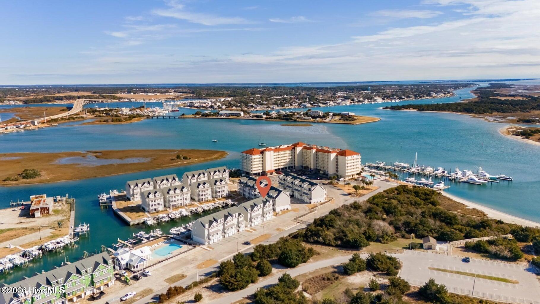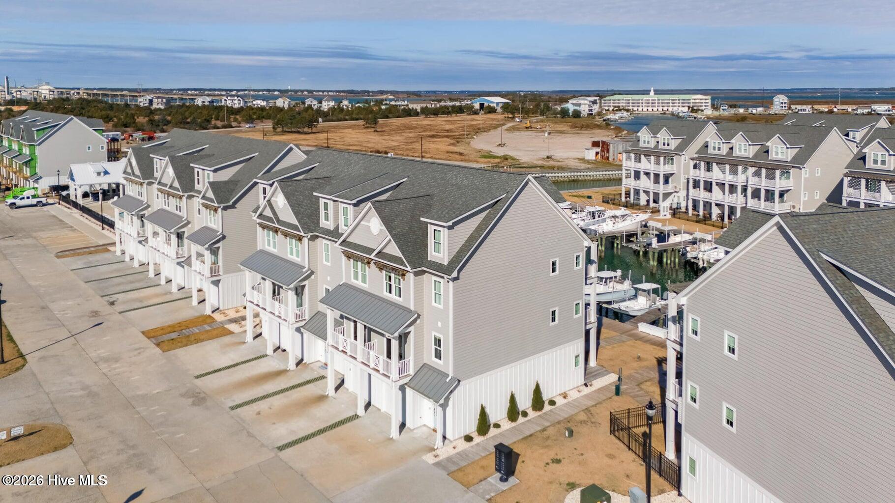 Beautifully upgraded, fully furnished end-unit townhome, this Inlet Cove residence offers modern elegance and unbeatable marina-front living with breathtaking views of Beaufort Inlet. Upgrades at time of construction include: elevator, addition of 4th bedroom, extensive shiplap details, upgraded gourmet kitchen details and more (see info under docs). Enjoy the privacy of an end unit and a thoughtfully designed layout beginning with a first-floor entry featuring a single-car garage and a private guest bedroom with ensuite bath.