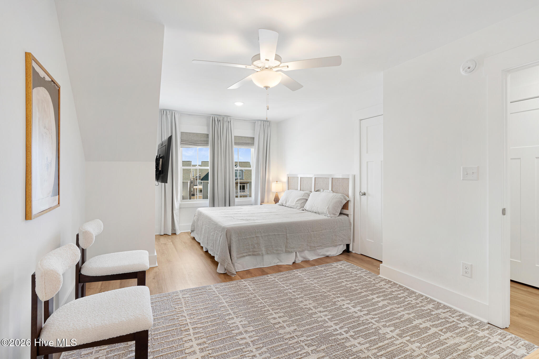 On the third floor, the primary suite features a private deck overlooking the marina, along with an ensuite bath with a tiled shower, double vanity, and walk-in closet. An additional guest suite with private ensuite is also located on this level. The fourth floor provides another guest suite with stunning views, a walk-in closet, ensuite bath, plus extra closet storage and walk-in attic space.