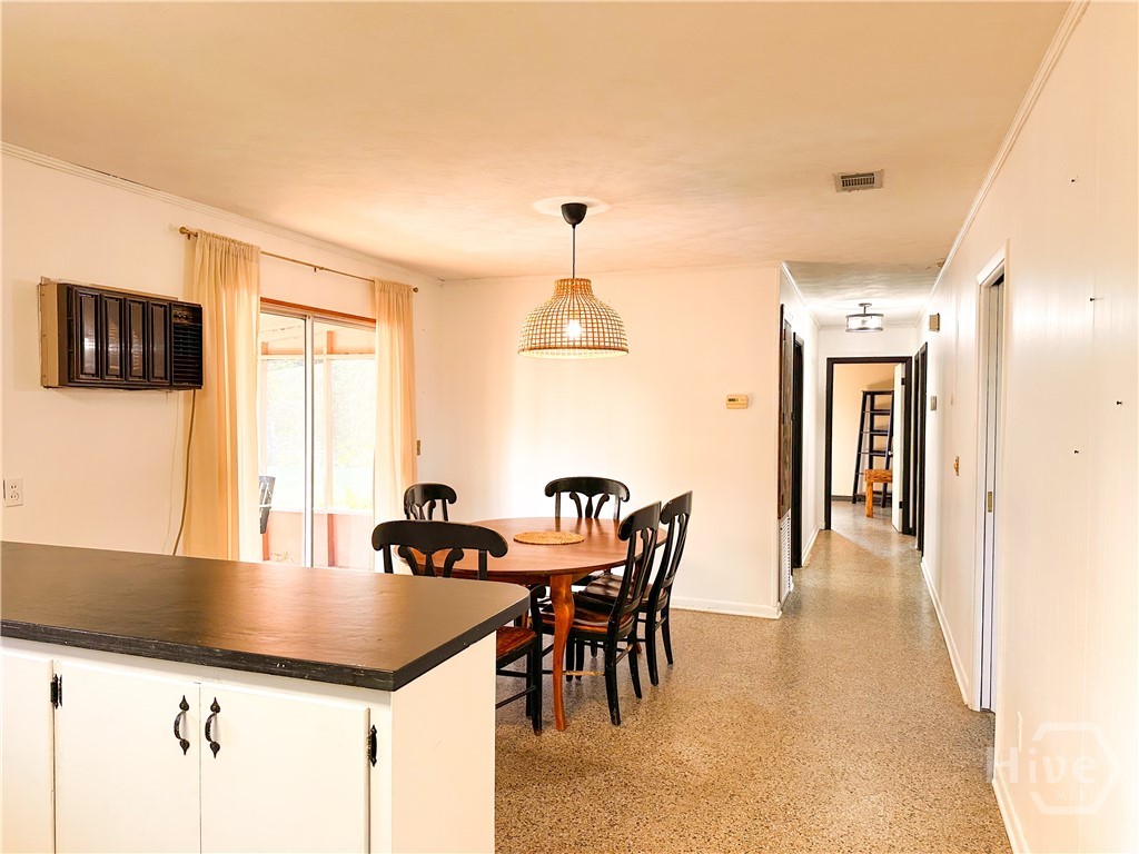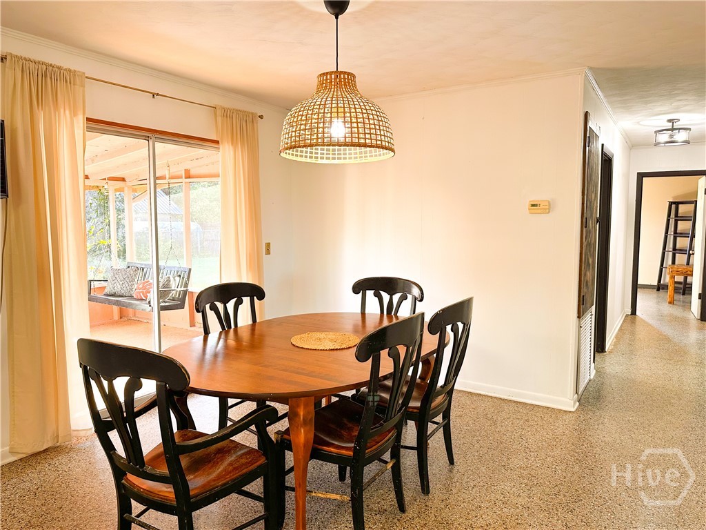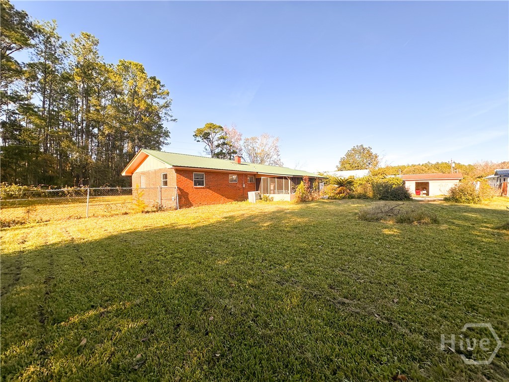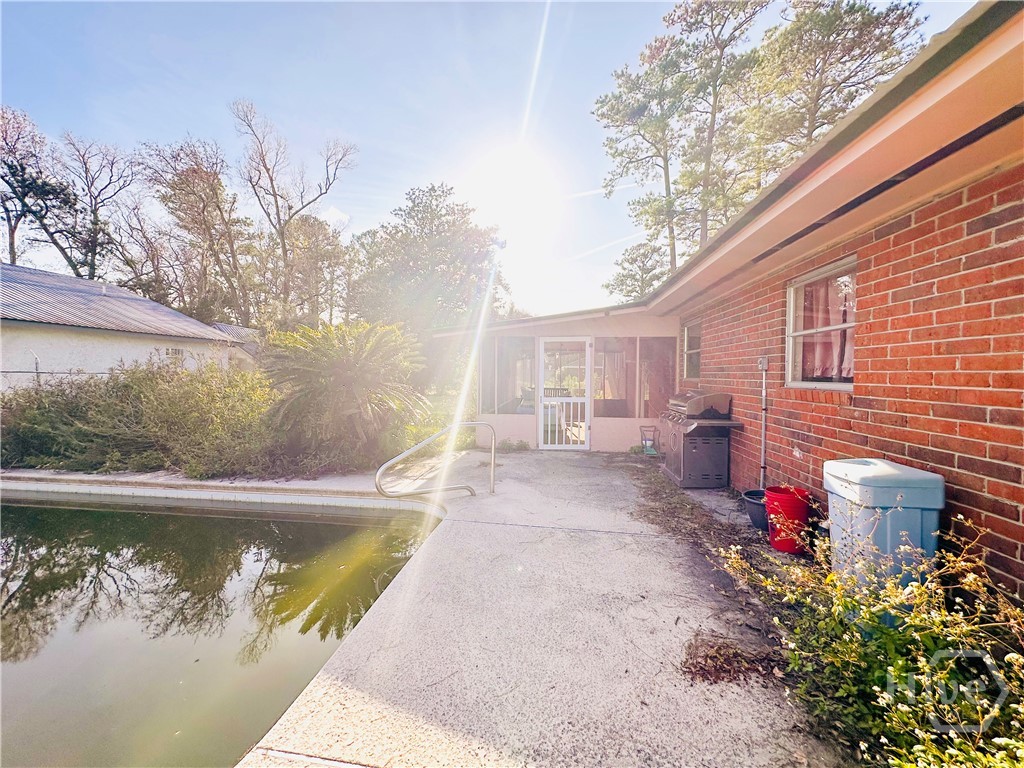 Welcome to this 3-bedroom, 2-bath four-sided brick ranch home that blends timeless character with inviting outdoor living. Situated on a spacious lot, offering durability, comfort, and unique architectural touches throughout. Inside, you’ll find large windows that fill the home with natural light, double pocket doors entering living space, unique terrazzo flooring throughout, and beautifully tiled bathrooms that add classic appeal. The layout includes both a living room and a den, providing flexible space for relaxing, entertaining, or gathering with family. A screened porch with swing offers the perfect spot to enjoy morning coffee or unwind in the evenings. Outside, the property truly shines with a metal roof, fenced backyard, swimming pool, and a barn thats ideal for storage, hobbies, or future possibilities. This home offers privacy, functionality, and room to enjoy outdoor living year-round. Located minutes to Historic Downtown Brunswick with local shops, dining, and waterfront views. Easy access to St. Simons Island and Jekyll Island beaches and I-95, making commuting and travel a breeze. Close to golf courses, marinas, parks, and coastal recreation! A location that keeps you close to the best of the Georgia coast. Call me today for a showing or any questions!
