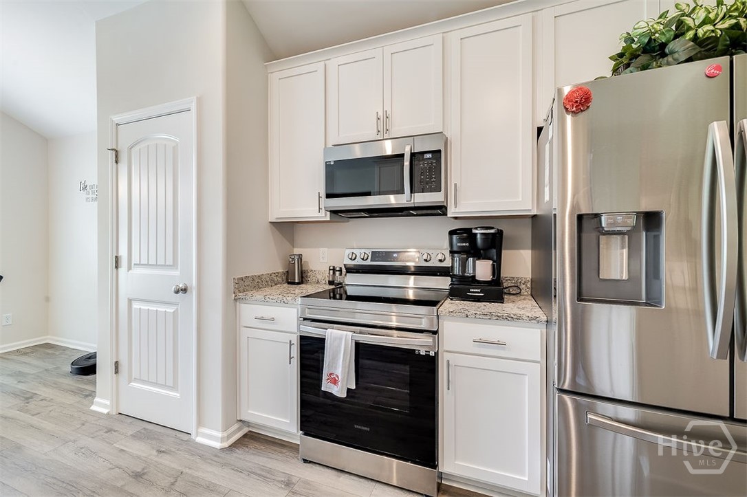 Welcome to this stunning 4 bedroom, 3 bath home in a desirable gated community! Built in 2022 and situated on a spacious .66 acre lot, this home offers the perfect blend of modern luxury and peaceful surroundings. The open concept layout features vaulted ceilings in the great room, kitchen and dining area, creating a bright and airy feel throughout the main living space. The gourmet kitchen boasts granite countertops, stainless steel appliances, and high end finishes, while the great room area showcases a beautiful laminate wood flooring. The private master suite includes a tray ceiling, an oversized walk-in closet, a spa-like bath with a soaking tub and walk in tiled shower. A large bonus room with a full bath is the only room upstairs, ideal for a home office, guest suite or additional living space. Tile flooring in all bathrooms and the laundry room, blinds through out, and thoughtful upgrades like new gutters with leaf guard and irrigation system. Enjoy the privacy of a backyard that backs up to trees and a wooded area, your own peaceful retreat just minutes from local amenities. Make sure you make your appointment today!