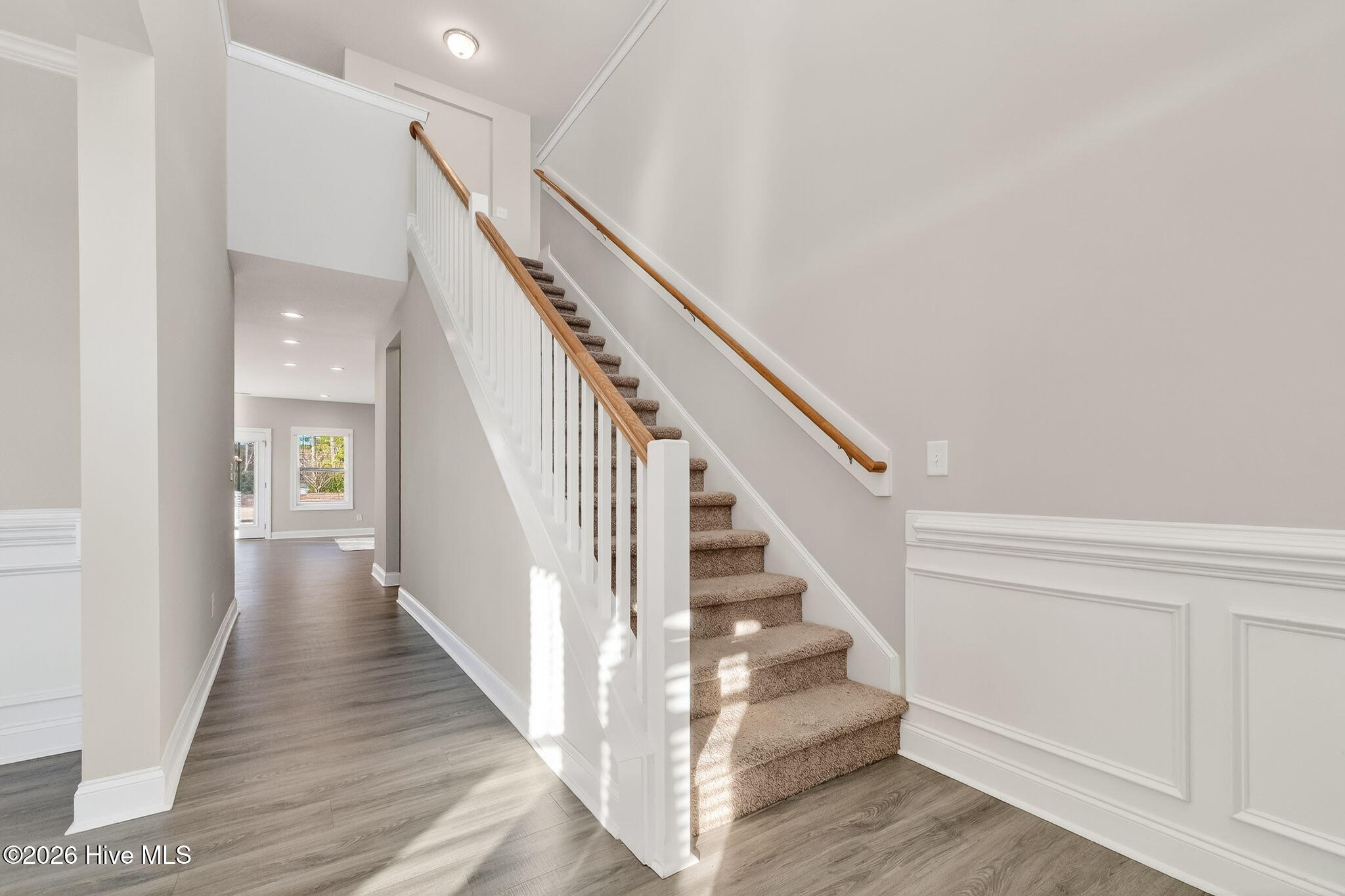 The foyer welcomes you into an open floor plan that’s perfect for everyday life and entertaining. The formal dining room with coffered ceilings adds elegance, while the kitchen is designed to impress with a butlers pantry PLUS Walk-in Pantry, tile backsplash, Rich cabinetry, an over-sized Granite island, Wall Oven, 5 Burner Cook Top,a stainless steel vented hood, Stainless French Door Refrigerator. Large Breakfast Bar. The family room flows seamlessly from the kitchen, creating a warm, inviting heart of the home. In addition to this Grand Living Area Down-Stairs is also a Guest Bedroom.