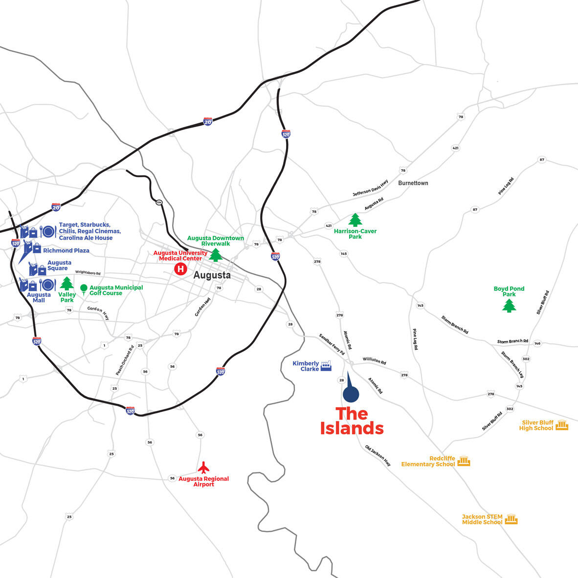Located in Beech Island, SC, The Islands offers stylish new homes with prices and property taxes up to 50% lower than nearby Augusta—meaning more home for your money! With easy access to I-520, I-20, and Hwy 125, plus proximity to Fort Eisenhower and Savannah River Site, you get small-town charm and big-city convenience all in one. Smart home features, modern designs, and a strong community vibe make The Islands the perfect place to call home.