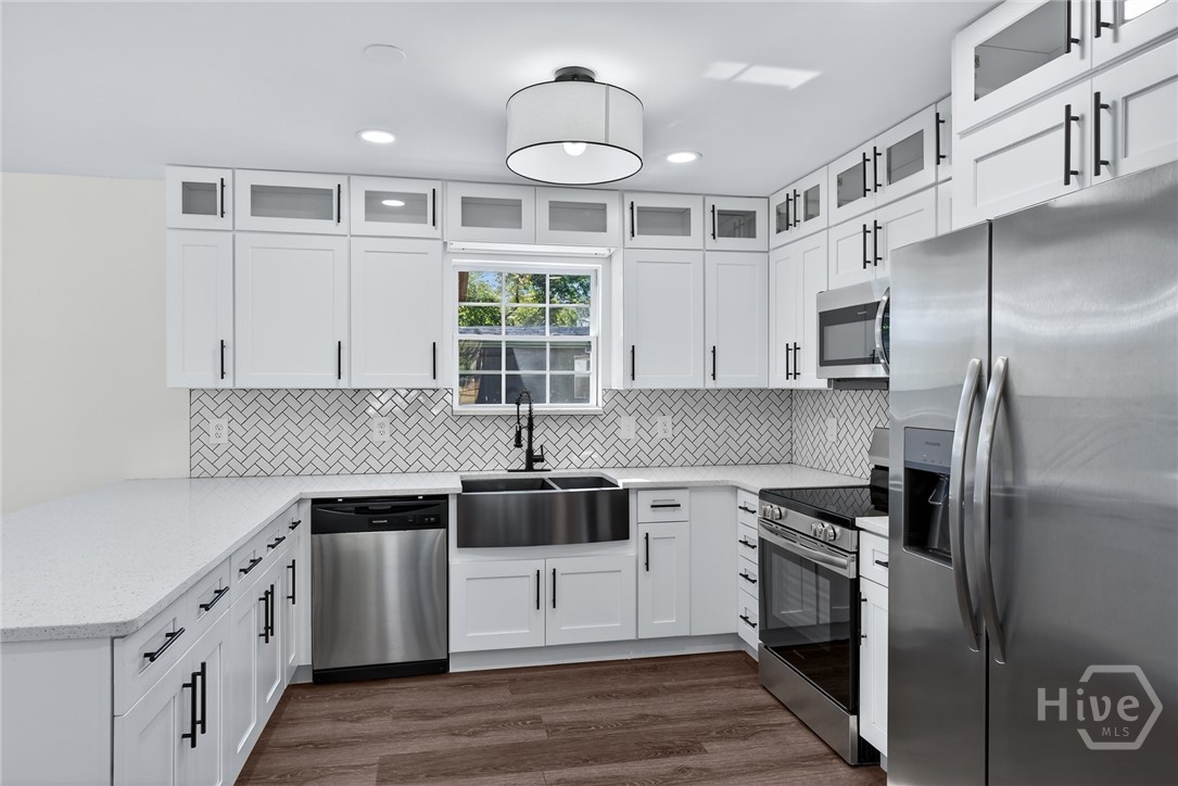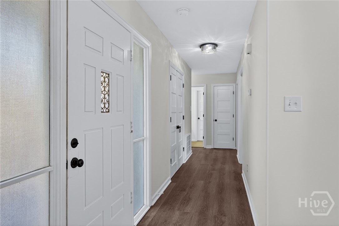 Move-in ready and thoughtfully renovated, this solid brick ranch offers space, flexibility, and freedom just outside Savannah in unincorporated Chatham County—no HOA and no STVR certificate required. Fresh paint inside and out pairs beautifully with all-new LVP flooring and a stylish, designer kitchen featuring quartz countertops, stainless steel appliances, new cabinetry, and a deep chef’s sink. Modern upgrades continue throughout with recessed lighting, new double-pane windows, and refreshed bathrooms showcasing new vanities and updated tile. The primary suite connects directly to a full bath, with an additional half bath offering convenient hall access. A flexible family room off the kitchen provides endless options for entertaining, a home office, or additional living space, with a dedicated laundry room just beyond. Outside, enjoy a fully fenced .26-acre lot complete with a covered patio, freshly painted shed, and easy parking with a front driveway and carport. Zoned for Hesse K-8 just 0.4 miles away and only minutes to Butter Bean Beach Boat Ramp, this home blends comfort, convenience, and lifestyle. Sold AS-IS.