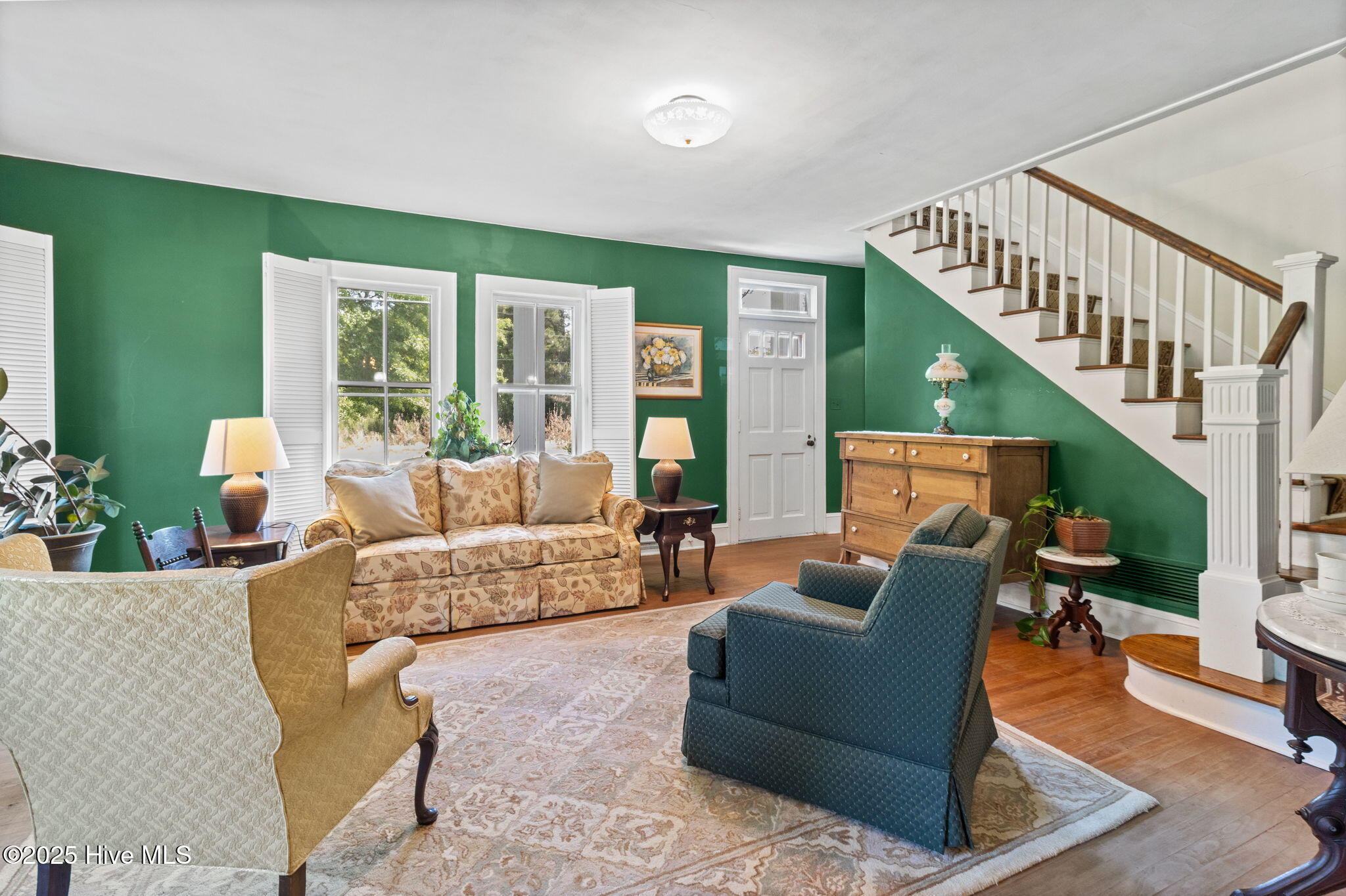 Step into the warmth and character of this rustic farmhouse nestled on just under 2.5 acres. This beautiful home blends historic charm with ease of everyday living. Inside you’ll find a welcoming main level bedroom and full bath perfect for guests or multi-generational living. The formal dining area and spacious den are perfect for family gatherings. The property features mature trees, a back porch, a fire pit, detached carport, a storage building, and a previously renovated garage/hobby space. Property includes 2.42 acres.