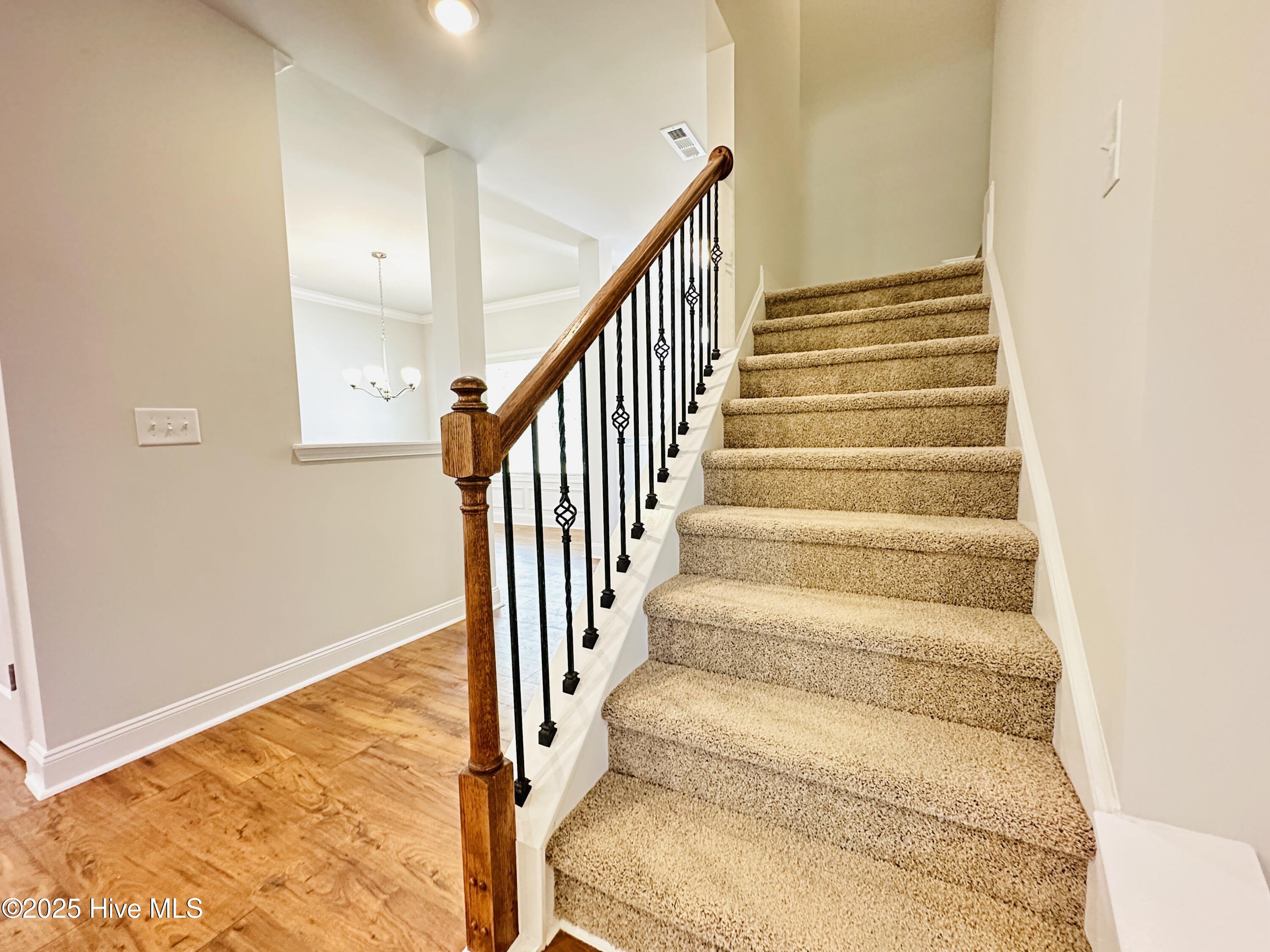 MOVE-IN READY! This remarkable home that combines spaciousness, functionality, and elegant design. With 4 bedrooms, flex space, 3.5 bathrooms, and a 2-car garage, this two-story home offers an abundance of living space for you and your family. The welcoming foyer is connected to the formal dining room that leads into the open-concept kitchen and family room. The chef-inspired kitchen is a true delight, featuring a large center island with a breakfast bar, perfect for casual dining or meal preparation. The kitchen also offers plenty of counter space, beautiful cabinetry, and high-end appliances, making it a haven for any aspiring chef. A walk-in pantry provides ample storage for all your culinary needs. The master suite is located towards the back of the main level creating a private and convenient space for the homeowner. The ensuite bath includes many features such as a spacious walk-in closet, double vanity, and a separate water closet. The second floor includes four additional bedrooms, each with its own closet, providing plenty of space for family members or guests. Two well-appointed full bathrooms serve these bedrooms, offering convenience and functionality. A versatile bonus room on the second floor provides additional living space that can be customized to fit your needs. It can serve as a media room, playroom, or cozy space for relaxation and entertainment. Also includes a designated laundry room on the second floor, offering convenience and organization for your laundry needs. The attached 2-car garage provides secure parking and additional storage space. All on .53 acres in a cul de sac!