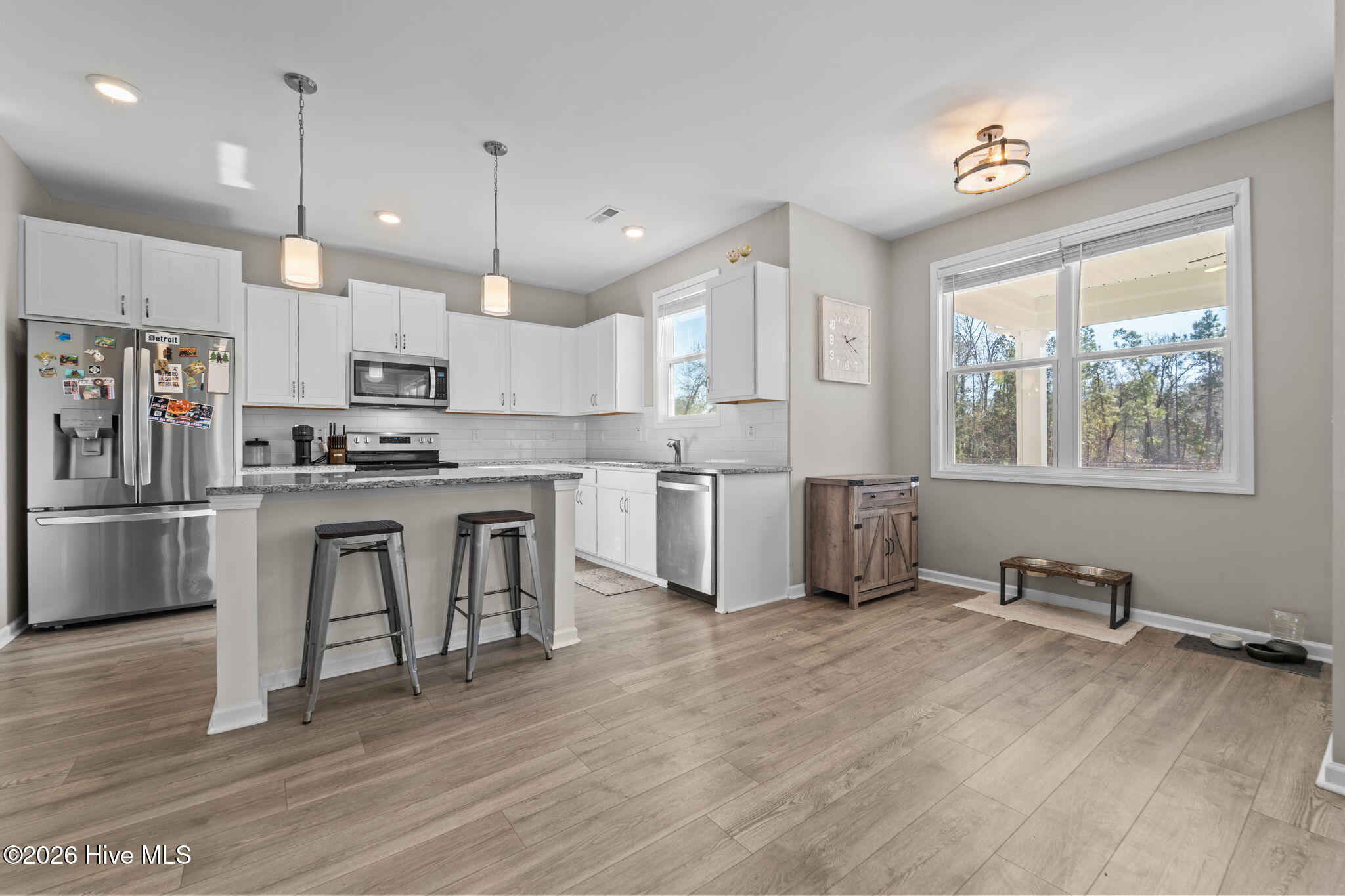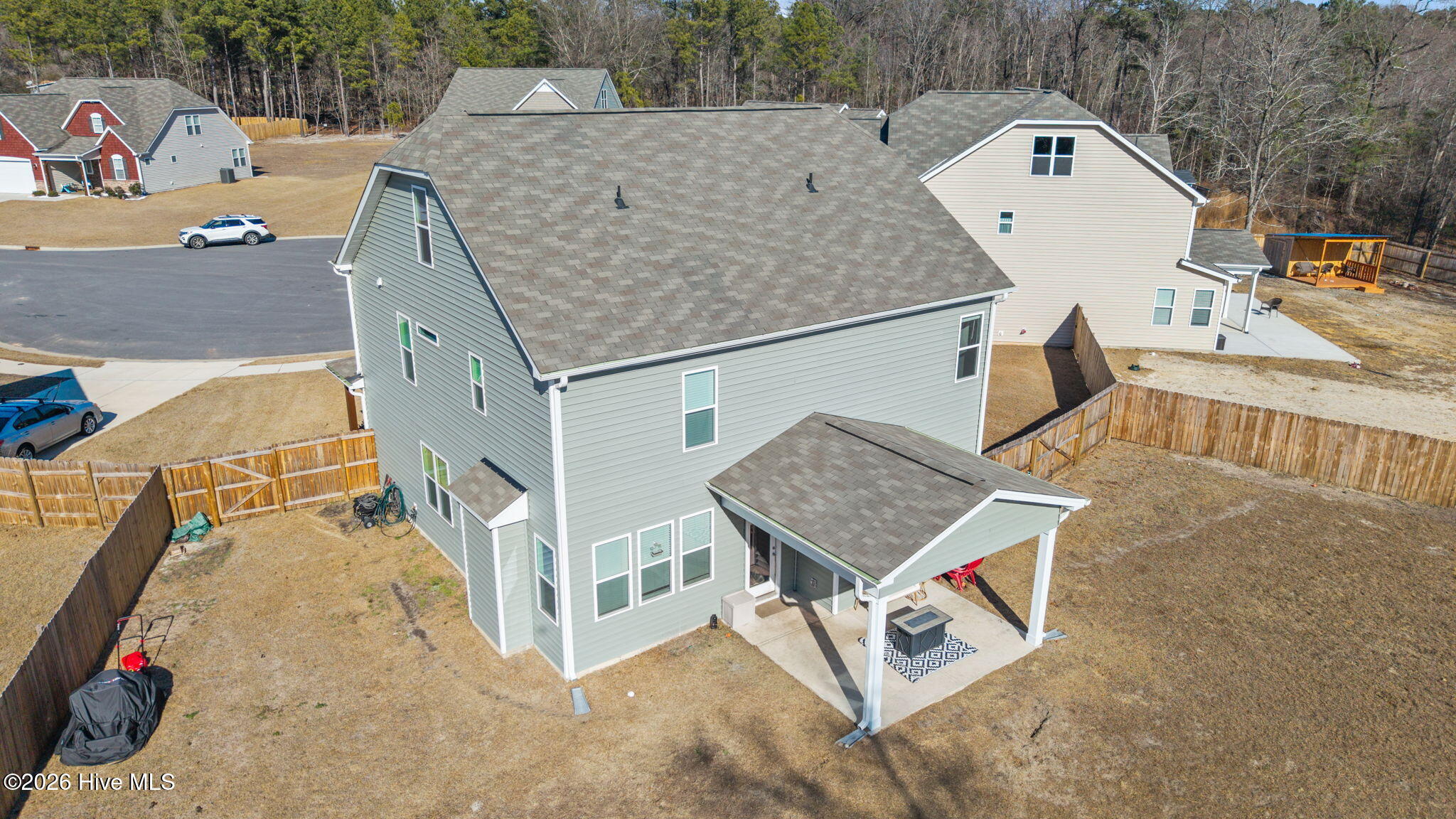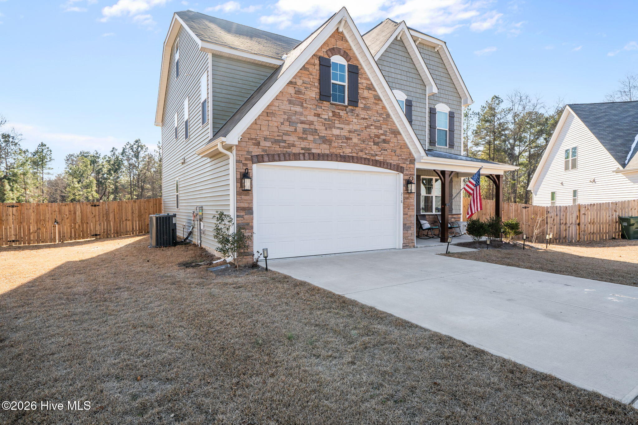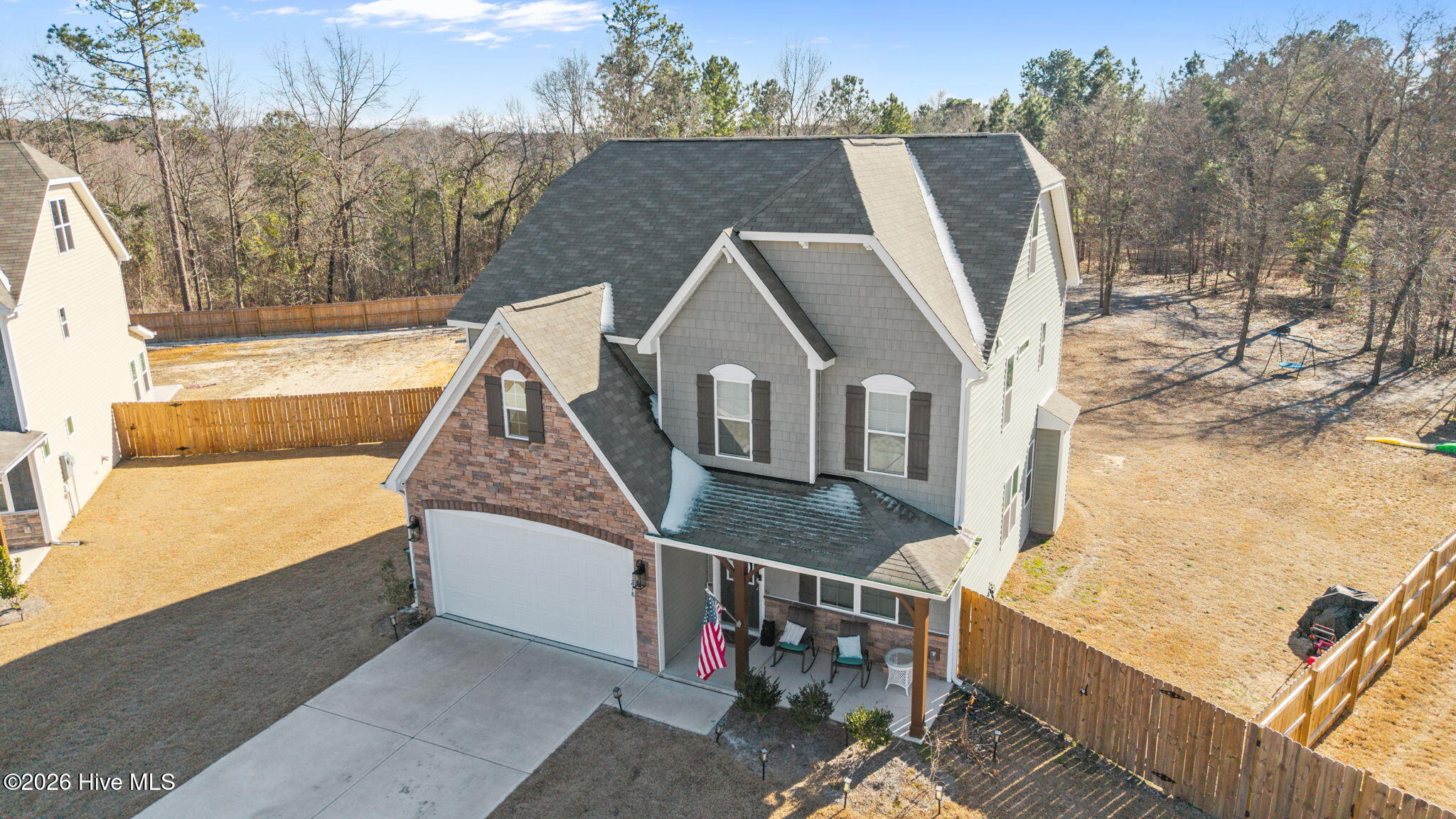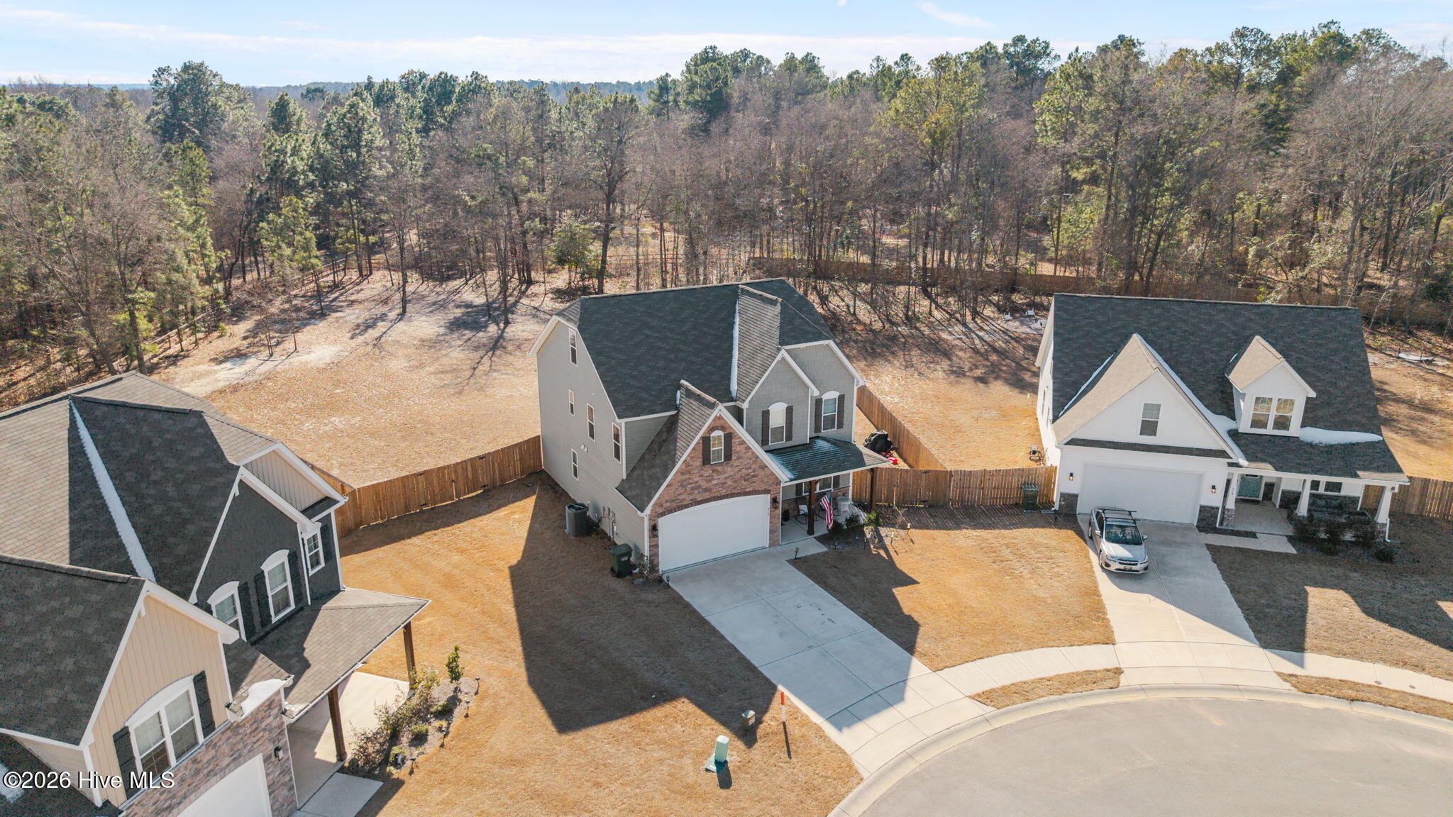 Welcome to the Nelson floorplan by McKee Homes, perfectly positioned at the end of a quiet cul-de-sac on 1.05 acres with exceptional privacy and wooded views. This thoughtfully designed home offers 4 spacious bedrooms, an open office ideal for working from home, a formal dining room, and an unfinished storage area ready for future expansion or organized storage. At the heart of the home is a large, open kitchen equipped with stainless steel appliances, a generous island with abundant storage, a pantry, and a bright eat-in kitchen nook. Upstairs you will find three spacious bedrooms, a full bath with dual vanity, and laundry room. The large master bedroom completes the second floor along with the master bathroom with dual vanities, oversized shower and master closet. The third level leads to a spacious unfinished attic space, perfect for future expansion or storage space. The expansive backyard backs up to mature woods, creating a peaceful retreat with tons of privacy—perfect for entertaining, relaxing, or enjoying nature. Conveniently located near Raeford, Southern Pines, and Fort Bragg, this home offers the ideal balance of serene living and easy access to shopping, dining, and major routes. A rare opportunity to enjoy space, privacy, and a functional layout in a highly desirable location.