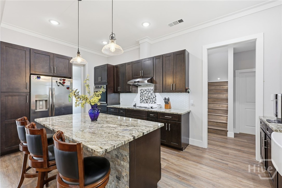 Featuring 10 foot ceilings, 30 year warranty flooring, spray foam insulation for energy efficiency, solar shades, induction oven, separate large butler’s pantry with bar & fridge & walk in pantry. Large farmhouse sink with more prep space. Large granite serving island with lots of prep space for preparing meals. Hidden microwave, double stainless ovens, pot filler over induction cooktop & pull out cabinetry make this an exceptional find! Owner’s suite with patio access tucked away in privacy with bidet, garden tub, bidet & double vanities. Two more large bedrooms on the main floor also with an extra large bedroom/hobby room/flex space upstairs with a full bath or it could be an additional living space or teen suite. Walk in attic storage, double garage & storage rooms plus a huge laundry room with sink, a back patio for the grill & a large welcoming front porch. The large living room has an open dining room and wonderful entertaining area. Plus all the fun of acreage galore! Come home to the country! Seller is willing to contribute closing costs for buyer!
