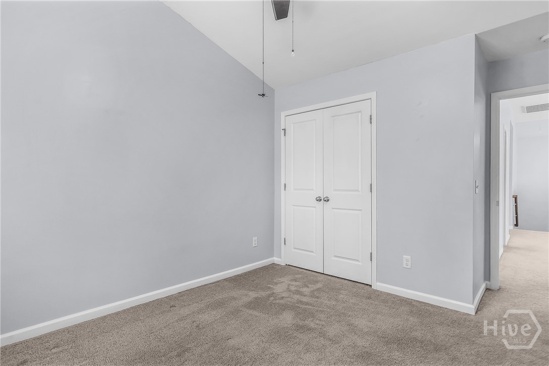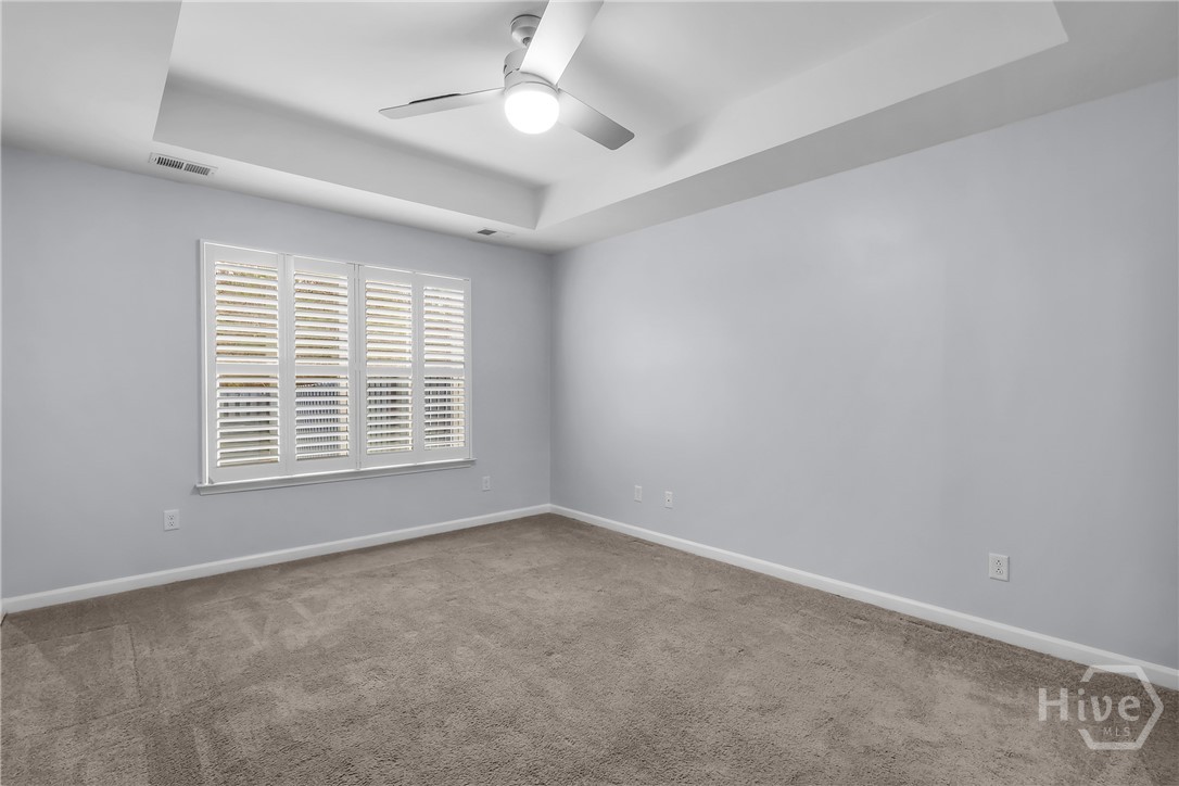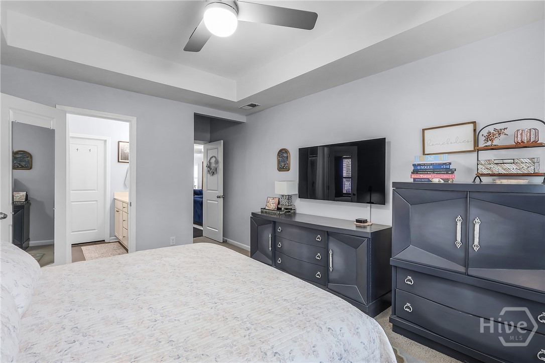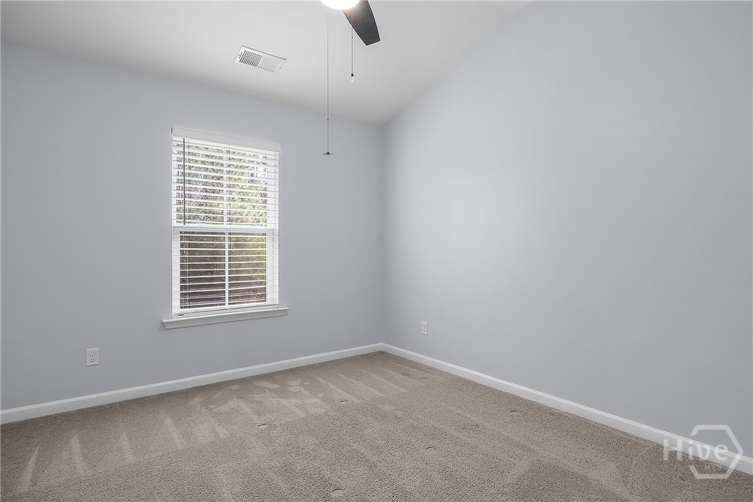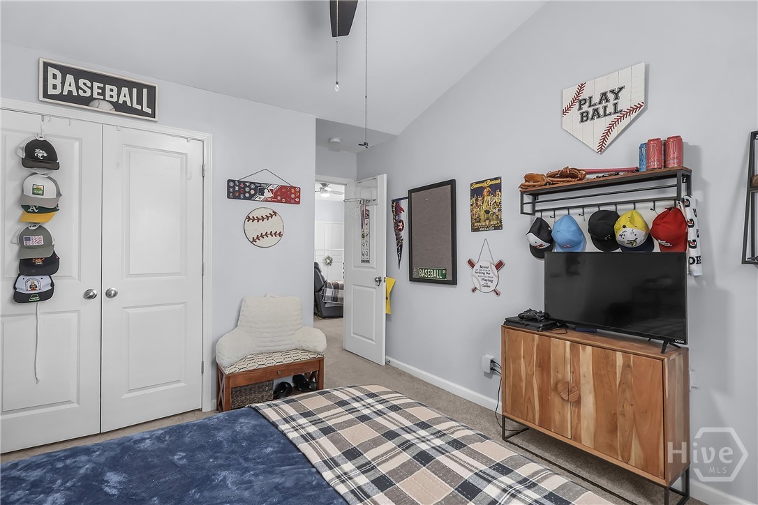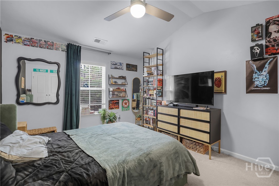 The primary suite provides a relaxing retreat with vaulted ceilings, plantation shutters, and ample space for a king-size bed and additional furnishings. Additional bedrooms are generously sized and versatile, suitable for guests, a home office, or hobbies. Bathrooms are well maintained with modern fixtures and finishes. A dedicated laundry area offers added convenience and storage.