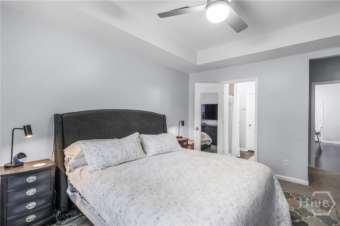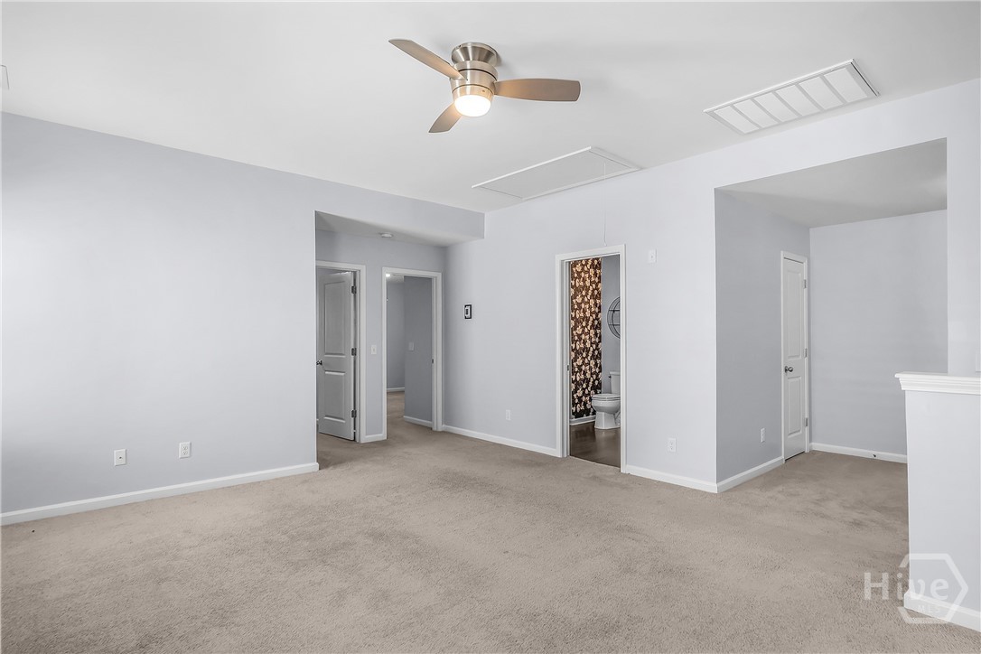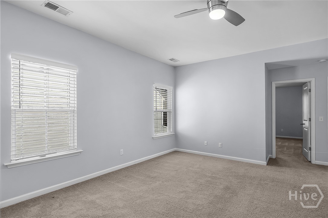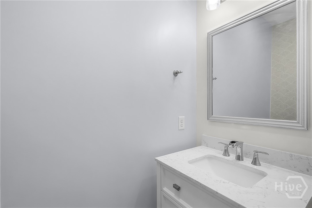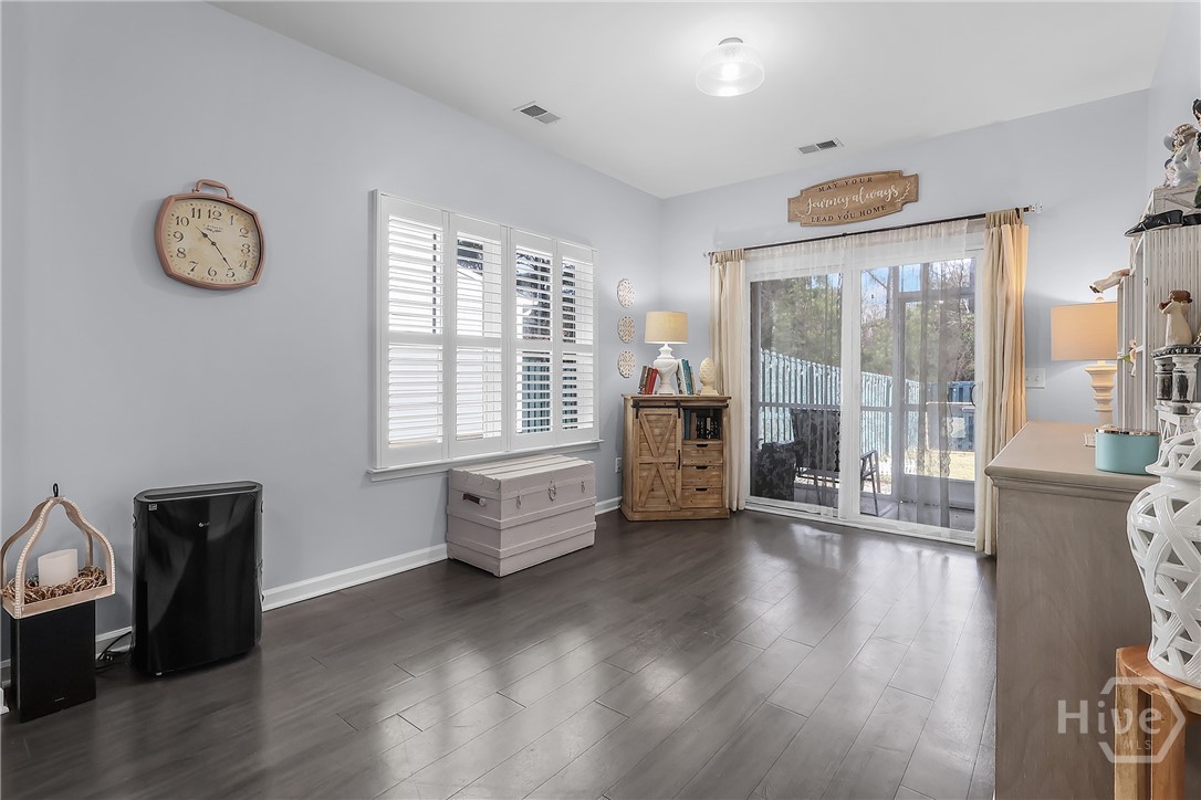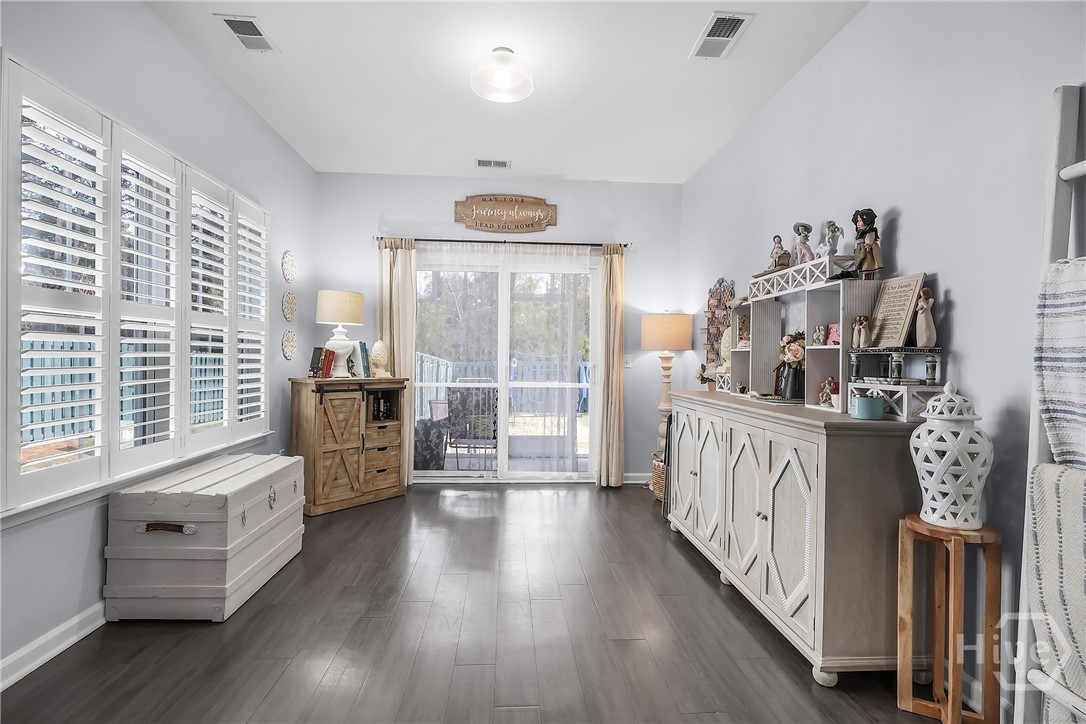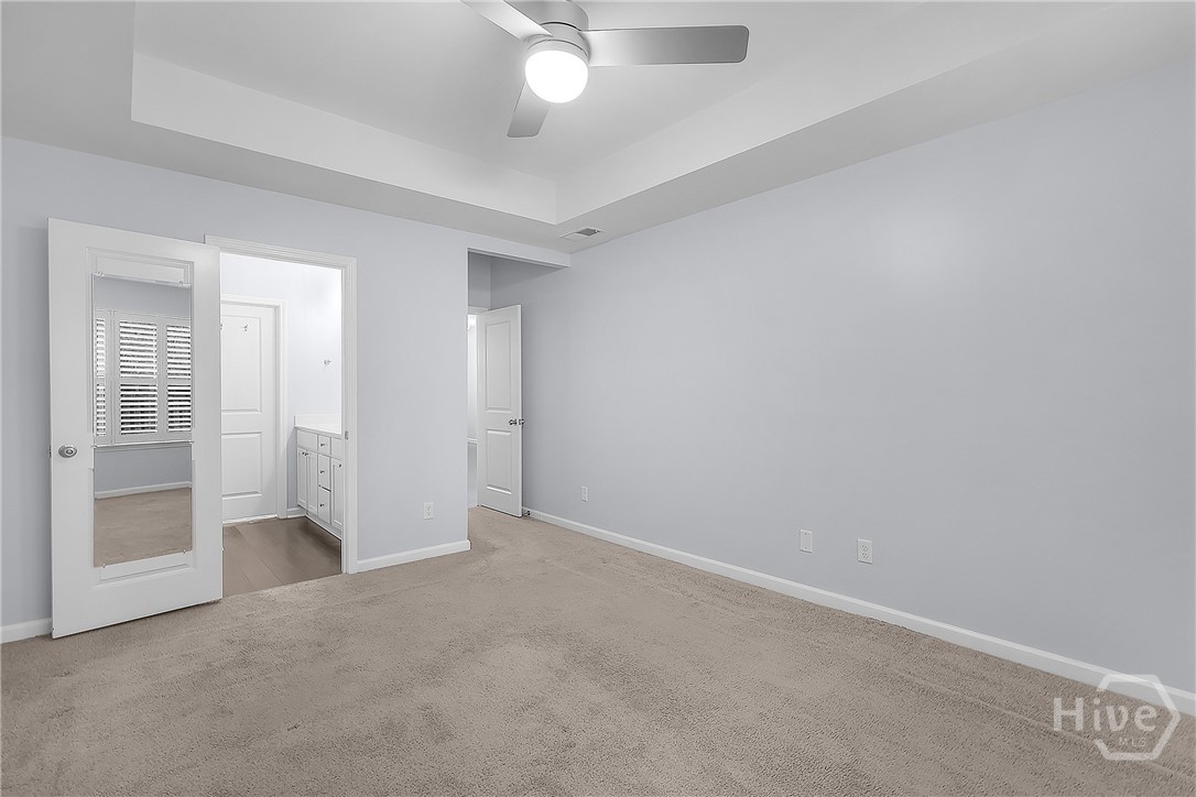 The primary suite provides a relaxing retreat with vaulted ceilings, plantation shutters, and ample space for a king-size bed and additional furnishings. Additional bedrooms are generously sized and versatile, suitable for guests, a home office, or hobbies. Bathrooms are well maintained with modern fixtures and finishes. A dedicated laundry area offers added convenience and storage.