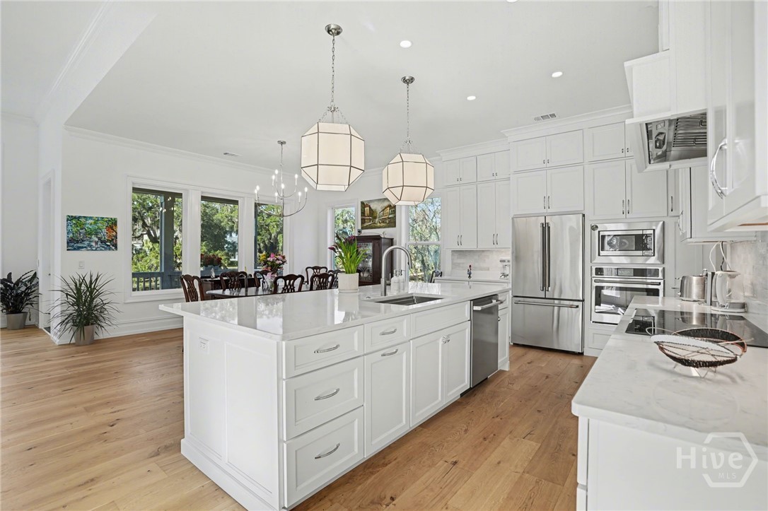 NEW CONSTRUCTION designed for buyers intentionally seeking refined, low-maintenance living with privacy and lagoon views. This Mediterranean-style patio residence offers thoughtfully planned spaces that prioritize quality, design, and ease over excess square footage or yard maintenance. Enter through custom iron gates and a covered walkway into a private brick courtyard — a defining feature that creates elegant outdoor living rarely found in larger homes. Inside, the open main living area centers around a chef’s kitchen with a large island, floor-to-ceiling cabinetry, and seamless flow to the family room, all oriented to maximize natural light and water views.