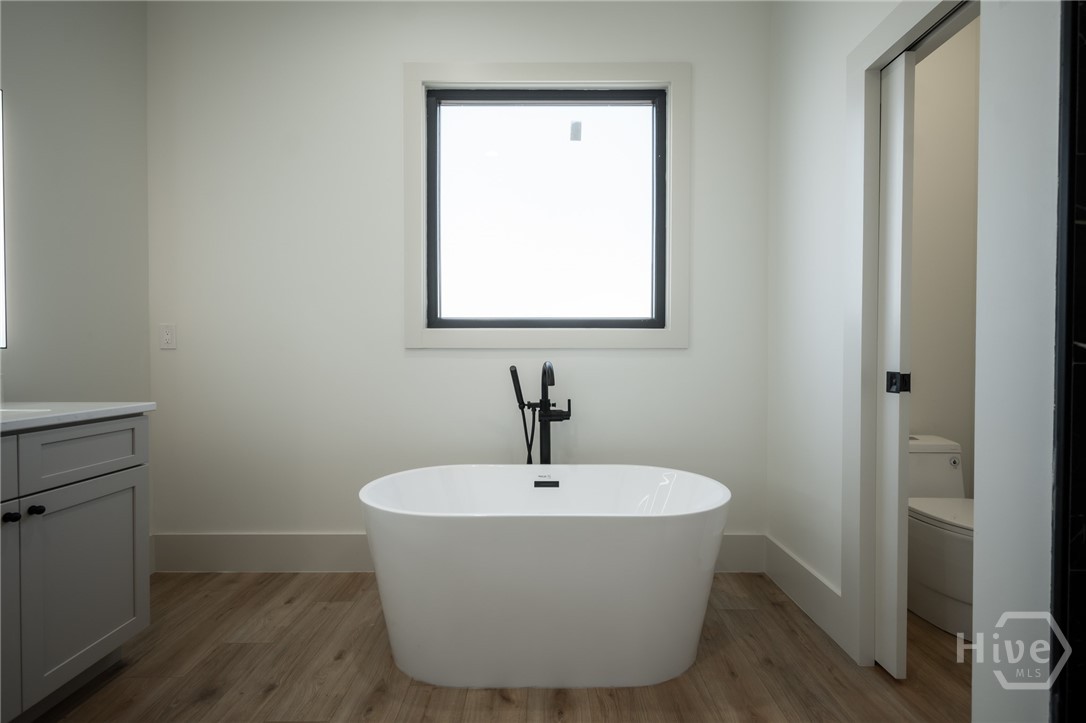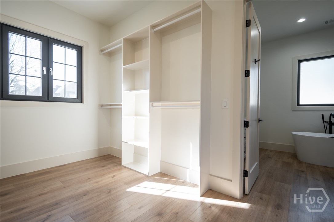 The private main-level primary suite includes a soaking tub, double vanity, and a walk-in closet with custom built-ins—your own peaceful retreat at the end of a long work day. Upstairs, a Jack-and-Jill bedroom layout, an additional bedroom, and a half bath provide excellent separation and versatility for family, guests, or home office needs. And a dream laundry room – this is the kind of space that makes even everyday routines feel luxurious.