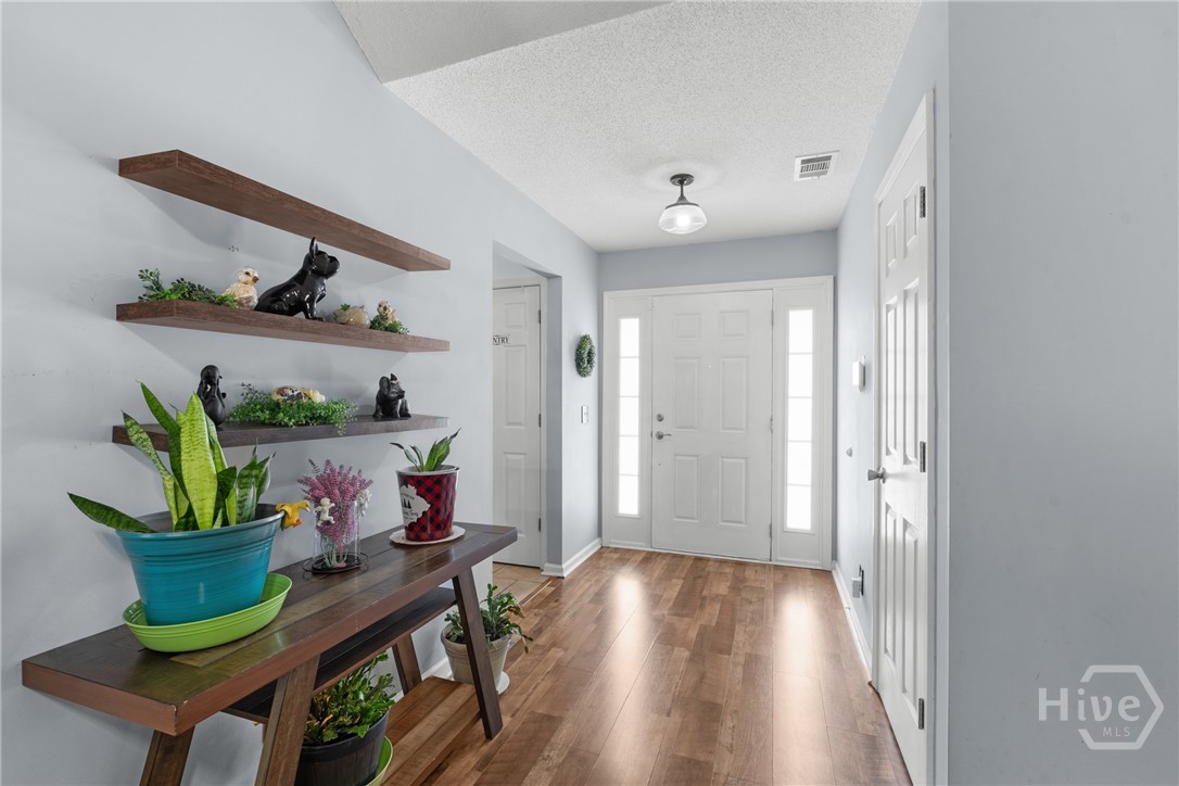 This well-maintained 3 bedroom, 2 bathroom home sits on a spacious 0.66 acre lot and reflects true pride of ownership, with many major upgrades already completed. Major improvements include a new roof installed in January 2026 with warranty, newer windows with warranty throughout the home (excluding the two spare bedrooms), gutters under warranty, and an HVAC system less than two years of age. The split floor plan offers both comfort and functionality, while the inviting front porch is a perfect spot to enjoy your morning coffee or relax at the end of the day. Inside, the kitchen provides generous cabinet and counter space, a pantry, and an additional pantry conveniently located in the hallway just off the kitchen for extra storage. The living room features a cozy wood-burning fireplace that creates a warm, welcoming feel and flows seamlessly into the dining area with peaceful views of the backyard. The primary bedroom offers a tray ceiling and a large walk-in closet, while the en suite bathroom includes a double vanity and a separate tub and shower with an newer upgraded soaking tub. Two additional spacious bedrooms share a full bathroom with a tub/shower combination. The laundry room leads directly into the two-car garage. Outside, the large backyard includes privacy fencing, a carport, and a 16×12 storage building, along with fruit trees including two apple trees and three peach trees that add both charm and enjoyment to the outdoor space. A wonderful addition to this home is the screened-in porch built in 2022, creating an ideal area to relax and enjoy outdoor living year-round. Conveniently located just 11 minutes from Springfield, 16 minutes from Rincon, and approximately 40 minutes from the city of Savannah, this home offers a prime location that balances everyday convenience with comfortable living.