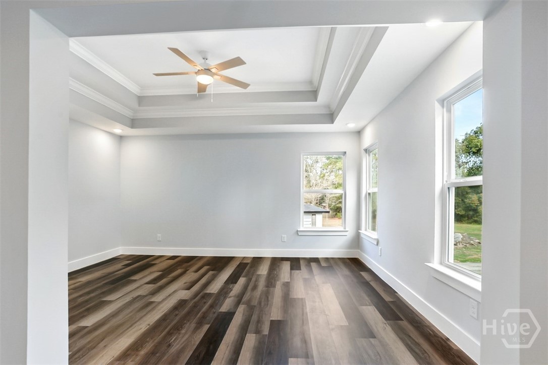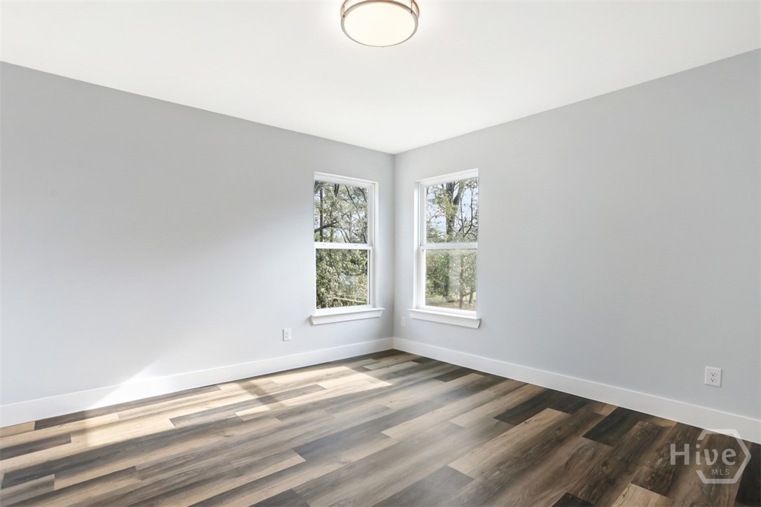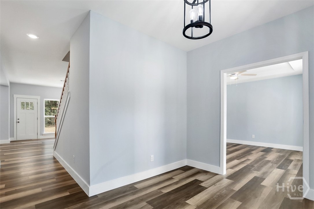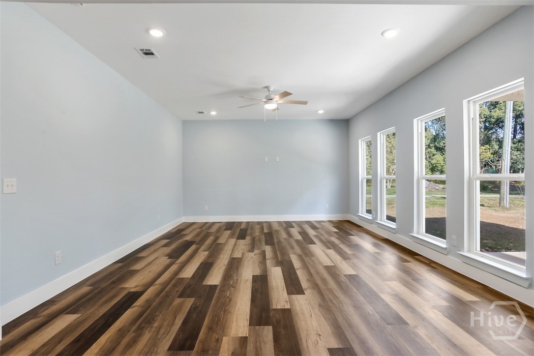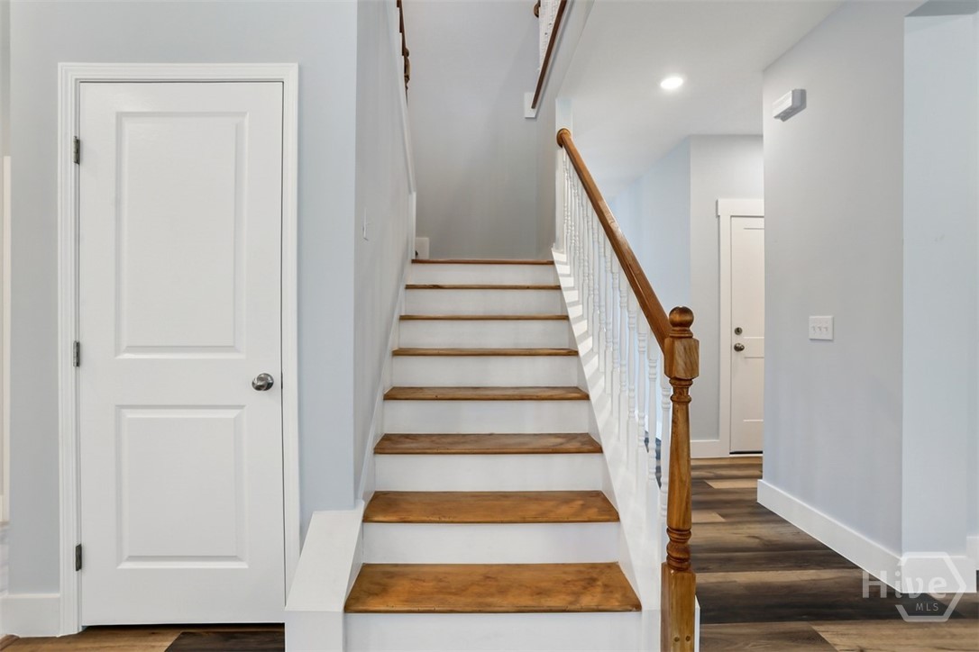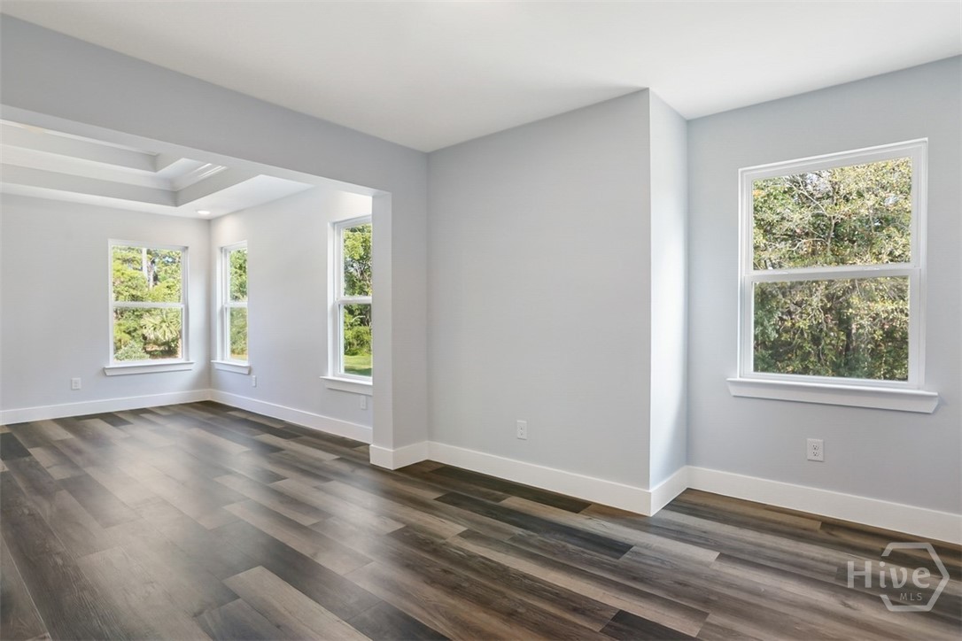 Offering 4 bedrooms, 2.5 bathrooms and over 2,670 square feet, the open-concept main floor is designed for both everyday living and entertaining. The light-filled family room flows seamlessly into the dining area and a beautifully appointed island kitchen featuring, Quartz countertops, Quality cabinetry, stainless steel appliances. A welcoming foyer opens to a formal dining/flex space, while a spacious mudroom and guest half bath add functionality and convenience. Primary suite is a private retreat with a sitting area, tray ceiling, large walk-in closet, and spa-style en-suite featuring soaring ceilings, double vanities, a freestanding soaking tub, and an oversized tiled walk-in shower. The backyard extends well beyond the wooded buffer, offering endless possibilities for outdoor living, entertaining, or future additions. Conveniently located just off Highway 80 in Pooler, minutes from shopping, dining, Gulfstream, Savannah/Hilton Head Airport, and I-95.