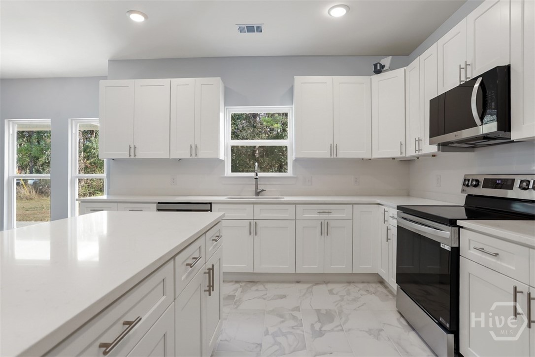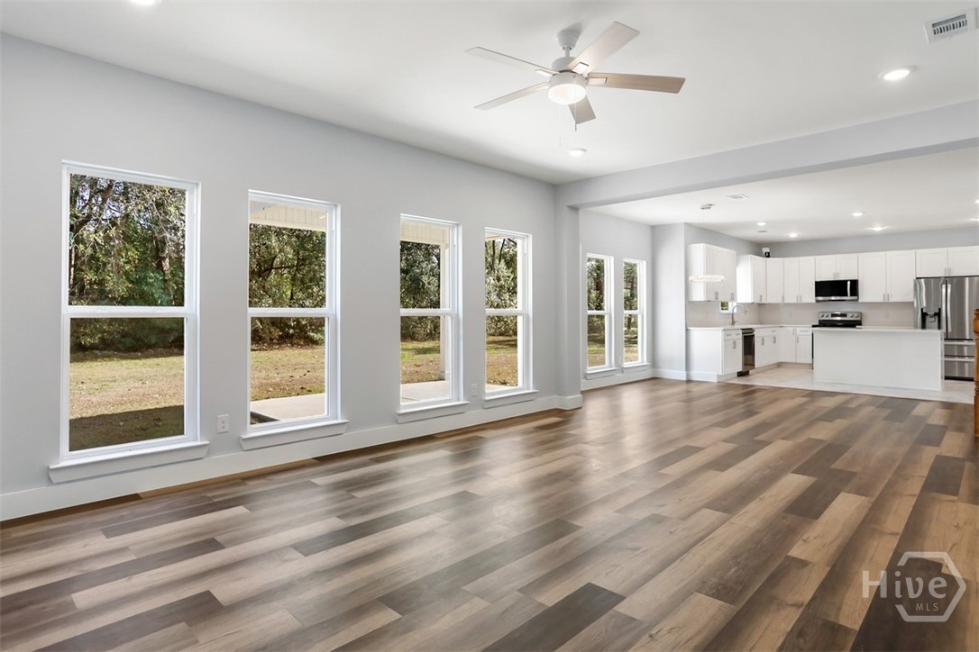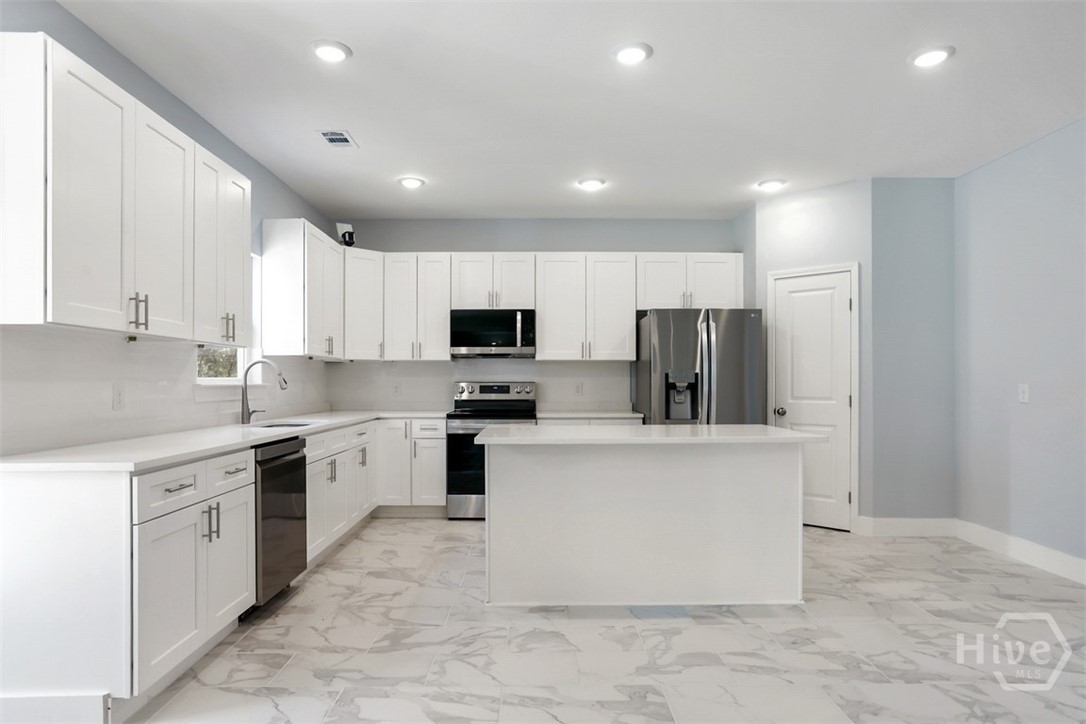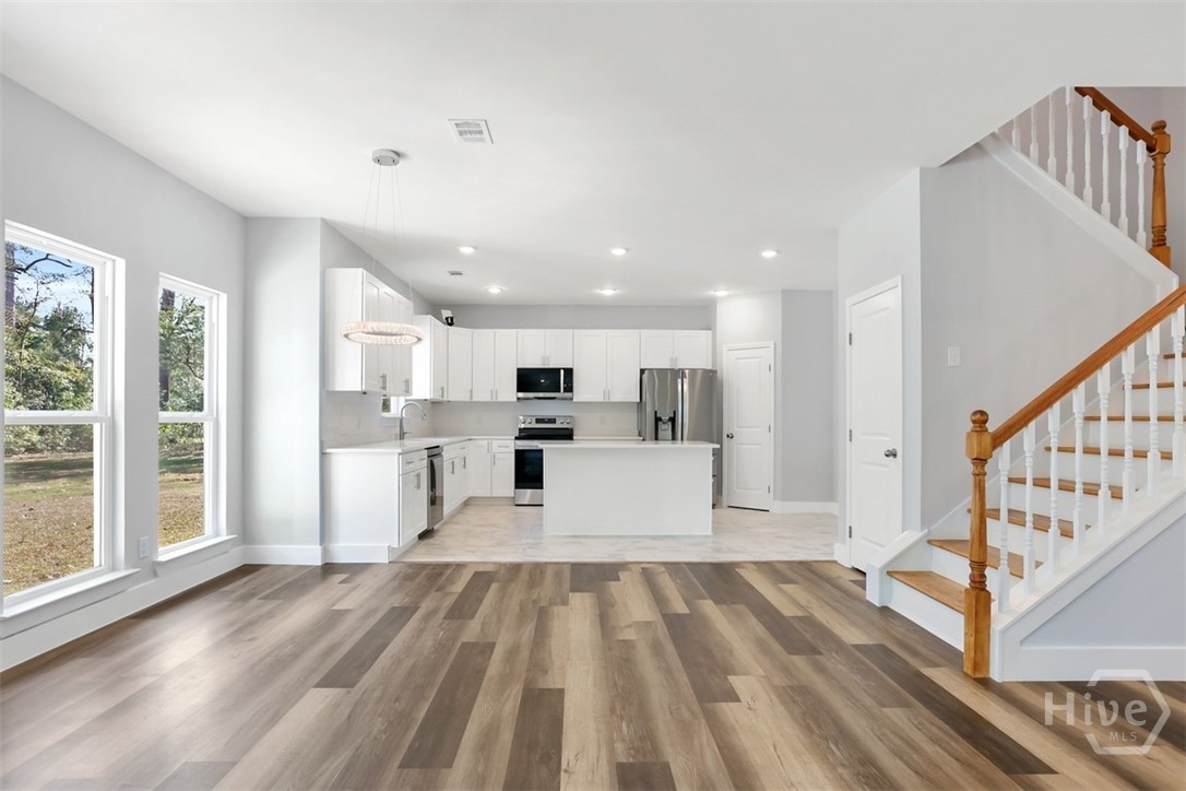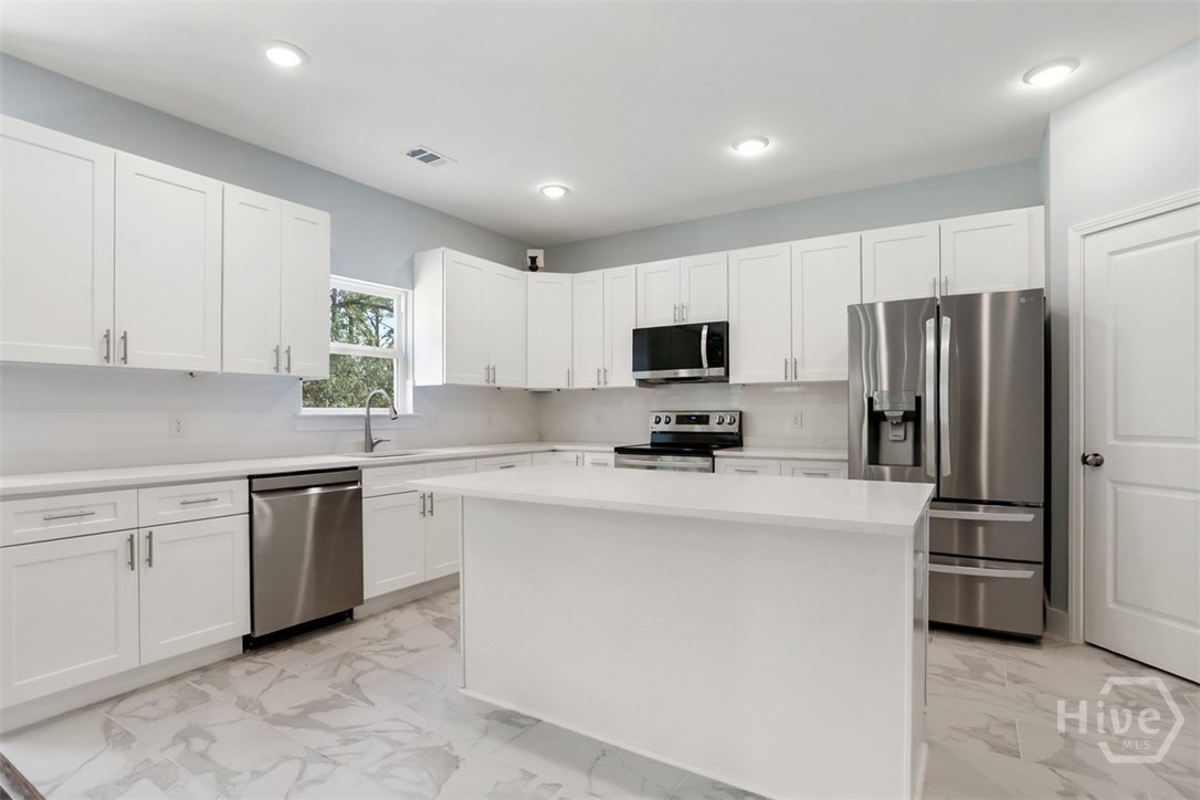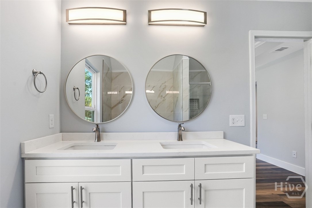 Offering 4 bedrooms, 2.5 bathrooms and over 2,670 square feet, the open-concept main floor is designed for both everyday living and entertaining. The light-filled family room flows seamlessly into the dining area and a beautifully appointed island kitchen featuring, Quartz countertops, Quality cabinetry, stainless steel appliances. A welcoming foyer opens to a formal dining/flex space, while a spacious mudroom and guest half bath add functionality and convenience. Primary suite is a private retreat with a sitting area, tray ceiling, large walk-in closet, and spa-style en-suite featuring soaring ceilings, double vanities, a freestanding soaking tub, and an oversized tiled walk-in shower. The backyard extends well beyond the wooded buffer, offering endless possibilities for outdoor living, entertaining, or future additions. Conveniently located just off Highway 80 in Pooler, minutes from shopping, dining, Gulfstream, Savannah/Hilton Head Airport, and I-95.