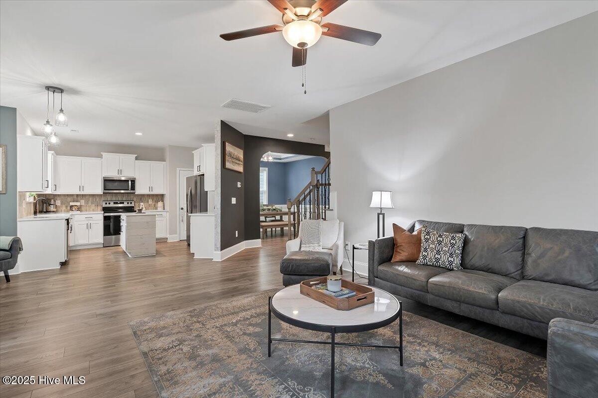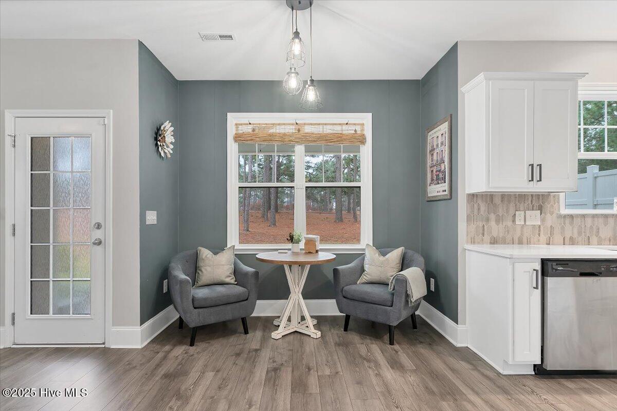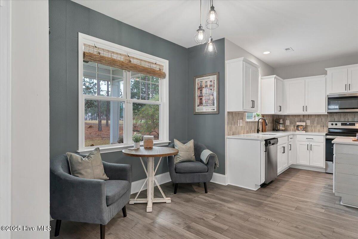 Welcome to 138 Warren Lake Rd, located in the highly sought-after Legacy Lakes golf course community in Moore County. This spacious home offers over 2,700 square feet of well-designed living space, featuring 4 bedrooms plus bonus, and 2.5 baths spread out over 3 levels. The main level of the home starts off with a flex/office space, dedicated formal dining room, and open concept kitchen and livingroom combination, including a breakfast nook. Upstairs, you will find the primary suite, 3 additional bedrooms, with the bonus room (which can act as a 5th bedroom) located on the 3rd level. This well built craftsman home is enhanced with unique features for character and contrast, such as patterned accent walls, and a rustic sliding barn door in the primary bathroom. Set on the scenic 6th fairway of Legacy Links, a championship Nicklaus original design 18-hole course, and nestled in a community with lakes, and walking trails. Golf membership is separate from the homeowners association. Regular HOA dues include outstanding community amenities, with a clubhouse, swimming pool, tennis courts, and gym. Enjoy the perks that come with resort style living while being just minutes from downtown Aberdeen, Southern Pines, Pinehurst, shopping, dining, and Fort Bragg. With its well manicured common grounds including sidewalks, Legacy Lakes is a welcoming, vibrant community that has a gated feel. McKee Finley Craftsman floor plan.