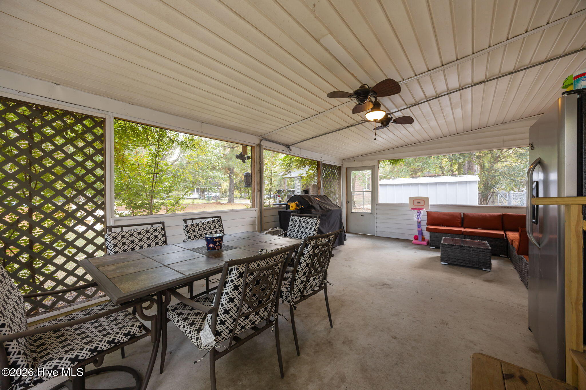 Step outside to a huge fenced backyard with two conveying storage sheds and a large screened patio—perfect for enjoying your morning coffee or evening unwind.