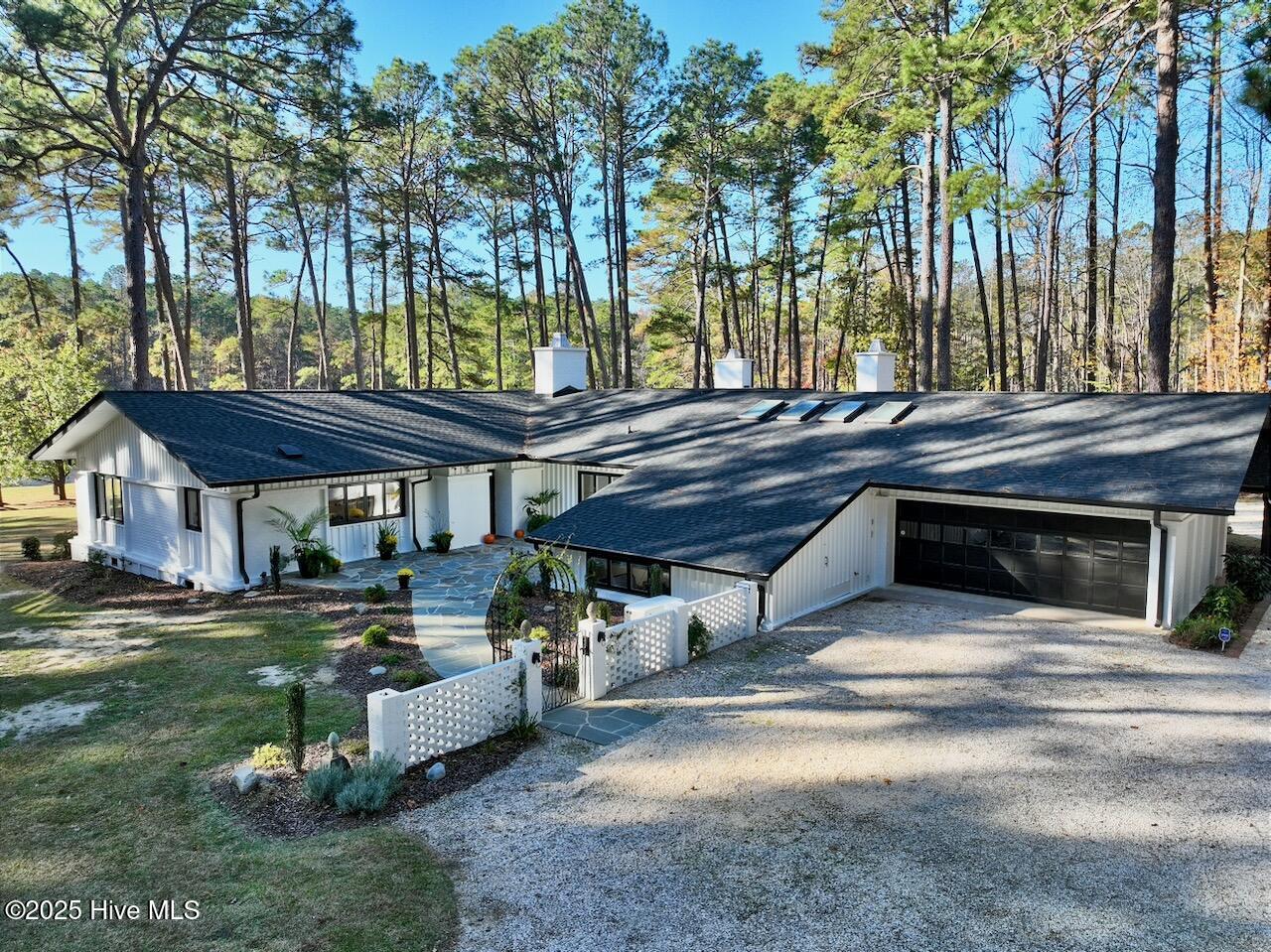 Follow the winding, tree-lined driveway to discover a breathtaking lakeside retreat nestled in the heart of Southern Pines horse country. This sprawling mid-century modern estate embodies the perfect blend of architectural elegance, natural beauty, and refined country living.
