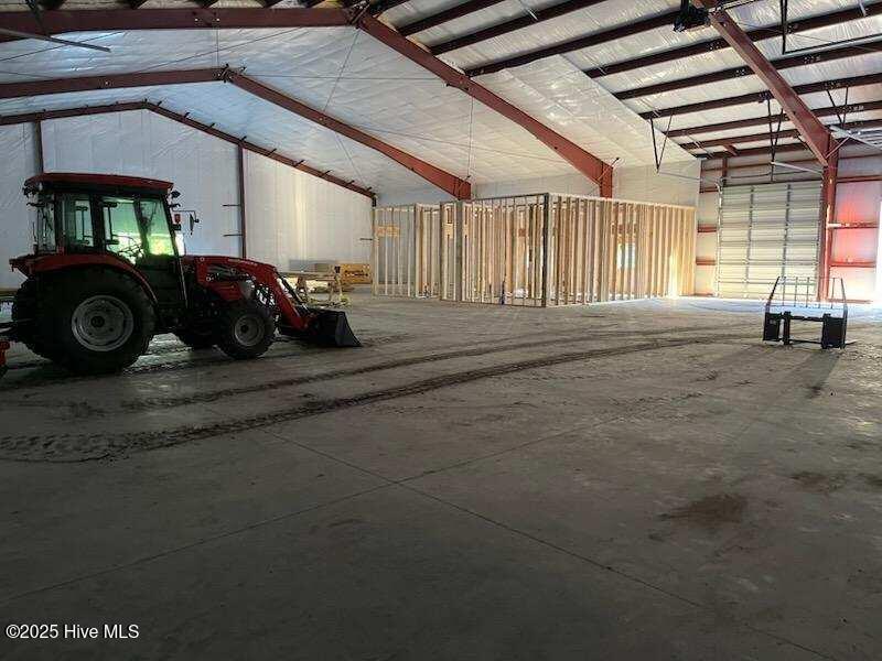 A 1,700 square-foot partially finished sheetrocked second floor provides valuable additional storage or expansion potential, with plumbing already stubbed for an additional restroom if built out.