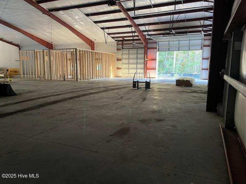 The property offers a flexible layout ideal for showroom and retail operations. The main level includes two public restrooms, five large bay doors (three with automatic openers) ranging in size from 10’x12′ to 16’x16′, and generous open floor space for workspace or display.