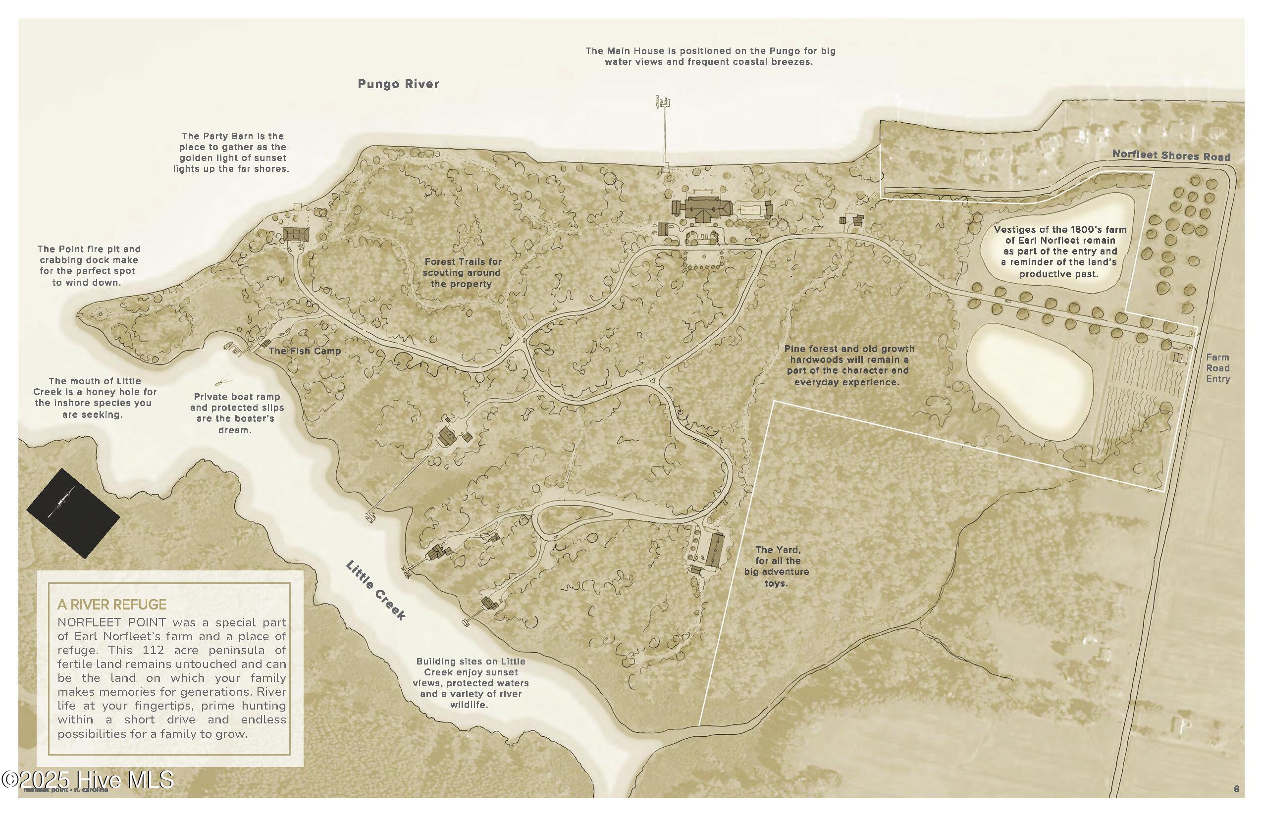 Extraordinary 112-acre waterfront property on the Pungo River with over 3,000 feet of frontage and direct access to the Intracoastal Waterway and Pamlico Sound. Enjoy breathtaking views, private gated access, deep water on Little Creek, and existing permits for a boat ramp, five slips, and bulkhead. Soils support multiple septic sites, offering potential for an incredible private compound or 6-12 large waterfront lots. Minutes from historic Belhaven, with outstanding fishing, hunting, and coastal recreation.