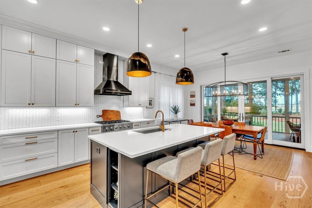 Waterfront, well-appointed, custom home built in 2022 with Vernon River views tucked into a private, secluded setting. Enjoy a quiet refuge from the city traffic, yet just a short commute to Downtown Savannah and 5 minutes to Savannah Country Day School. 120 ft. of frontage on the Vernon River, private dock (with power), and no required flood insurance. Inside, discover the curated, high-end finishes including Bosch appliances, chefs kitchen with butlers pantry, and whole home coverage generator. Double sliding doors open to the huge screened rear porch, offering seamless indoor/outdoor riverfront living. The first floor primary suite, dedicated home office with a view, and mud/laundry rooms add convenience, while upstairs provides plentiful room for guests. Another large suite upstairs, with separate sitting room and 3 closets. Wheelchair accessible, 1 bed/1 bath apartment with private entrance and elevator. Enjoy Historic Vernonburg, a Summer retreat of Savannah for over 200 years.