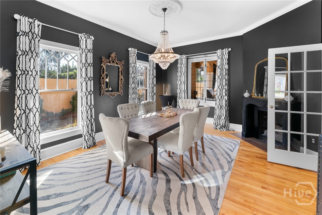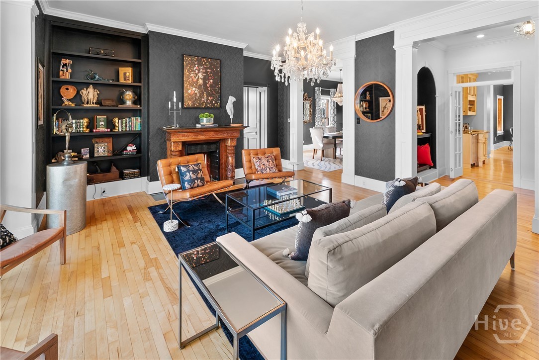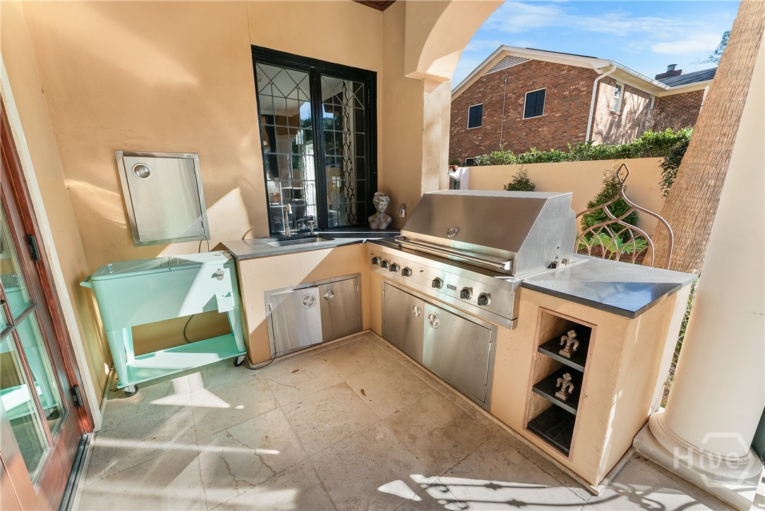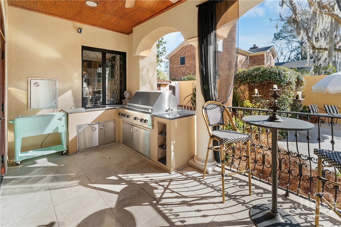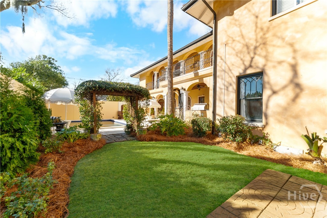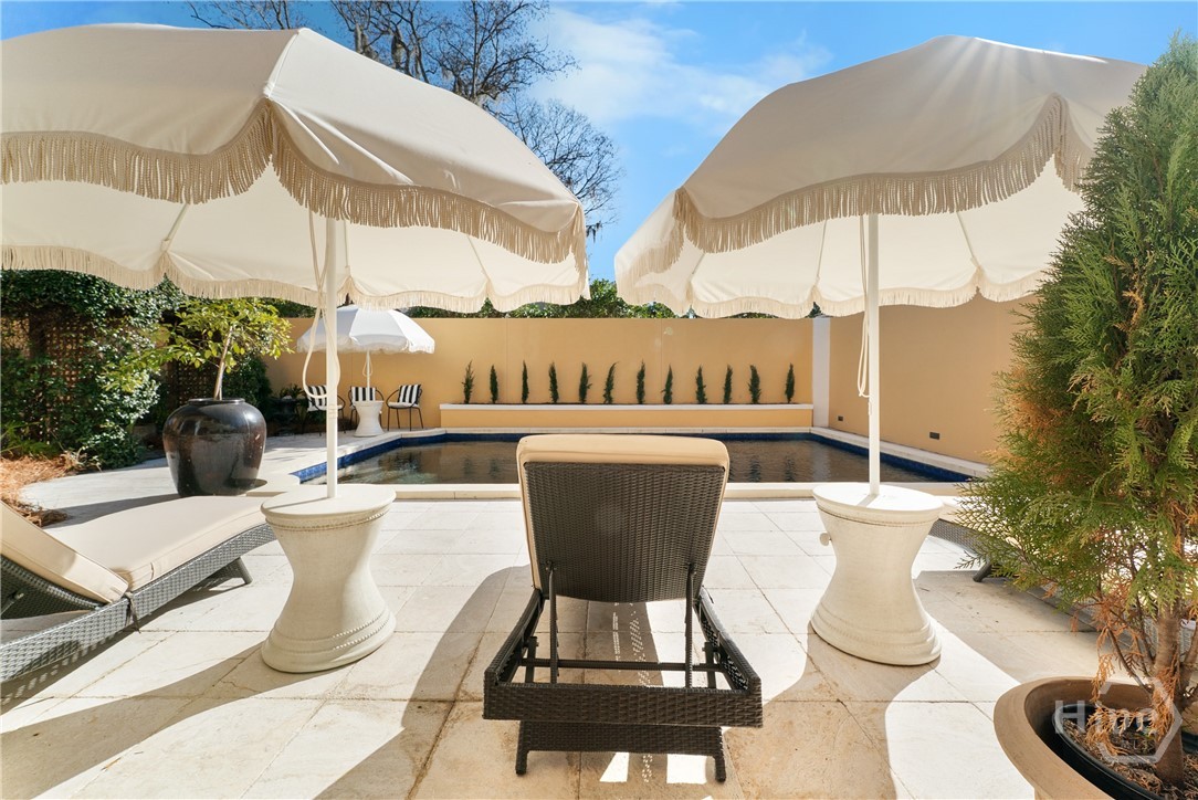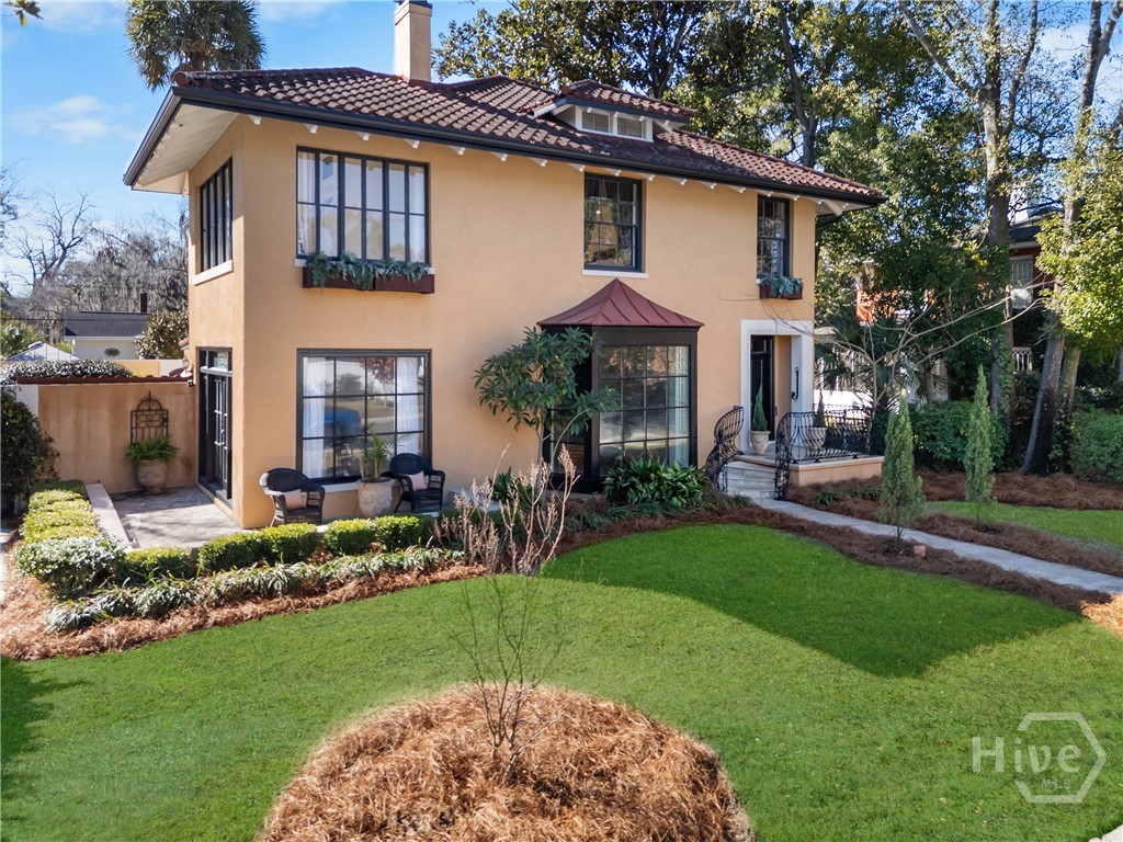 Nestled in the heart of prestigious Ardsley Park in Historic Savannah, this extraordinary Mediterranean-style residence is a rare offering—rich in authentic architectural detail and timeless sophistication. Original hardwood floors, fireplaces, windows, and classic cast-iron railings set the tone for a home that blends historic character with refined modern luxury. A gracious entrance foyer welcomes you inside, leading to a beautifully appointed Parlor designed for both formal entertaining and relaxed everyday living. A private office with tasteful wainscotting and storage abuts the parlor. The gourmet kitchen is a true showpiece, featuring a large island with custom Acacia wood countertops and pendant lighting above, a gas cooktop, wet bar with wine cooler, Sub-Zero refrigerator, and warm copper accents throughout. There is both Formal Dining with an original fireplace and a casual dining area adjacent to the kitchen, which flows effortlessly into a generous family room with a large stone fireplace and lots of custom built-ins and cabinetry. Step outside to discover a private courtyard—luxuriously landscaped and boasting an outdoor cooking/dining area-perfect for entertaining. The resort-style swimming pool offers a serene escape, enveloped in lush greenery and total privacy. Upstairs, the primary suite is a sanctuary -with an updated bath, fireplace and a primary closet that is nothing short of spectacular-perfect for showcasing a curated wardrobe and accessories. There are also 4 additional bedrooms complemented by 3 ensuite baths, providing comfort and privacy for family and guests alike. One bedroom has been transformed into a custom fitness studio with mirrored walls and equipped for aerial yoga, which adds a unique and elevated touch rarely found in homes of this caliber. Luxurious, distinctive, and impeccably designed, this Ardsley Park Estate offers an unparalleled opportunity to own a piece of Savannah History while enjoying the finest in modern living.