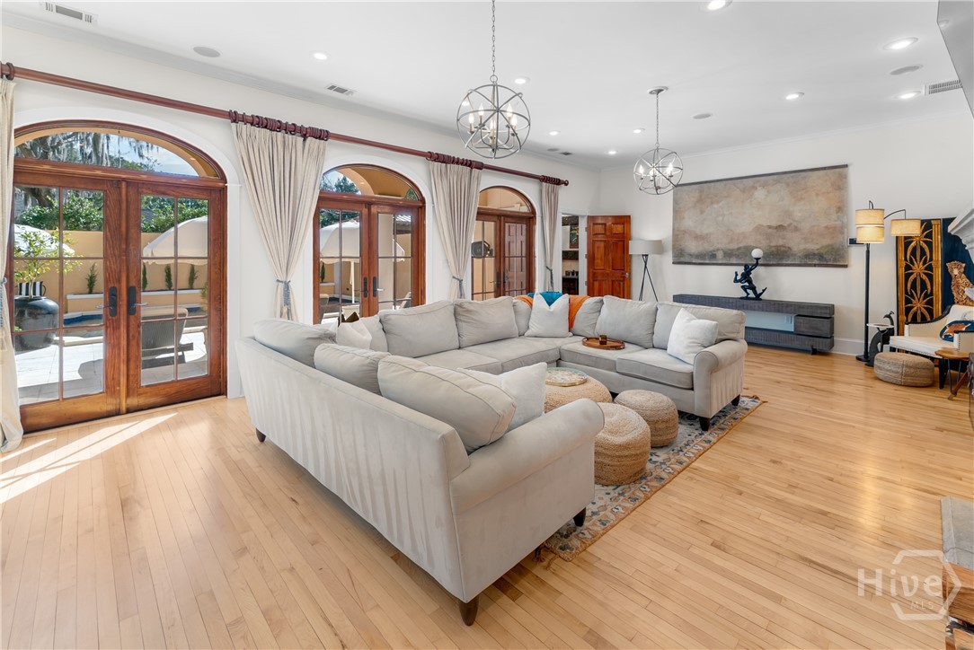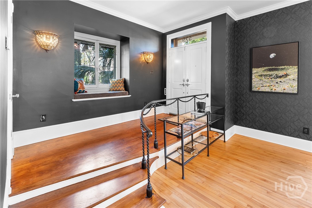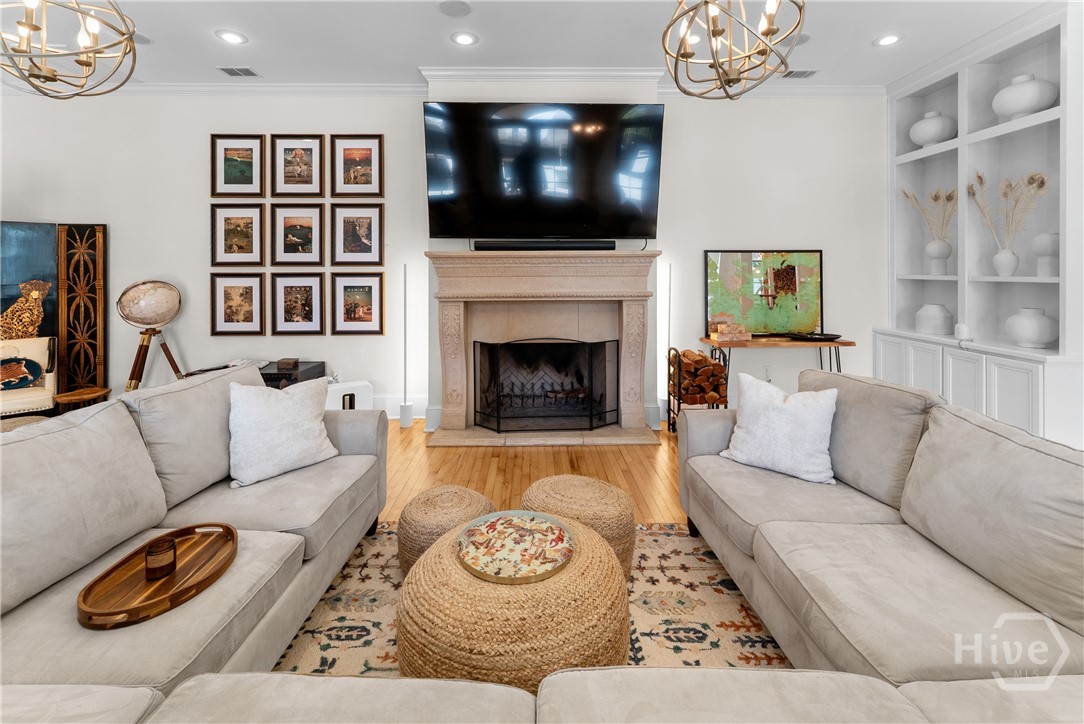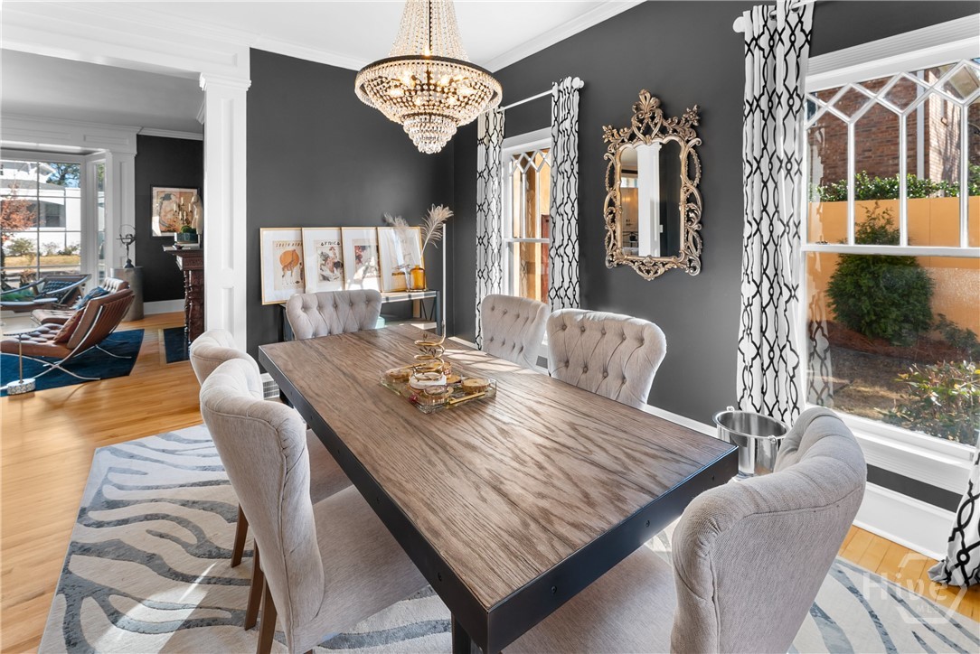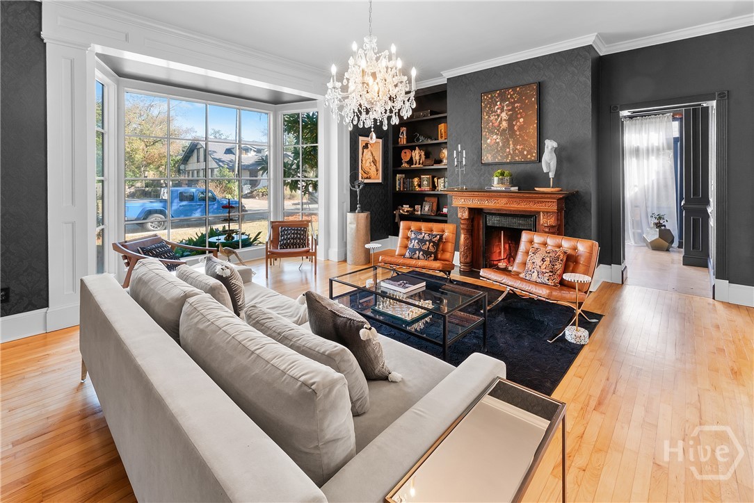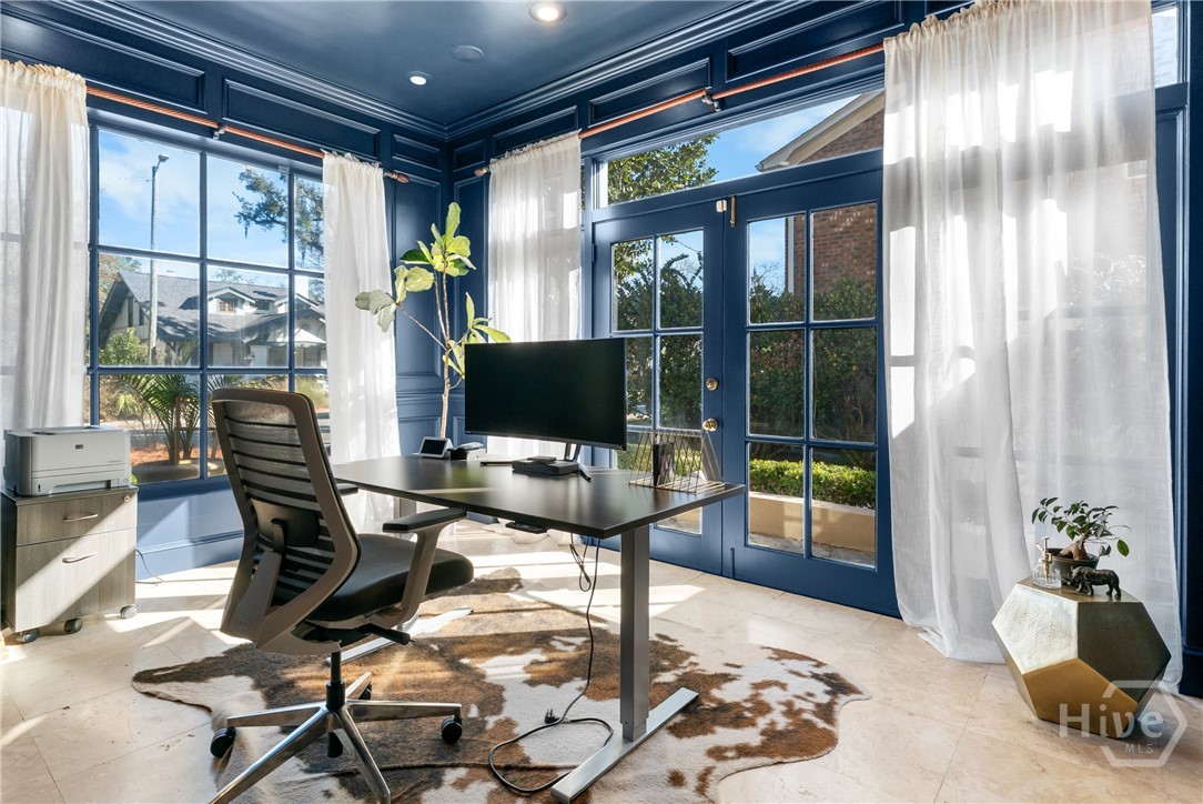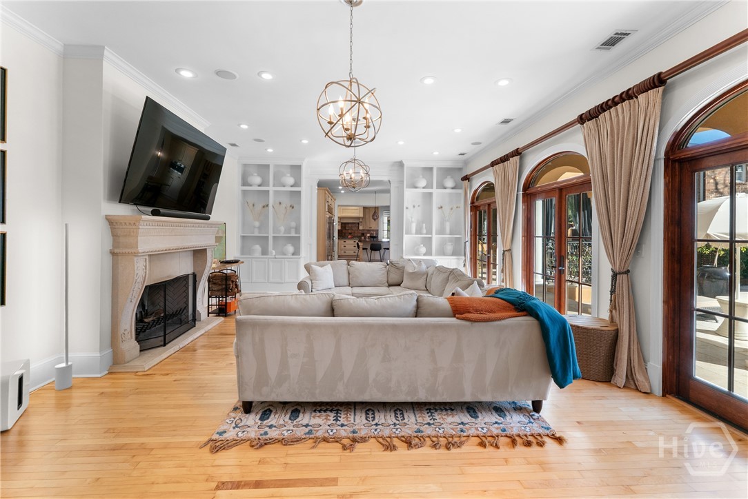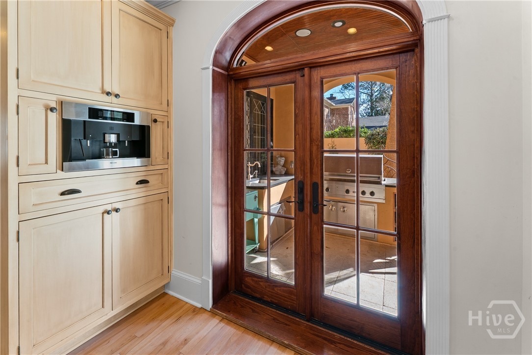 Nestled in the heart of prestigious Ardsley Park in Historic Savannah, this extraordinary Mediterranean-style residence is a rare offering—rich in authentic architectural detail and timeless sophistication. Original hardwood floors, fireplaces, windows, and classic cast-iron railings set the tone for a home that blends historic character with refined modern luxury. A gracious entrance foyer welcomes you inside, leading to a beautifully appointed Parlor designed for both formal entertaining and relaxed everyday living. A private office with tasteful wainscotting and storage abuts the parlor. The gourmet kitchen is a true showpiece, featuring a large island with custom Acacia wood countertops and pendant lighting above, a gas cooktop, wet bar with wine cooler, Sub-Zero refrigerator, and warm copper accents throughout. There is both Formal Dining with an original fireplace and a casual dining area adjacent to the kitchen, which flows effortlessly into a generous family room with a large stone fireplace and lots of custom built-ins and cabinetry. Step outside to discover a private courtyard—luxuriously landscaped and boasting an outdoor cooking/dining area-perfect for entertaining. The resort-style swimming pool offers a serene escape, enveloped in lush greenery and total privacy. Upstairs, the primary suite is a sanctuary -with an updated bath, fireplace and a primary closet that is nothing short of spectacular-perfect for showcasing a curated wardrobe and accessories. There are also 4 additional bedrooms complemented by 3 ensuite baths, providing comfort and privacy for family and guests alike. One bedroom has been transformed into a custom fitness studio with mirrored walls and equipped for aerial yoga, which adds a unique and elevated touch rarely found in homes of this caliber. Luxurious, distinctive, and impeccably designed, this Ardsley Park Estate offers an unparalleled opportunity to own a piece of Savannah History while enjoying the finest in modern living.