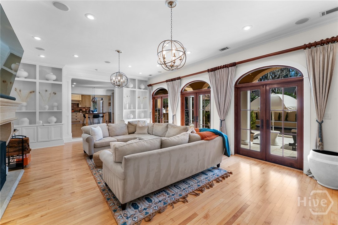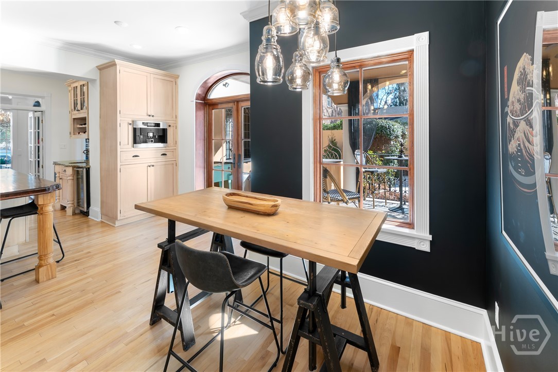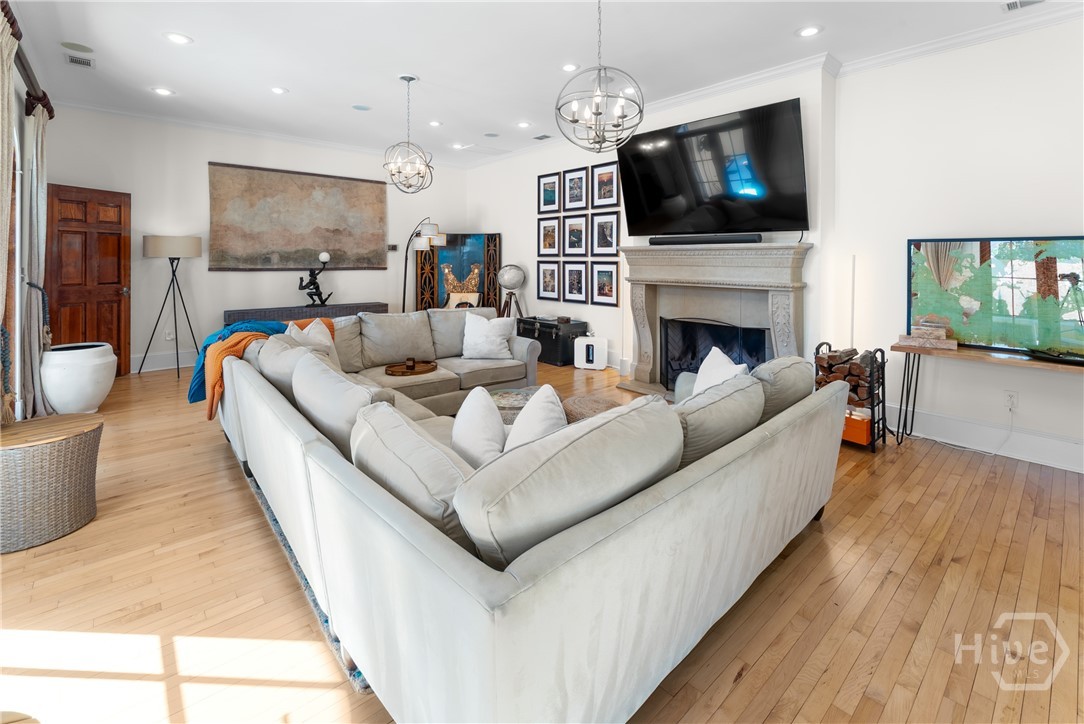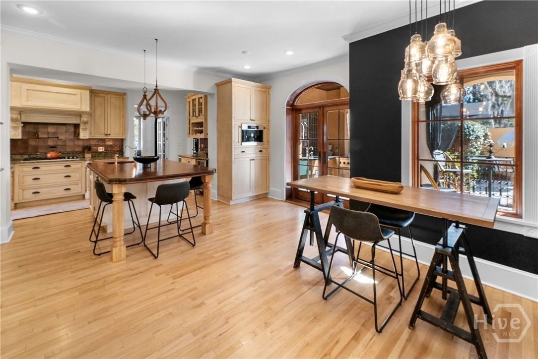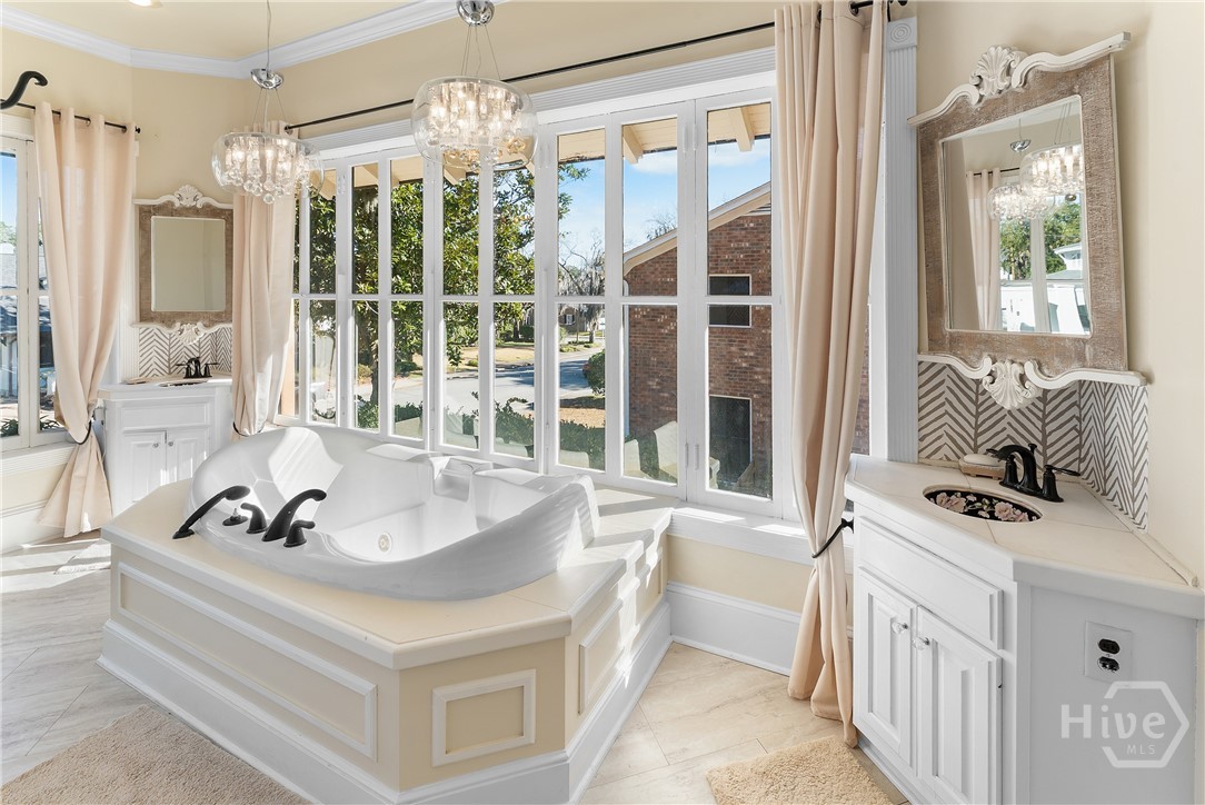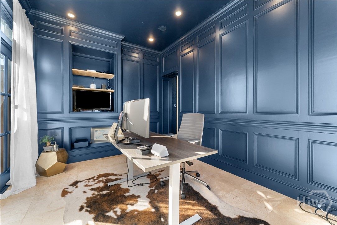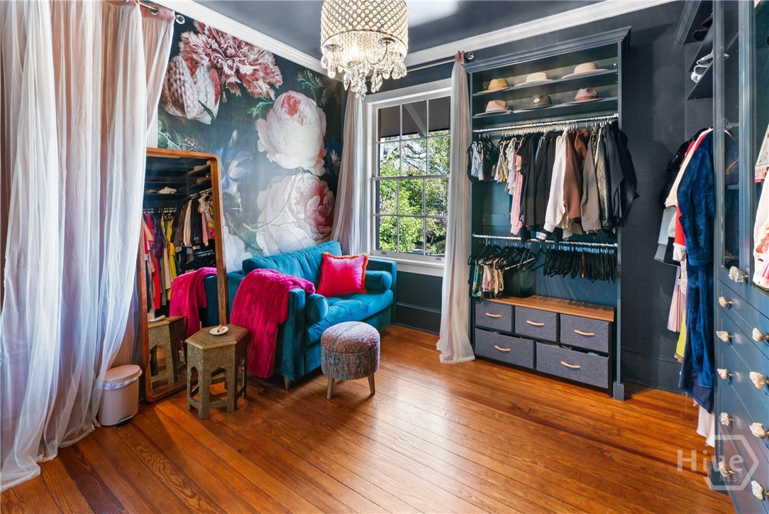 Nestled in the heart of prestigious Ardsley Park in Historic Savannah, this extraordinary Mediterranean-style residence is a rare offering—rich in authentic architectural detail and timeless sophistication. Original hardwood floors, fireplaces, windows, and classic cast-iron railings set the tone for a home that blends historic character with refined modern luxury. A gracious entrance foyer welcomes you inside, leading to a beautifully appointed Parlor designed for both formal entertaining and relaxed everyday living. A private office with tasteful wainscotting and storage abuts the parlor. The gourmet kitchen is a true showpiece, featuring a large island with custom Acacia wood countertops and pendant lighting above, a gas cooktop, wet bar with wine cooler, Sub-Zero refrigerator, and warm copper accents throughout. There is both Formal Dining with an original fireplace and a casual dining area adjacent to the kitchen, which flows effortlessly into a generous family room with a large stone fireplace and lots of custom built-ins and cabinetry. Step outside to discover a private courtyard—luxuriously landscaped and boasting an outdoor cooking/dining area-perfect for entertaining. The resort-style swimming pool offers a serene escape, enveloped in lush greenery and total privacy. Upstairs, the primary suite is a sanctuary -with an updated bath, fireplace and a primary closet that is nothing short of spectacular-perfect for showcasing a curated wardrobe and accessories. There are also 4 additional bedrooms complemented by 3 ensuite baths, providing comfort and privacy for family and guests alike. One bedroom has been transformed into a custom fitness studio with mirrored walls and equipped for aerial yoga, which adds a unique and elevated touch rarely found in homes of this caliber. Luxurious, distinctive, and impeccably designed, this Ardsley Park Estate offers an unparalleled opportunity to own a piece of Savannah History while enjoying the finest in modern living.