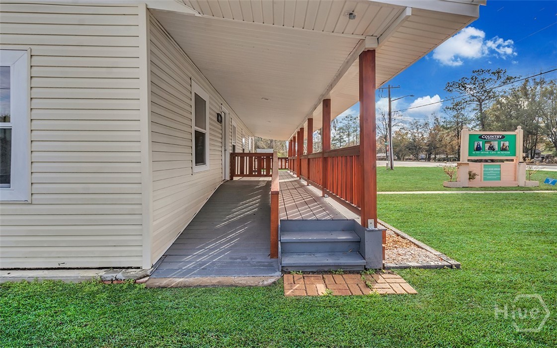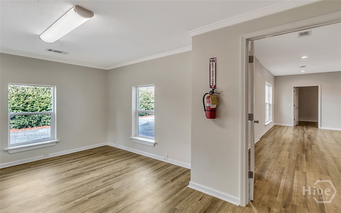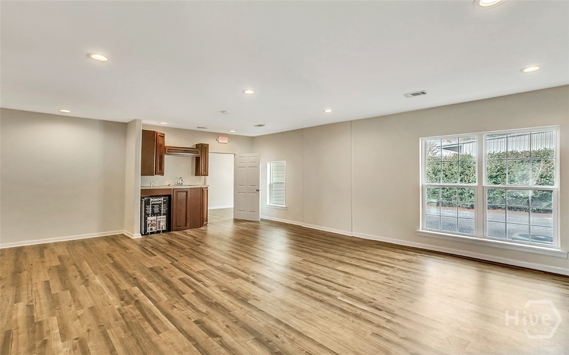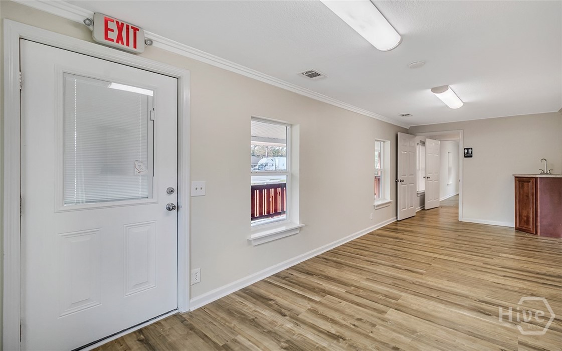 Prime opportunity to lease a renovated commercial building on a corner lot with over 115 foot of road frontage on Highway 80! With average traffic count of (+/-) 39,000 Vehicles Per Day per GDOT, this property is located just one minute from Pooler & surrounded by top tier national retailers such as Walmart, Home Depot, Lowes, Costco and Sam’s Club as well as close proximity to GA Ports Authority. Great opportunity for prospective tenants to lease in a rapidly growing area! Total bldg sqft is 2276 sqft. Two businesses can be in this location with a front lock off and a back lock off. Endless opportunities for an office space/s, salon, event space, retail & more. 5 Entrances/Exits, 3 bathrooms, 2 kitchenettes, 1 full kitchen. Next to the Donut Shop & across the street from the post office. CAM pays for trash, water & yard exterior maintenance