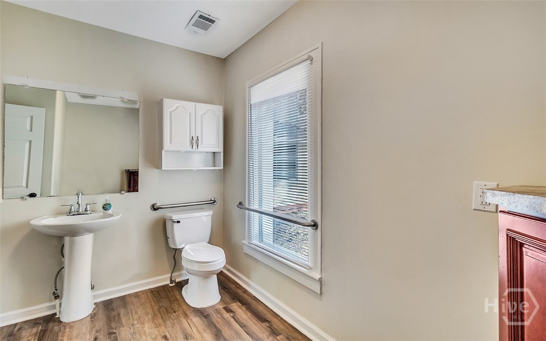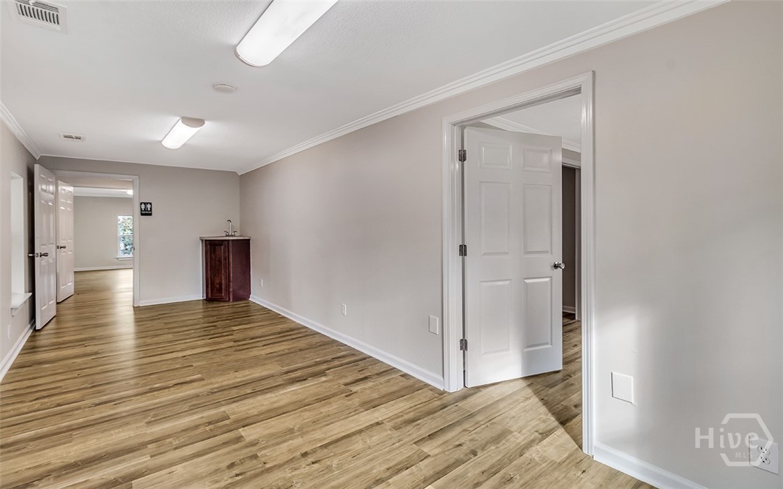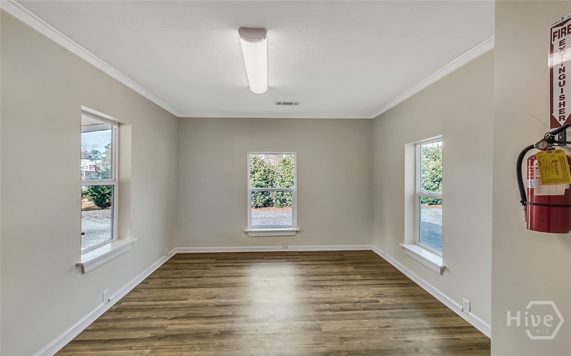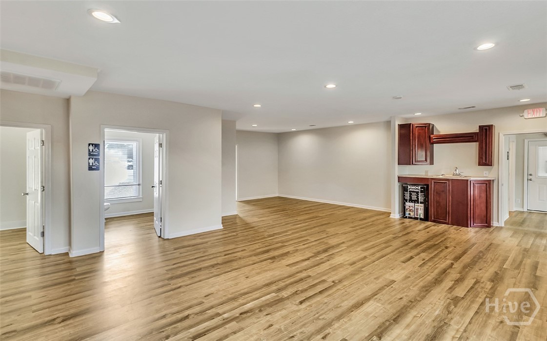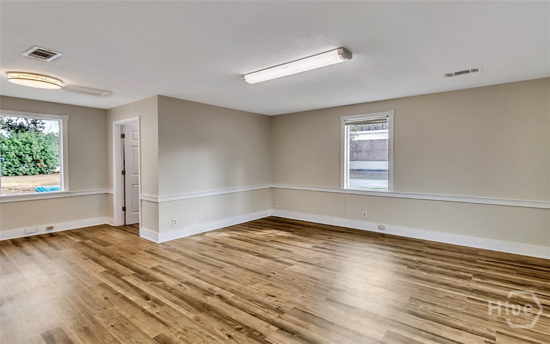 Prime opportunity to lease a renovated commercial building on a corner lot with over 115 foot of road frontage on Highway 80! With average traffic count of (+/-) 39,000 Vehicles Per Day per GDOT, this property is located just one minute from Pooler & surrounded by top tier national retailers such as Walmart, Home Depot, Lowes, Costco and Sam’s Club as well as close proximity to GA Ports Authority. Great opportunity for prospective tenants to lease in a rapidly growing area! Total bldg sqft is 2276 sqft. Two businesses can be in this location with a front lock off and a back lock off. Endless opportunities for an office space/s, salon, event space, retail & more. 5 Entrances/Exits, 3 bathrooms, 2 kitchenettes, 1 full kitchen. Next to the Donut Shop & across the street from the post office. CAM pays for trash, water & yard exterior maintenance