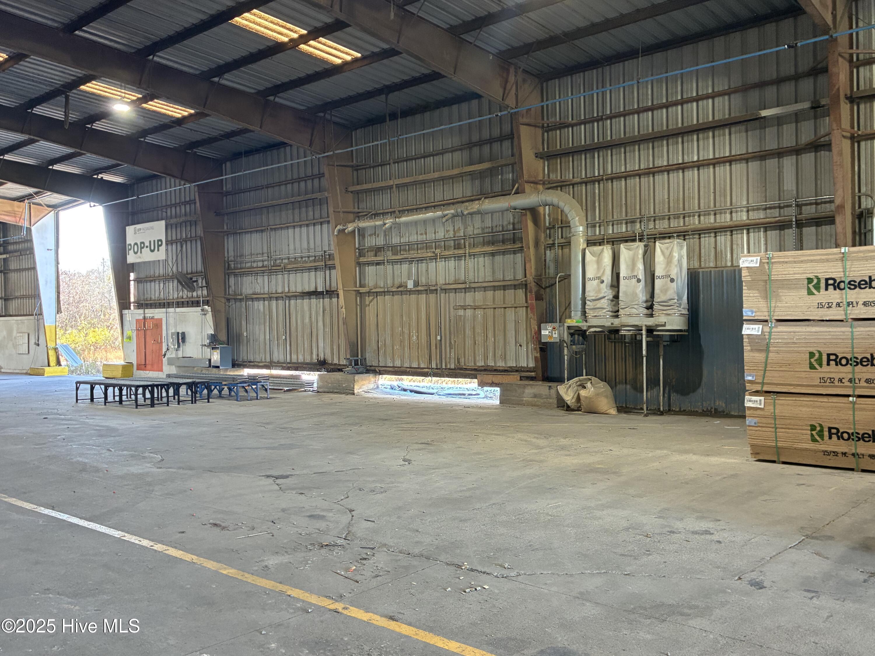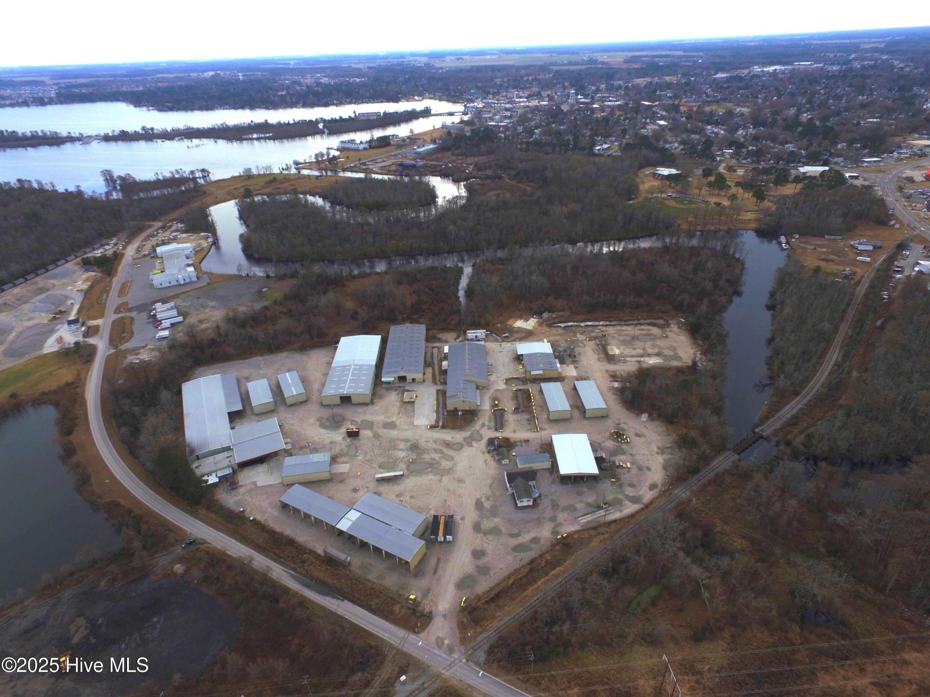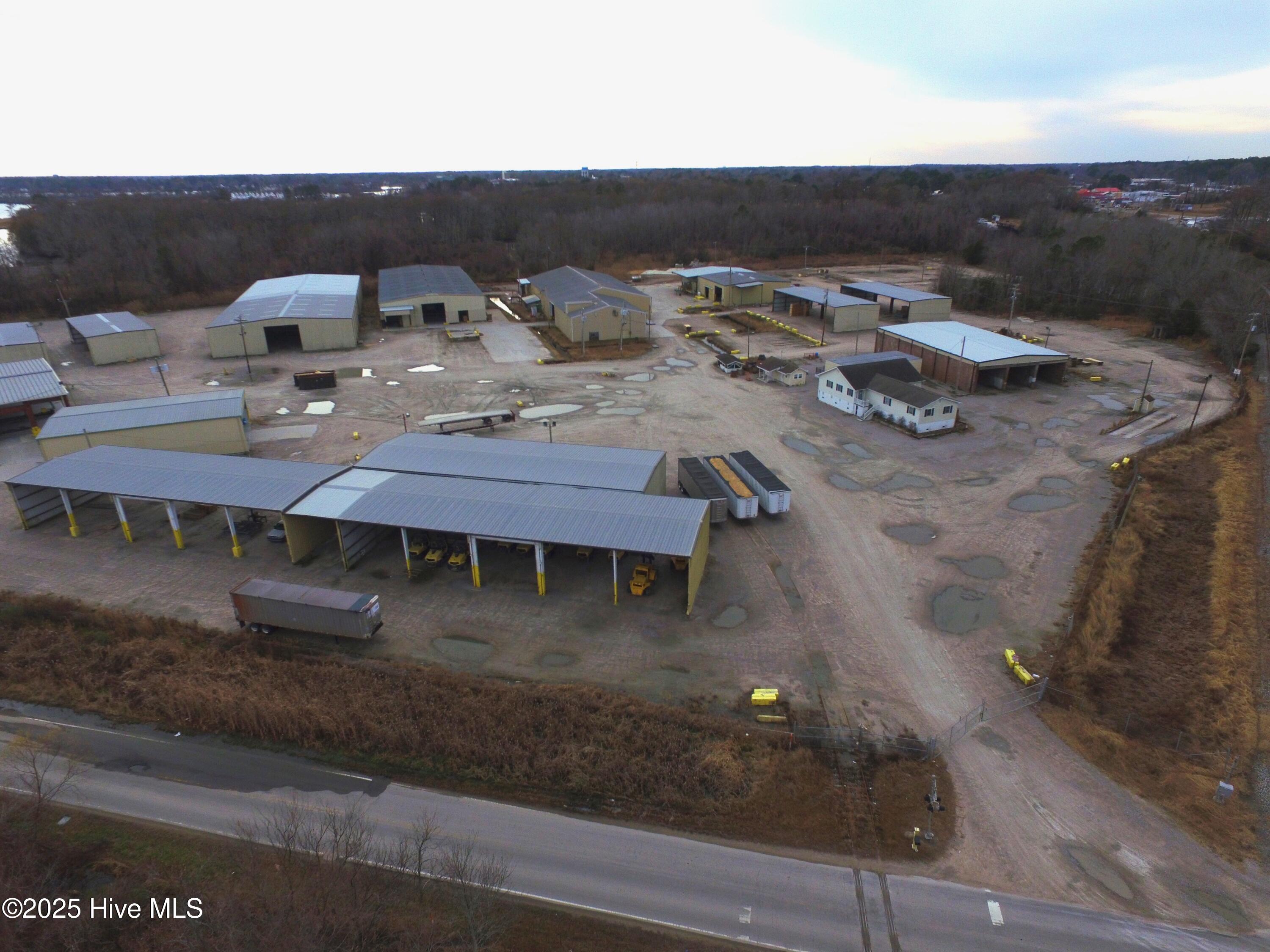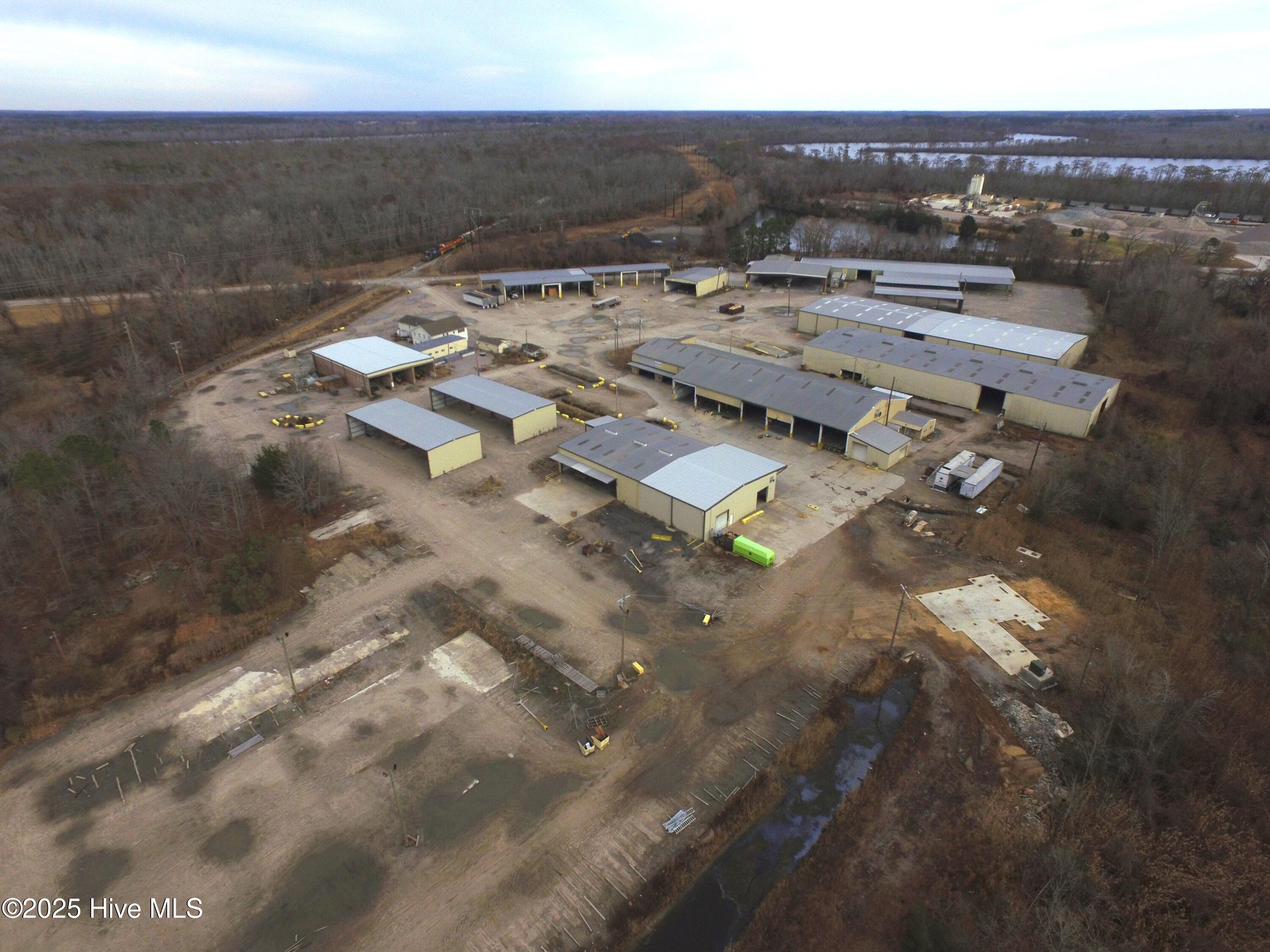 Turnkey Lumber manufacturing facility for sale in Elizabeth City with use restriction for wood treatment. Subject parcel is 33.72 acres with roughly +/- 20 acres developed and usable zoned I-2 and a 1AC parcel zoned R-15 across Knobbs Creek. Very heavy duty 3 phase 480 amp electrical service, central sewer, 5,040 sq ft of office and breakroom, 166,215 square feet of metal structures with metal roofs, all replaced/repaired or renovated in 2020. Railroad track adjacent on active railroad track with active spur on the property, and river frontage with a history of importing and exporting via barges. Detailed inventory of building and structure sizes, construction (0 walls under roof up to 4 walls), year built, foundation (concrete vs asphalt), and values available in appraisal report in documents. This site employed 140 people at one point in the recent past.