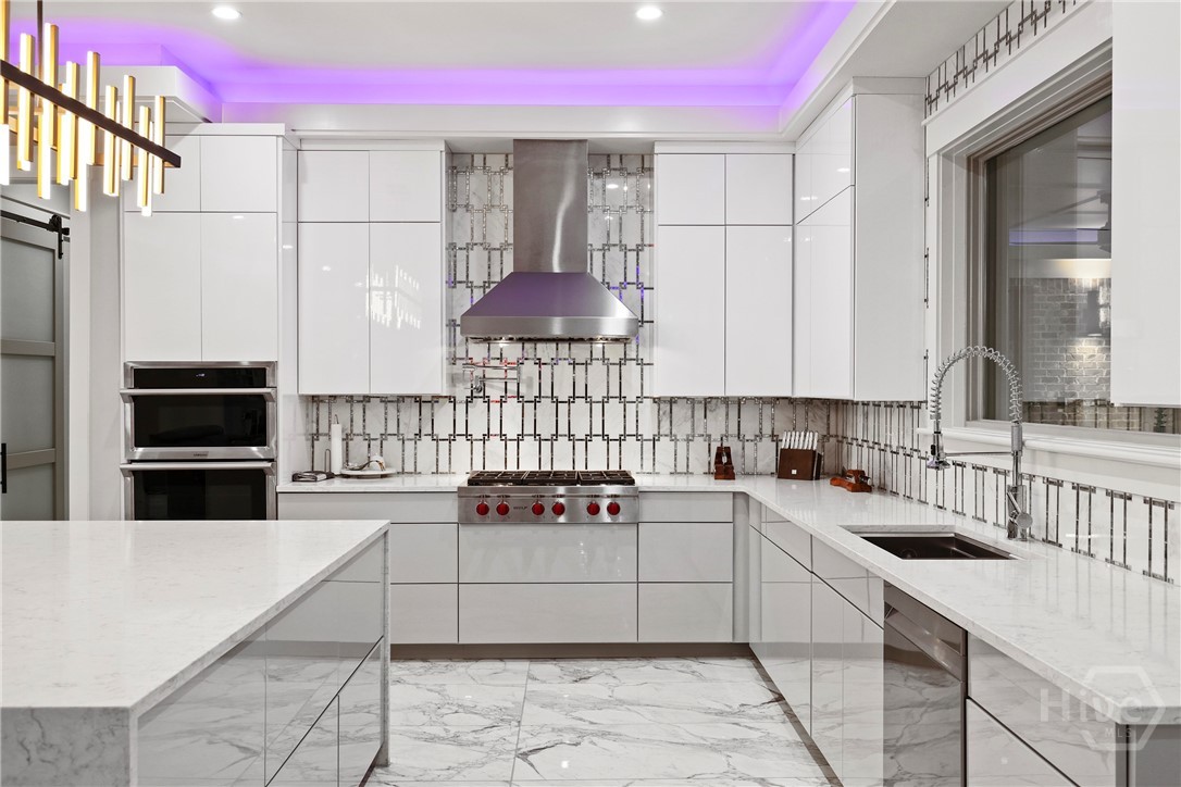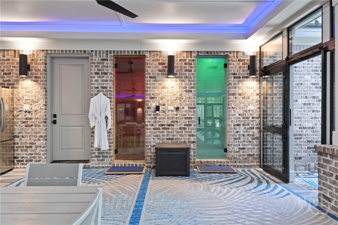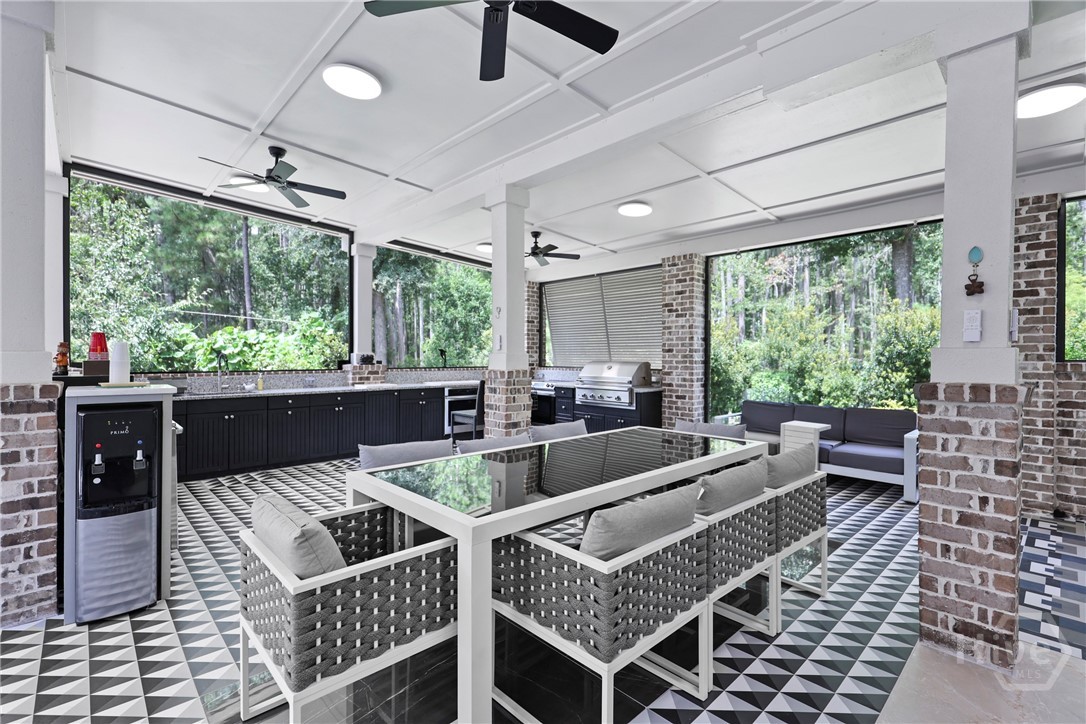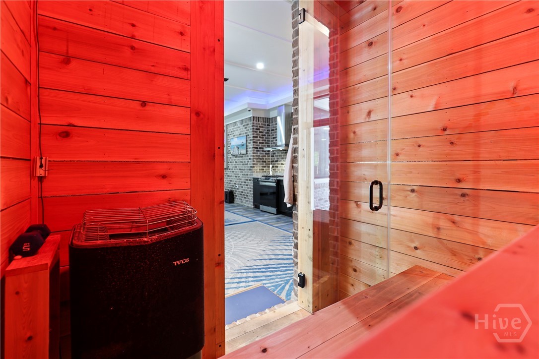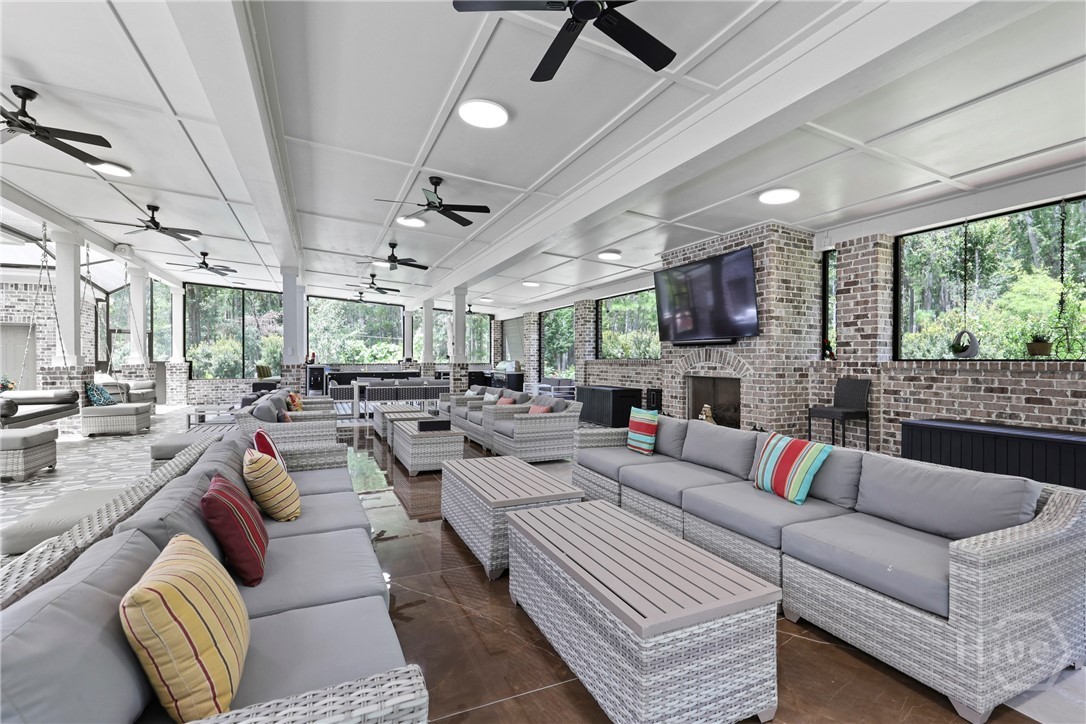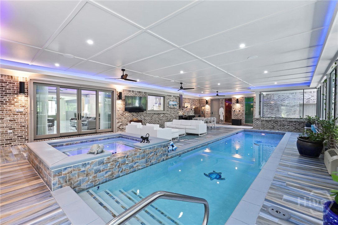 Lowcountry masterpiece built to commercial standards in the gated & highly desirable Savannah Quarters. No expense has been spared in creating this truly one of a kind residence. All brick home features 6 bed, 9 bathrooms. Also features 3 master suites. 3 full kitchens plus a full outdoor kitchen. Indoor saltwater pool and jacuzzi with commercial steam room & sauna room. Oversized double lot on cul de sac that backs up to private woods. 3200 sq ft screened in back porch with outdoor kitchen that seats 65 comfortably. All outdoor swings, outdoor furniture & electronics convey in purchase. Cedar wood walls. Granite floors. Smart home. 4 tankless hot water heaters. EV charger. 24 security cameras. 150″ Projector & 10 (2025) TVs. 400 ft well. NEW 07/25-Screened in back porch & beautiful new flooring. Also, new 19.65 KW solar panels system & Tesla power wall for power storage. 3 car/1cart garage. Fire pit. Three active food to table gardens. Professionally landscaped yard with 360 degree sidewalk. Generac generator. Neighborhood amenities include pools, Greg Norman golf course (extra fee), dining, workout, tennis, etc. Feature sheet and 3d tour available.
