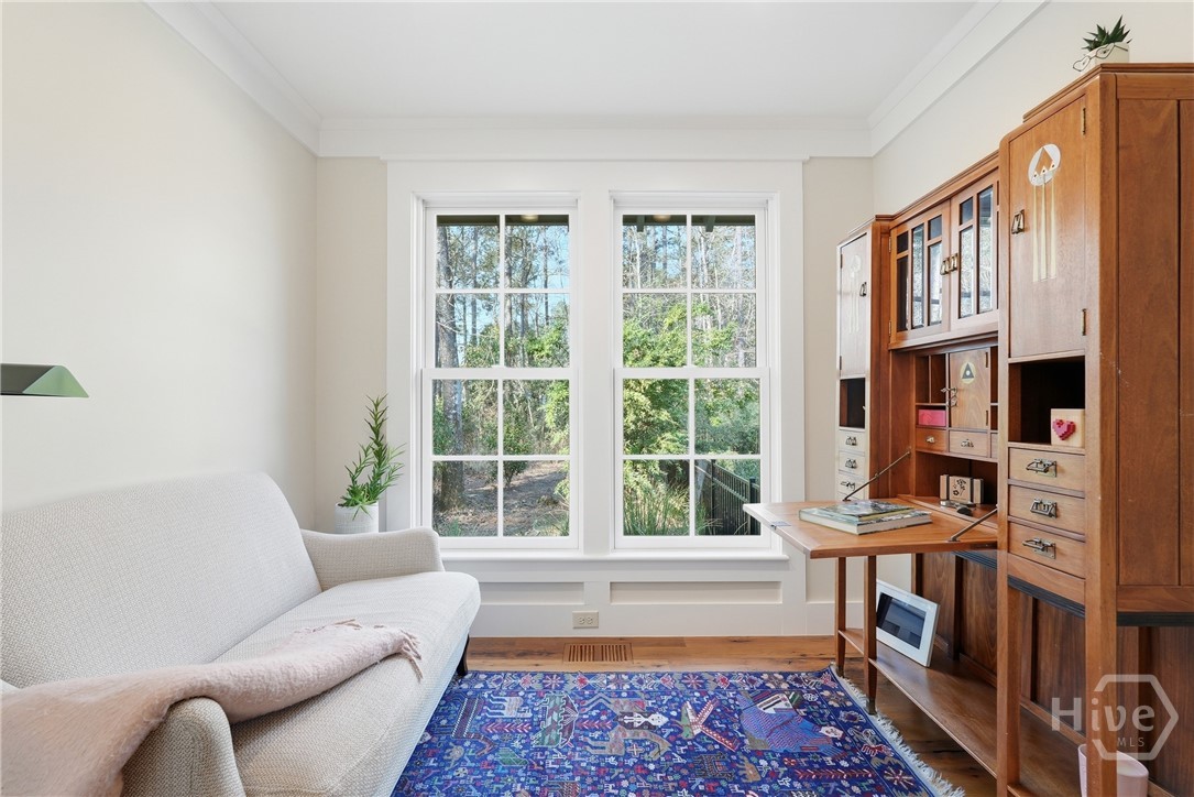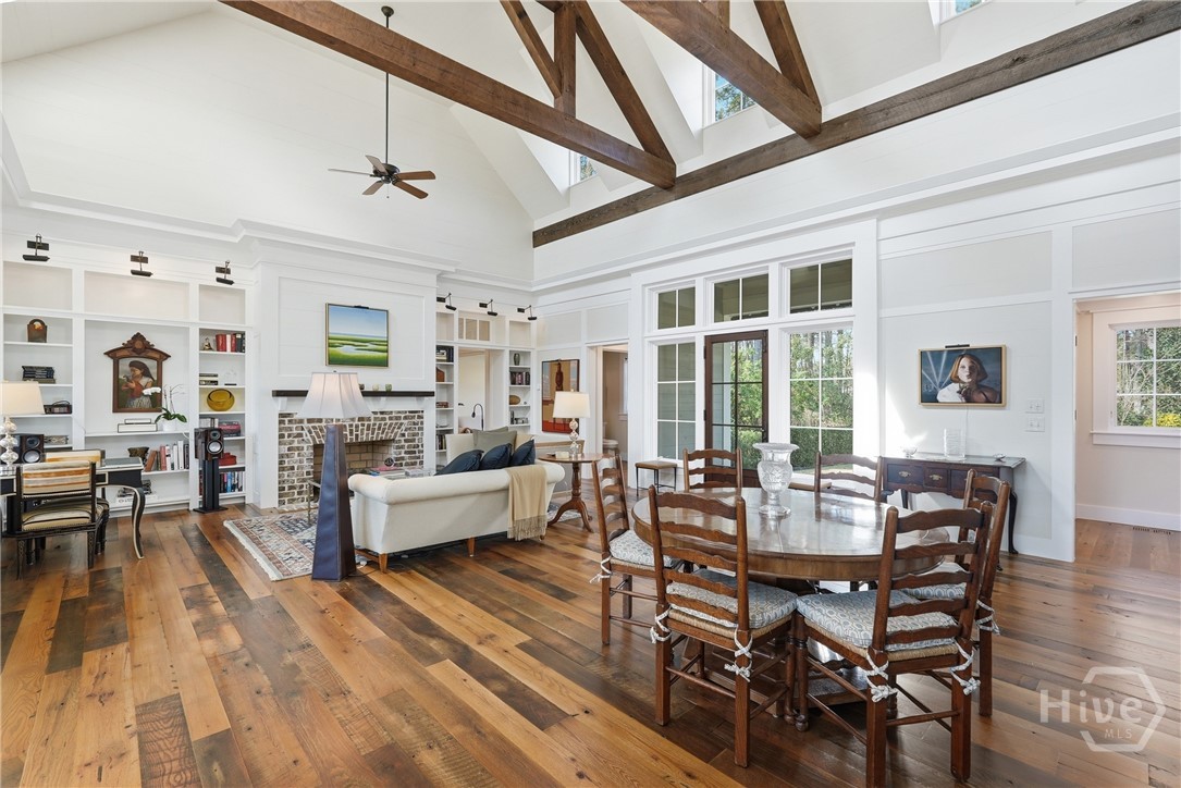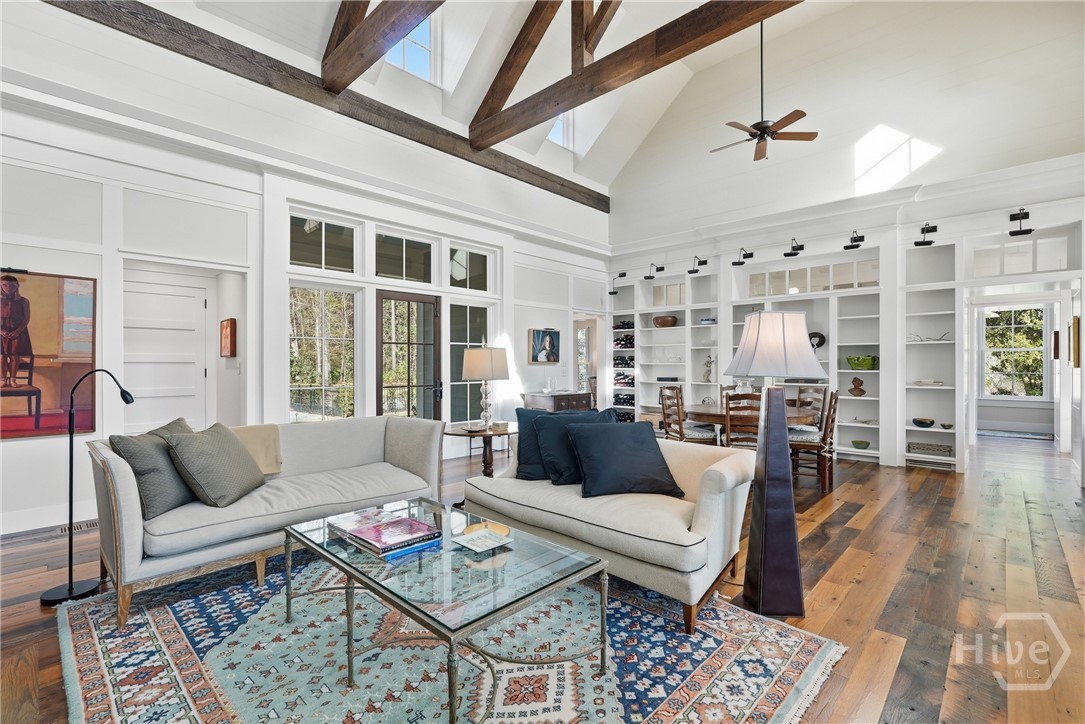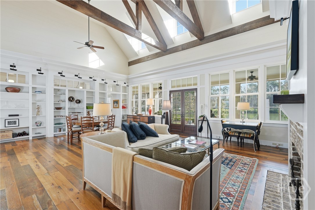 Situated on a premium 2+ acre lot on Lake Sterling within Ford Field & River Club, 165 Belted Kingfisher Ln is a rare 1-level lakefront retreat. Designed by renowned architect Jim Strickland of Historical Concepts, the home reflects timeless Lowcountry architecture. Featuring an expansive great room with reclaimed heart pine floors, antique beams with a 20’ ceiling, and a brick fireplace. The kitchen showcases professional grade appliances, mahogany counters, with French doors opening to a 50 ‘ screened porch with unfettered lake views. A breezeway connects the main home to a beautiful guest suite as well as the garage. A private dock invites kayaking, fishing, and birdwatching. Over the past year, the current owners have thoughtfully restored the entire property. bringing this distinctive lakefront home back to its original glory while enhancing everyday livability. In addition, architectural plans have been developed and approved for a 2 bdr, 2 bath, 2-car garage guest home.