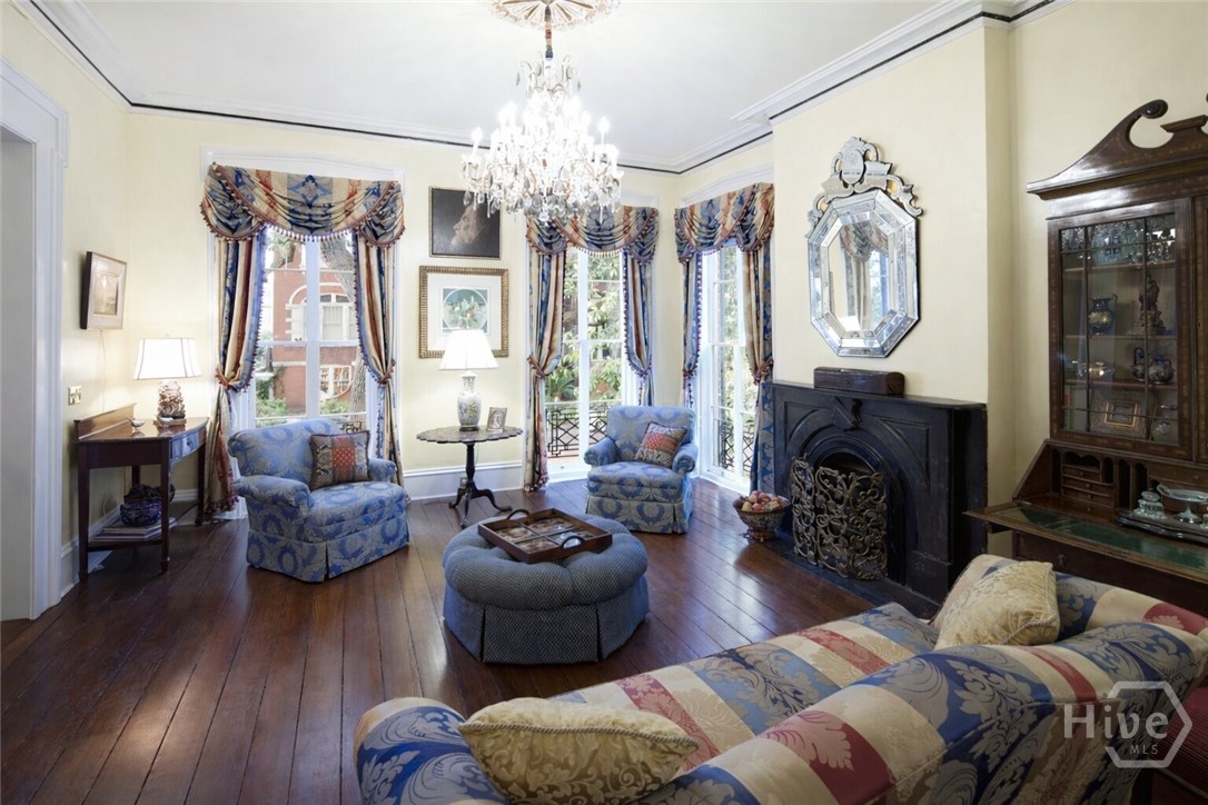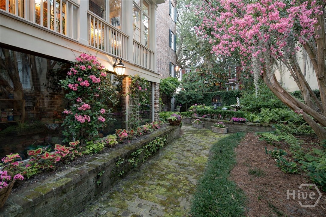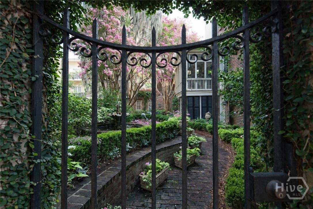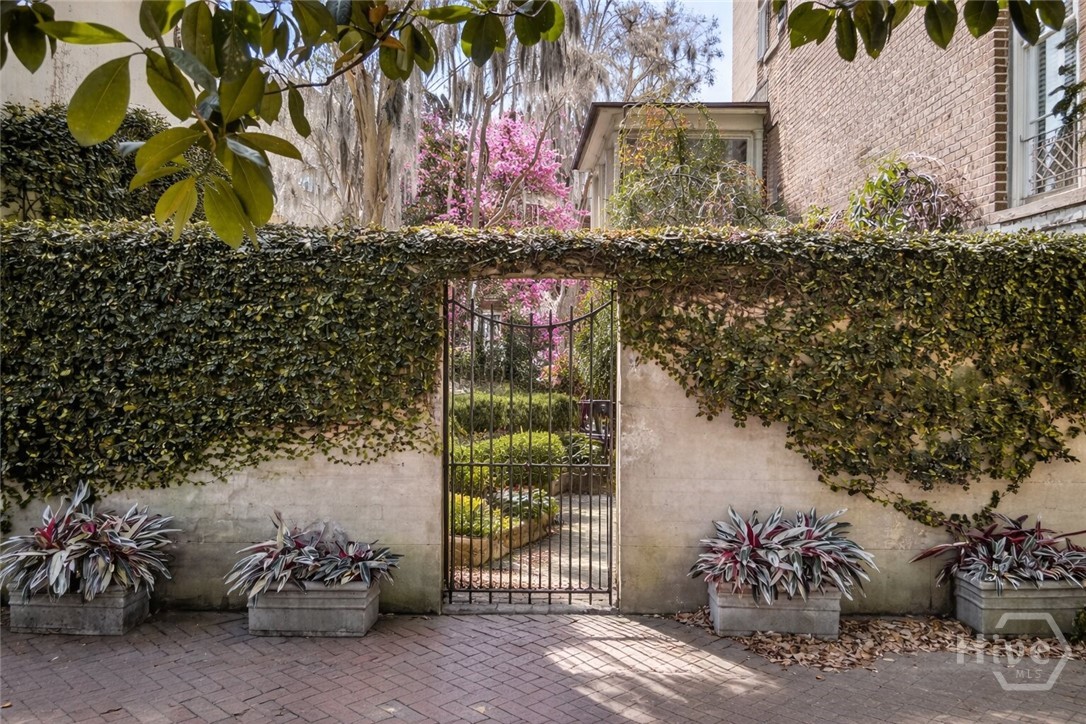 Experience life on Jones Street, considered one of the most beautiful in America!! You’ll never tire of the sound of horses hooves passing, strolling to Forsyth Park or visiting one of the city’s finest restaurants or local boutiques. This free standing, Savannah Grey brick home embodies timeless southern elegance and an “award winning” lush garden. Its picturesque fountain and renowned 4 story Crape Myrtles, circa 1854, are framed by Savannah’s signature ironwork. Only two blocks from Mickve Israel, the third oldest Jewish congregation in the country! It’s a rarity to own such a spacious and private double lot in the heart of the Landmark District. Whether entertaining under the stars or enjoying a quiet morning in the sunroom or piazza, this is the essence of lowcountry living. The main house features an elevator to all levels, glass enclosed porch overlooking the courtyard and flexible floor plan. As you enter, its wide double parlor welcomes you with a rich sense of history and leads to an open kitchen/ family room. The primary suite has a sitting room/ library, large bedroom with fireplace, ensuite bath with double vanities, walk-in shower & two large walk-in closets. Two additional bedrooms and a bath are located on the top floor. Cozy garden level with kitchenette, full bath and recreation room with versatility as office or home gym. The interior showcases classic 1854 architecture with beautifully preserved details such as soaring ceilings, intricate moldings, wide plank heart pine floors, pocket doors, window transoms and eight gas fireplaces. Thoughtful updates blend seamlessly with original craftsmanship for a perfect balance of history & comfort. Charming carriage house with kitchen, bed & bath is perched amid the trees with walkway to outdoor veranda. Lastly, 11 W Jones offers an unheard of amenity in the Landmark district… a FIVE CAR HEATED & COOLED GARAGE. Plus many extras such as a new roof and generator.