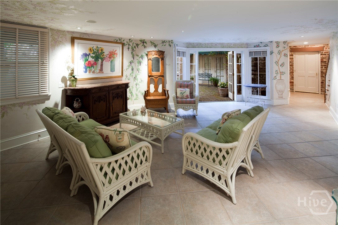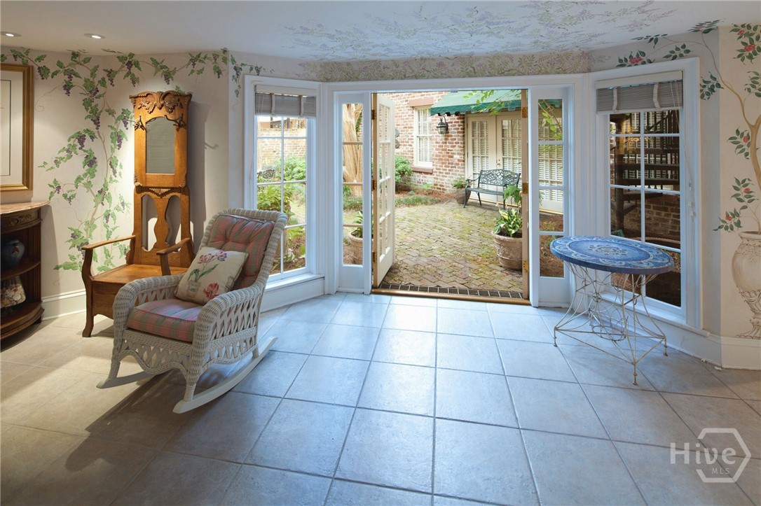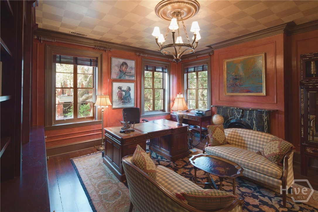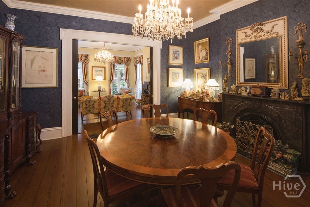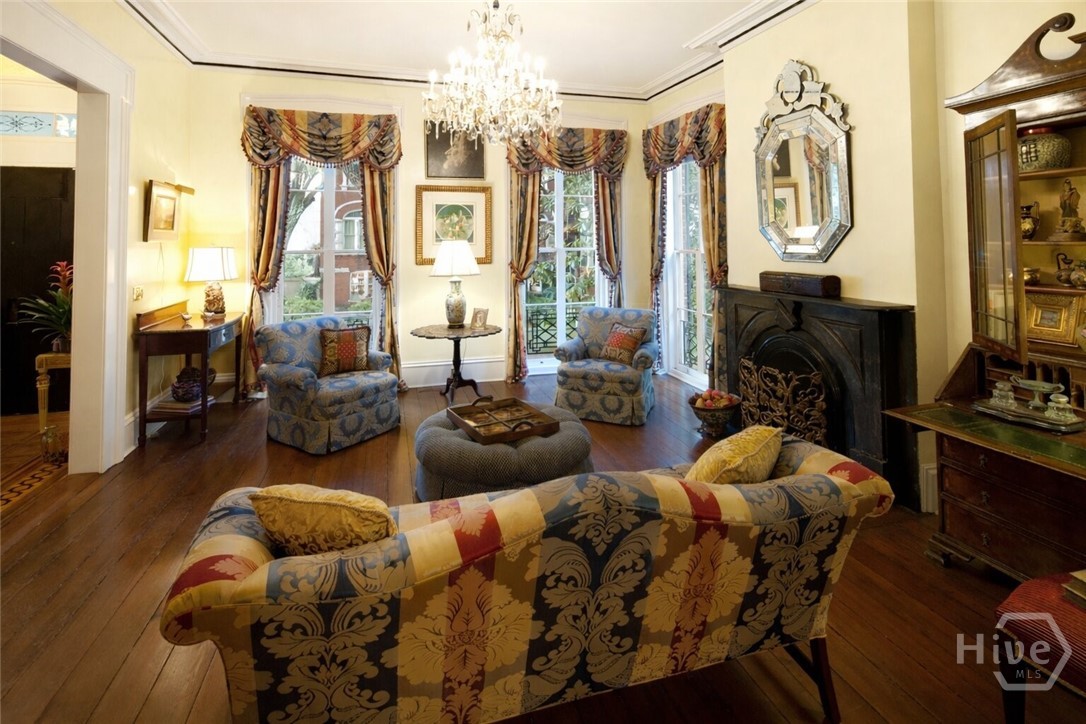 Experience life on Jones Street, considered one of the most beautiful in America!! You’ll never tire of the sound of horses hooves passing, strolling to Forsyth Park or visiting one of the city’s finest restaurants or local boutiques. This free standing, Savannah Grey brick home embodies timeless southern elegance and an “award winning” lush garden. Its picturesque fountain and renowned 4 story Crape Myrtles, circa 1854, are framed by Savannah’s signature ironwork. Only two blocks from Mickve Israel, the third oldest Jewish congregation in the country! It’s a rarity to own such a spacious and private double lot in the heart of the Landmark District. Whether entertaining under the stars or enjoying a quiet morning in the sunroom or piazza, this is the essence of lowcountry living. The main house features an elevator to all levels, glass enclosed porch overlooking the courtyard and flexible floor plan. As you enter, its wide double parlor welcomes you with a rich sense of history and leads to an open kitchen/ family room. The primary suite has a sitting room/ library, large bedroom with fireplace, ensuite bath with double vanities, walk-in shower & two large walk-in closets. Two additional bedrooms and a bath are located on the top floor. Cozy garden level with kitchenette, full bath and recreation room with versatility as office or home gym. The interior showcases classic 1854 architecture with beautifully preserved details such as soaring ceilings, intricate moldings, wide plank heart pine floors, pocket doors, window transoms and eight gas fireplaces. Thoughtful updates blend seamlessly with original craftsmanship for a perfect balance of history & comfort. Charming carriage house with kitchen, bed & bath is perched amid the trees with walkway to outdoor veranda. Lastly, 11 W Jones offers an unheard of amenity in the Landmark district… a FIVE CAR HEATED & COOLED GARAGE. Plus many extras such as a new roof and generator.