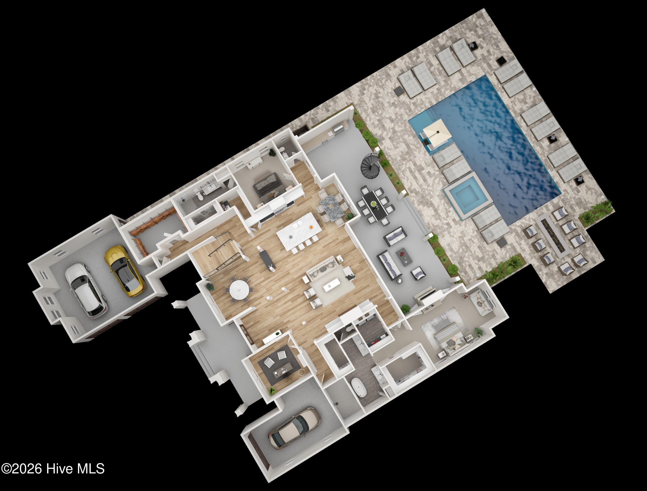 At the heart of the home lies a state-of-the-art kitchen adorned with quartz countertops, premium appliances, a generous walk-in pantry, and seamless flow into the expansive living and dining areas–ideal for entertaining in style. Additional highlights include a private office, a fortified hurricane/safe room, and convenient laundry rooms on both levels.
