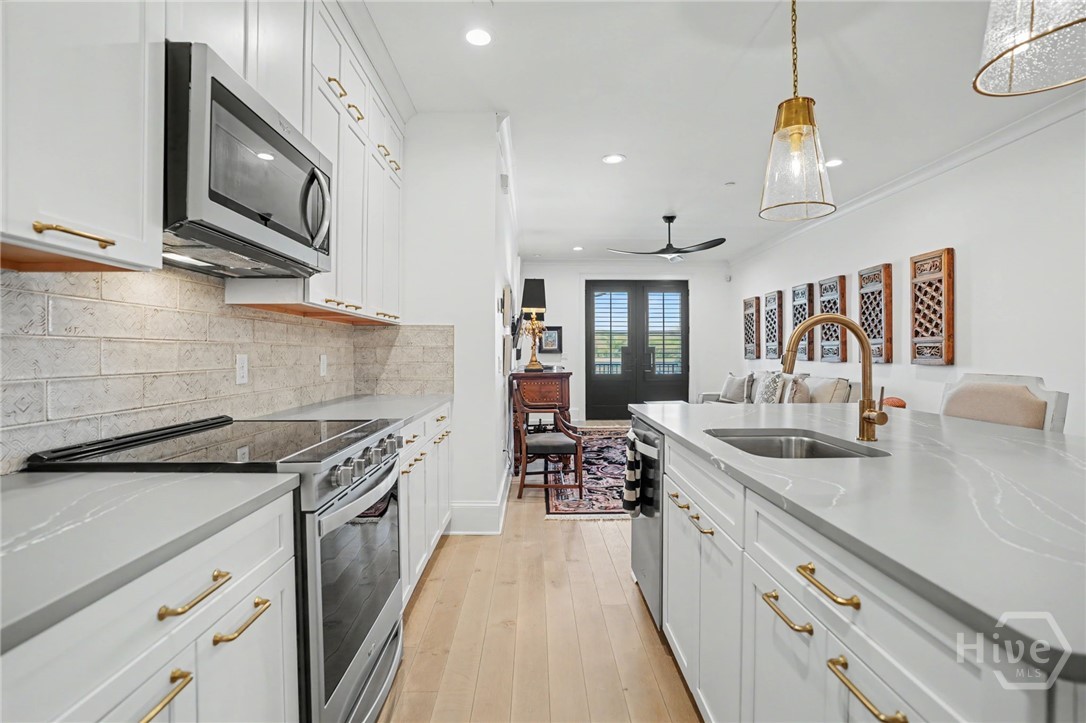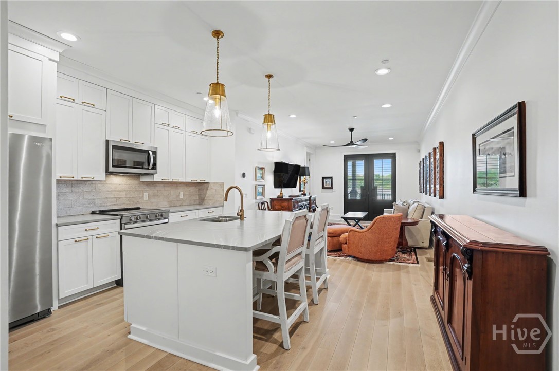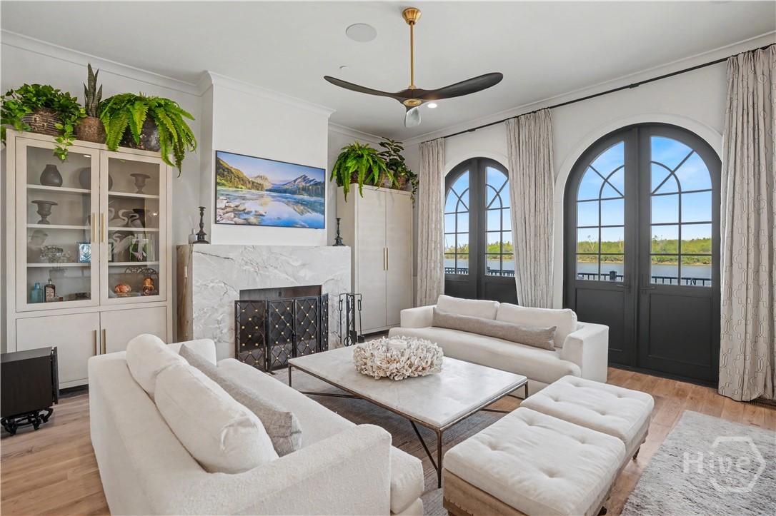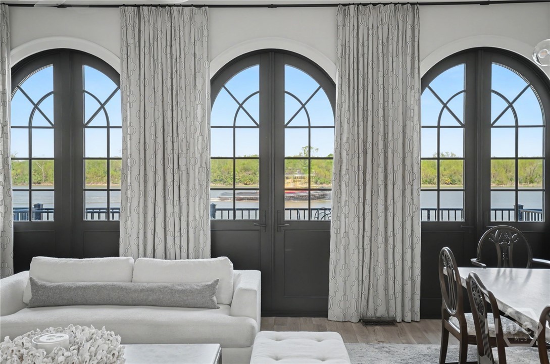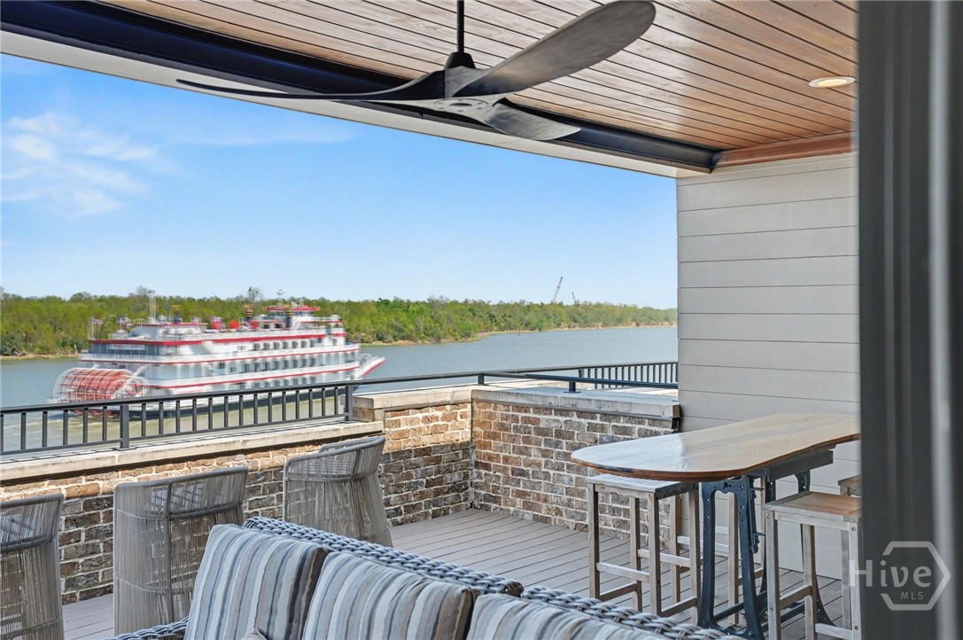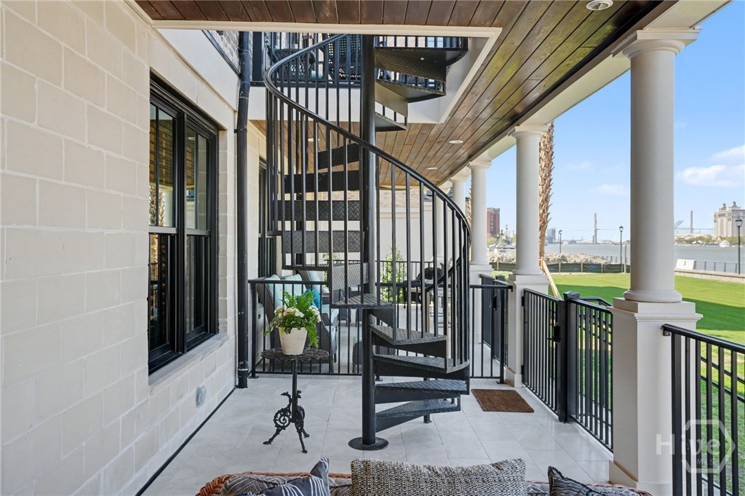 Incredible opportunity to own a completely customized, move-in-ready, 4-story brick waterfront townhome overlooking the Savannah River in the highly desirable downtown Eastern Wharf neighborhood. Enjoy spectacular views of ships cruising along the river & direct pedestrian access to Savannah’s riverwalk. This waterfront haven includes numerous upgrades, curated designer details, private elevator access to all floors & tons of storage! Highlights include an exquisite 2-3 BR/3 BA main house, 1 BR/1 BA garden-level apt., private courtyard & carriage house guest suite w/ kitchen above the 4-car garage. The current owners ensured that the construction process was professionally managed, creating a sophisticated, stylish riverfront retreat defined by luxurious amenities, breathtaking interiors & exceptional craftsmanship. Professionally designed indoor & outdoor spaces offer Emtek hardware, Visual Comfort & Bevolo lighting, Phillip Jeffries wall coverings & much more. Walk to Bull Street, Plant Riverside & the best of downtown Savannah!