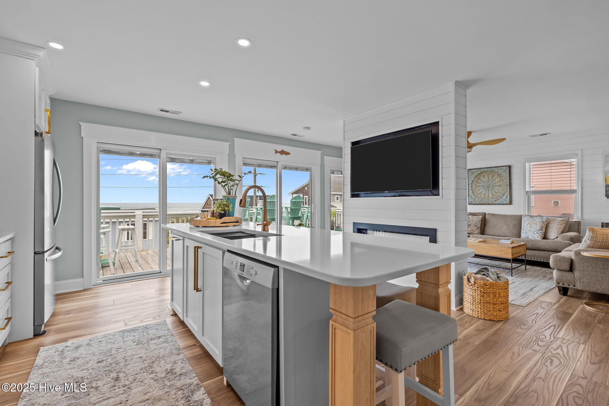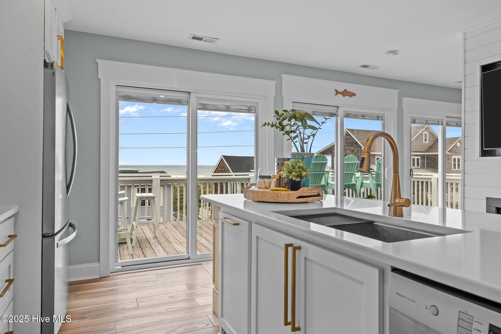 This beautifully remodeled and updated second-row oceanfront home offers a stunning getaway, just steps from public beach access. With a spacious reverse floor plan, this home boasts breathtaking views of the ocean from both inside and two large oceanside decks–perfect for watching both sunrises and sunsets.