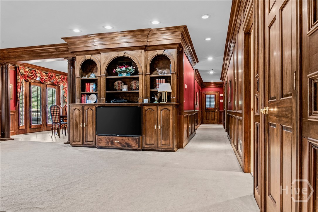 At its heart, a stately ~10,000 square-foot residence is perfectly positioned to capture sweeping views across an 8-acre private lake. Nearly every rear-facing room opens to water vistas, with seamless access to expansive verandas, terraces, porches, and patios that invite both grand-scale entertaining and intimate everyday living.